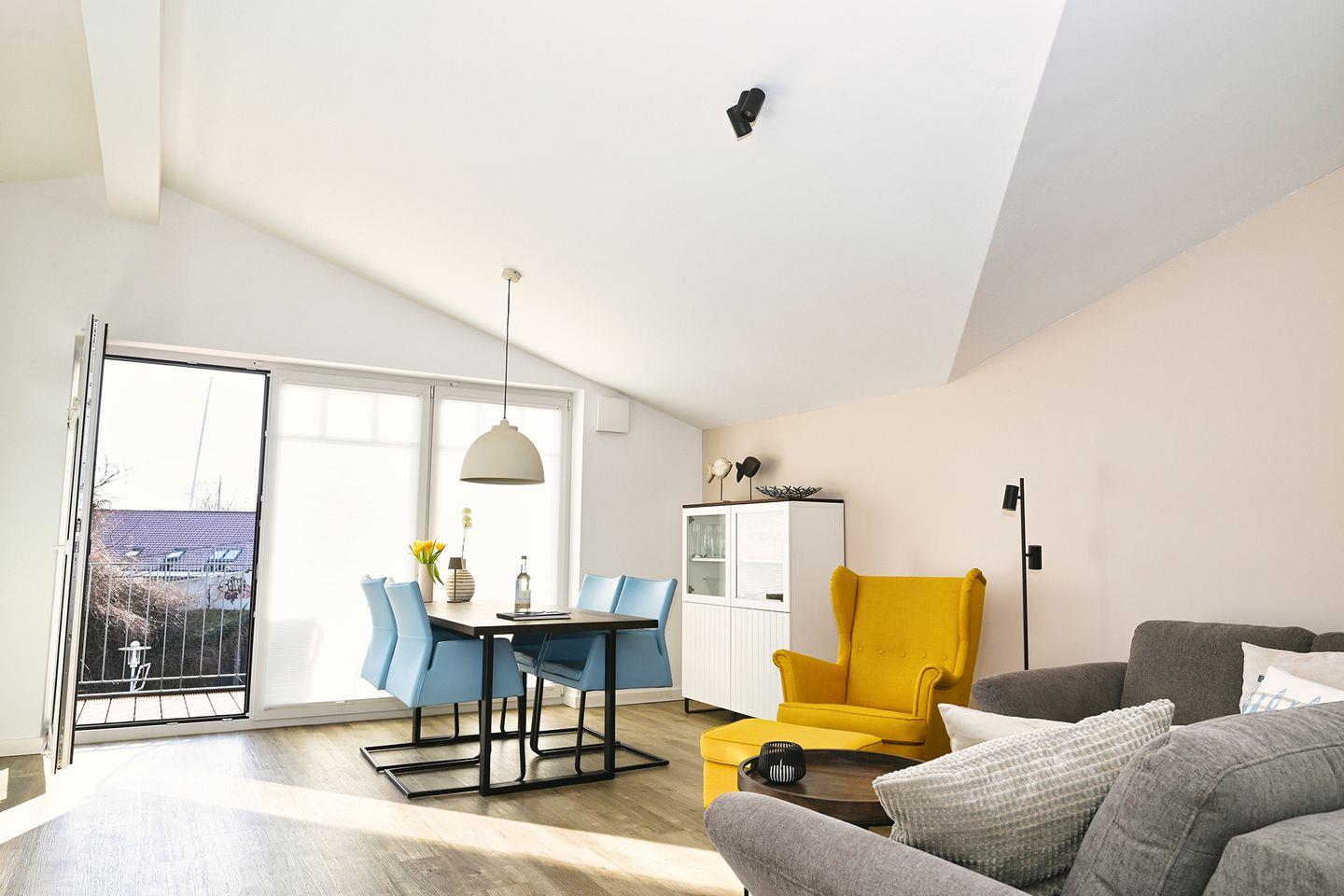 Die Lotsenkoje 13 im Porthouse Büsum ist eine wunderschöne Ferienwohnung mit 91 m² im 2. Stock, ideal für bis zu 4 Personen.