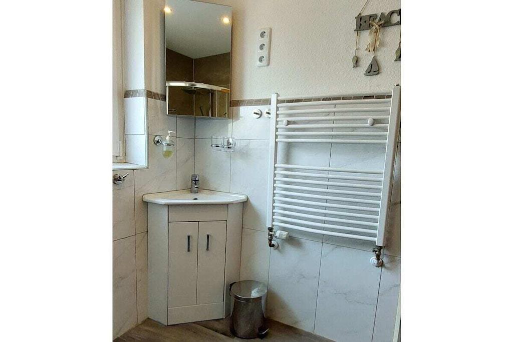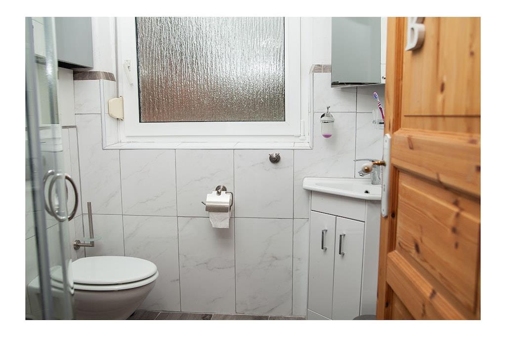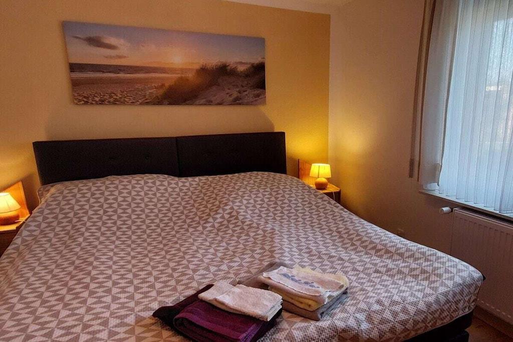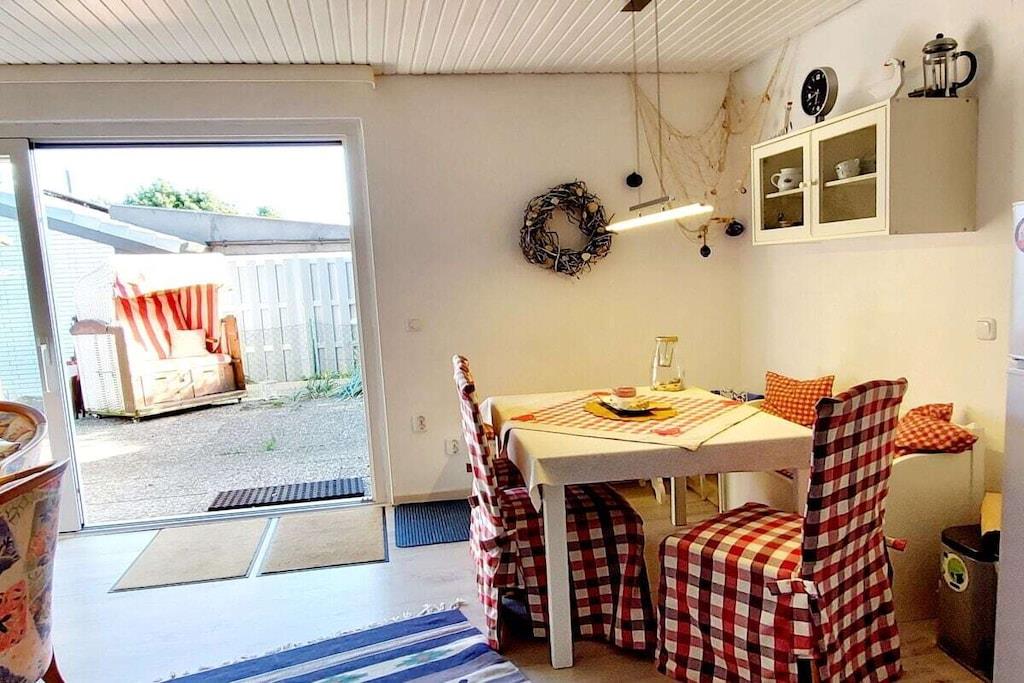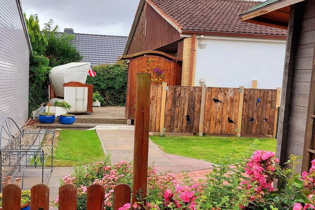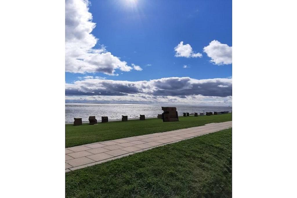 Lys, rolig ferielejlighed på 58 kvm (halvt dobbelthus) i det rolige feriested Büsumer Deichhausen. Lejligheden har 2 soveværelser med i alt 4 senge, herunder 1 soveværelse med 2 boxmadrassenge og store skabe, en komfortabel opholdsstue med 2 sofaer, lænestole og et bord, samt et åbent køkken med spisebord (til mindst 4 personer). Den store panoramadør i stuen fører ud til terrassen med strandstol, bord og stole. Køkkenudstyr: komfur, ovn, emhætte, opvaskemaskine, køleskab med fryser, vaskemaskine, fuldautomatisk kaffemaskine, elkedel, brødrister, vask, mikrobølgeovn. Opvaskemiddel osv., viskestykker, tallerkener, gryder osv. Entré: garderobe med stort spejl, pengeskab Badeværelse: bruser, toilet, håndvask med underskab og spejlskab Vi har også 4 enkle soveværelser til vores gæster. Cykler ved huset, Wi-Fi, 3 tv'er og stereoanlæg, pengeskab, indhegnet have med tehus og kulgrill samt strandstol ved huset, og også på diget i sæsonen. God parkering