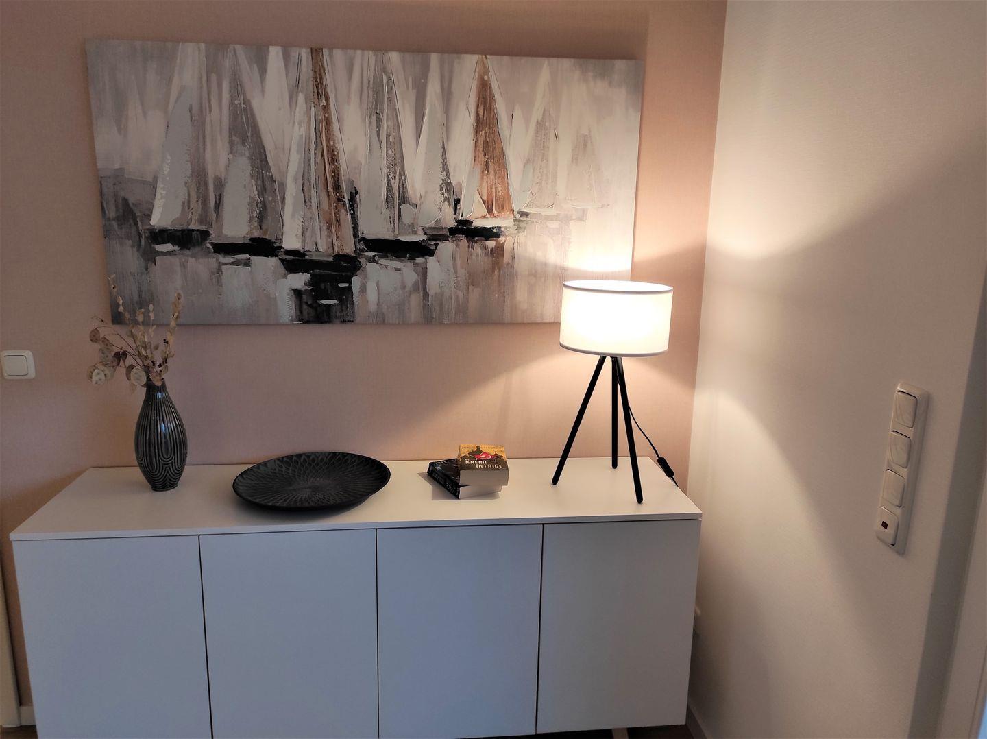 An dem Esstisch in dem Raum können Sie die Köstlichkeiten der Nordseeküste genießen.