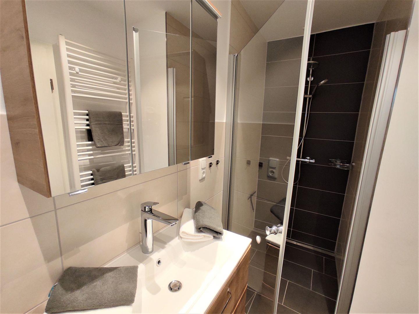 Ein schickes, modernes Tageslichtbad mit bodengleicher Dusche, WC, Handtuchwärmer und Fußbodenheizung komplettiert dieses traumhafte Ferienhaus. Sie werden Ihren Aufenthalt in diesem Ferienhaus genießen.