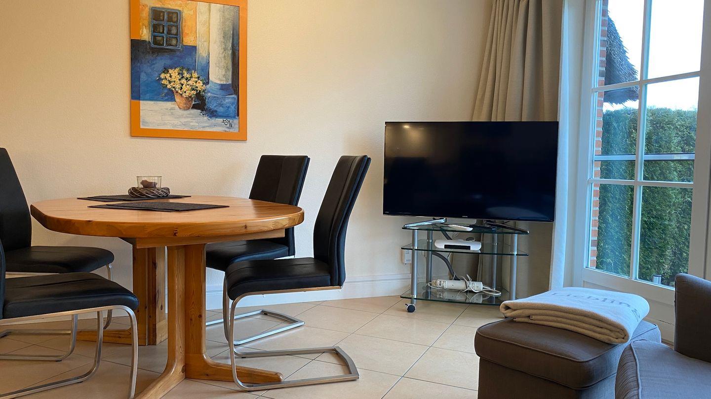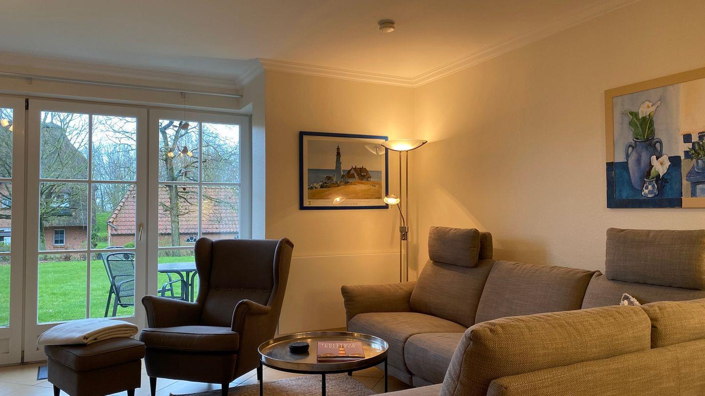 Unsere modern ausgestattete Wohnung bietet für Ihren Urlaub alles was Sie benötigen. Genießen Sie bei schönem Wetter Ihre Mahlzeiten auf unserer Terrasse. Für trübere Tage lädt das Sofa im Wohnzimmer zum kuscheln ein. Entspannten Schlaf und schöne Träume haben Sie im Doppelbett im Schlafzimmer. Lassen Sie sich einfach von unseren Bildern inspirieren. Einen Parkplatz für Ihren Wagen befindet sich direkt am Haus. Ebenso ein Abstellraum für Ihre Fahrräder. Büsumer Deichhausen ist kurtaxfrei, das heißt, Sie erhalten Ihre Gästekarte bei Ihrer Anreise kostenfrei von uns. Diese berechtigt zum Besuch unseres Strandes gleichfalls des Strandbereichs in Büsum und weiteren Orten an Nord- und Ostseeküste. Alle weiteren Informationen finden Sie in unserer Gästemappe, welche in der Wohnung ausliegt. Bettwäsche und Handtücher können gegen Entgelt dazu gebucht werden. Babybett und Hochstuhl stellen wir Ihnen gern kostenfrei zur Verfügung.