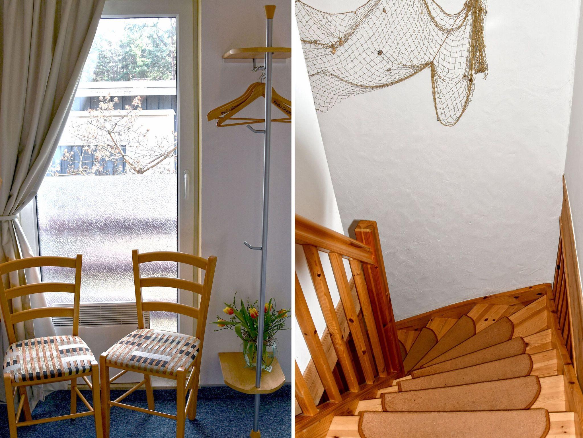 Ihr Zuhause auf Zeit erstreckt sich über zwei Etagen und 68 Quadratmeter Wohnfläche. Bis zu 5 Personen und ein gut erzogener Vierbeiner können hier rundum angenehme Urlaubstage verbringen. Dazu stehen Ihnen im Obergeschoss zwei Schlafzimmer mit bequemen Doppelbetten zur Verfügung; eines dieser Schlafzimmer hat zusätzlich eine Liege für die Aufbettung zur fünften Person. Auch ein ausklappbares Kinderreisebett ist vorhanden.