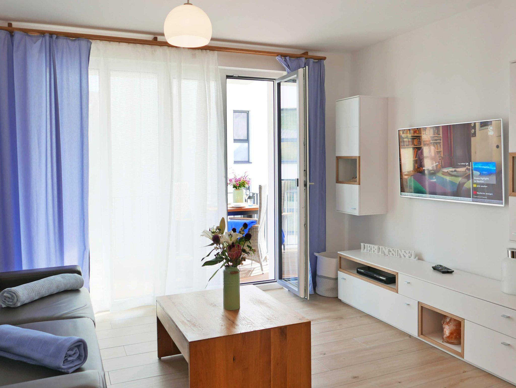 Die Elektrosmog reduzierte 2-Zimmer-Ferienwohnung für 4 Personen befindet sich in dem neu eröffneten Villen-Ensemble (Sommer 2019) direkt am Baaber Strand. Die moderne und großzügige Ferienwohnung liegt im 1. OG und verfügt über einen Balkon, auf dem Sie herrlich ausspannen können.
