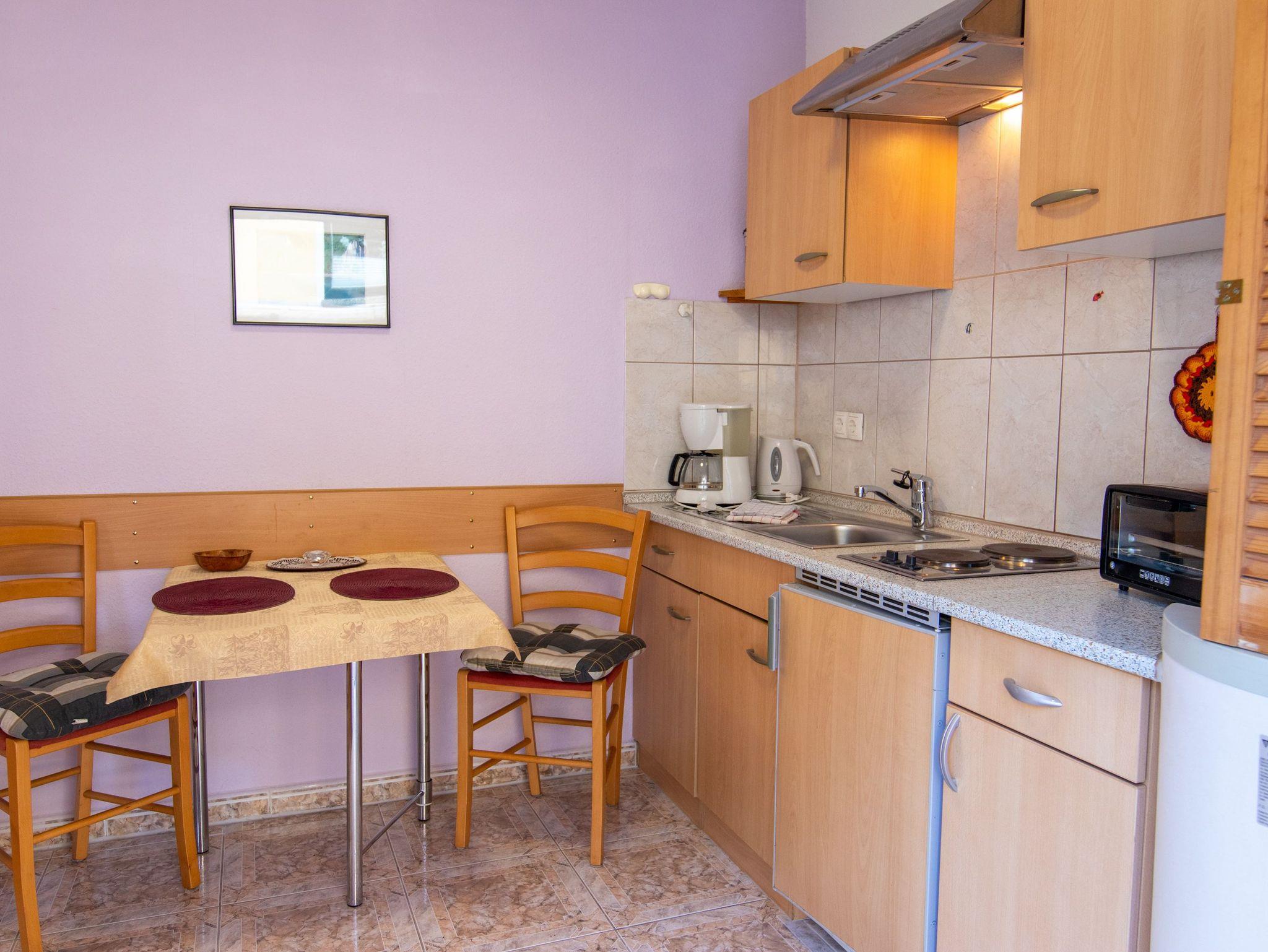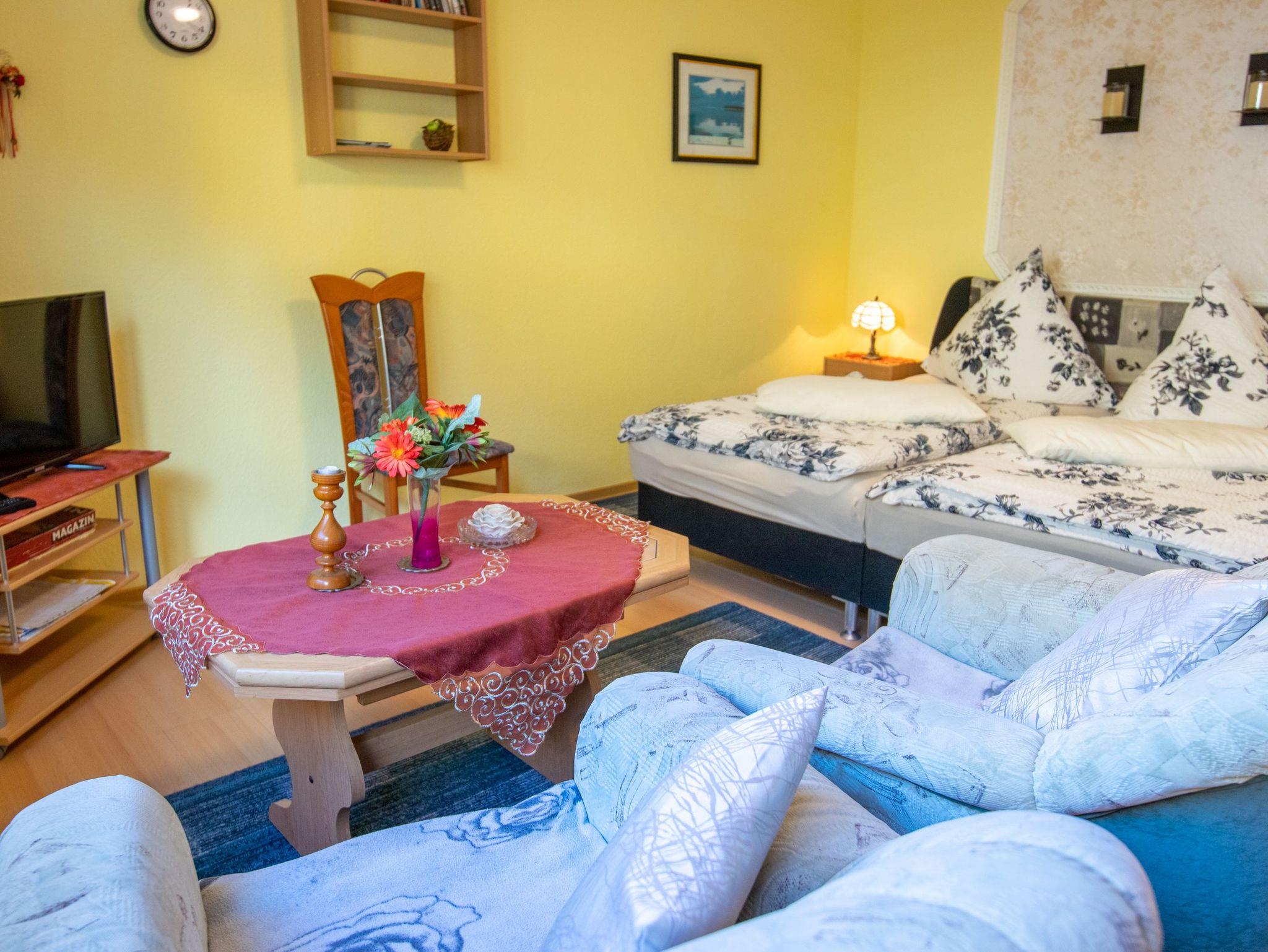 Das Haus Parchow im Ostseebad Baabe bietet seinen Gästen insgesamt 3 Wohnungen auf dem Grundstück der Vermieter. Die Ferienwohnung 2 mit 70 m² befindet sich im Haus der Vermieter und ist für bis zu 4 Personen ausgelegt. Über eine separate Außentreppe erreicht man die Ferienwohnung im Dachgeschoss. Sie verfügt über 2 Schlafzimmer mit Doppelbetten und eine offene Wohn-Küche mit Esstisch, Sofa und TV. Das kleine Tageslicht-Bad ist mit Dusche und WC ausgestattet. Die beiden Ferienwohnungen 3 und 4 im Bungalowstil sind mit jeweils 30 m² für 2 Personen geeignet. Sie verfügen über ein kombiniertes Wohn-Schlafzimmer mit Doppelbett, TV und Sesseln, eine Küche mit Essbereich, sowie ein Bad mit Dusche und WC.
