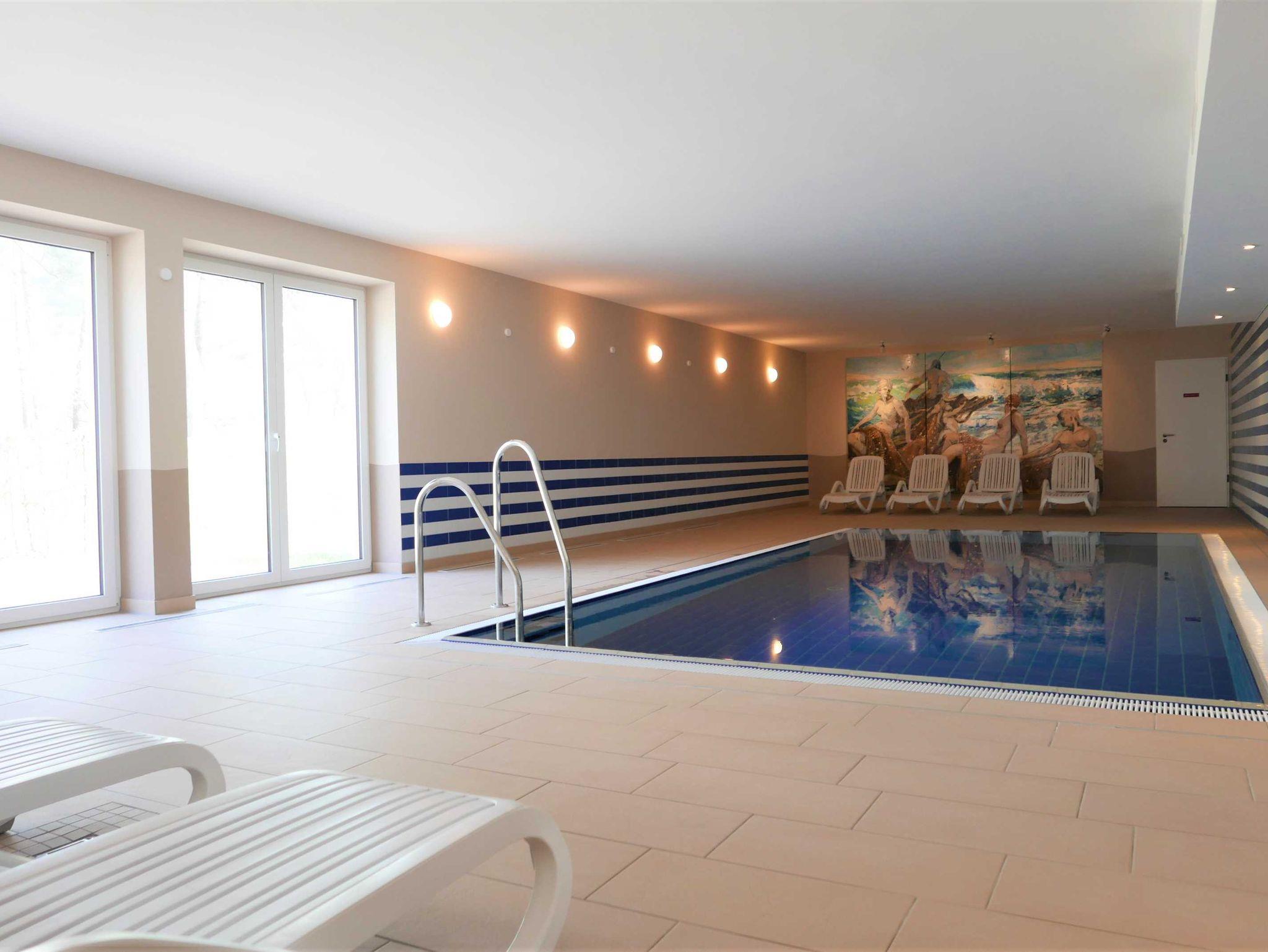 Auch von hier haben Sie einen direkten Zugang zum Strand. Das Haus ist mit einem Lift, einer Tiefgarage und einem großen Wellnessbereich mit Schwimmbad (ca. 8,00 m x 4,00 m - 1,35 m tief), zwei Saunen (eine finnische Sauna/eine Bio-Sauna) und einem Massagebereich ausgestattet. Der Wellnessbereich ist ganzjährig geöffnet.
