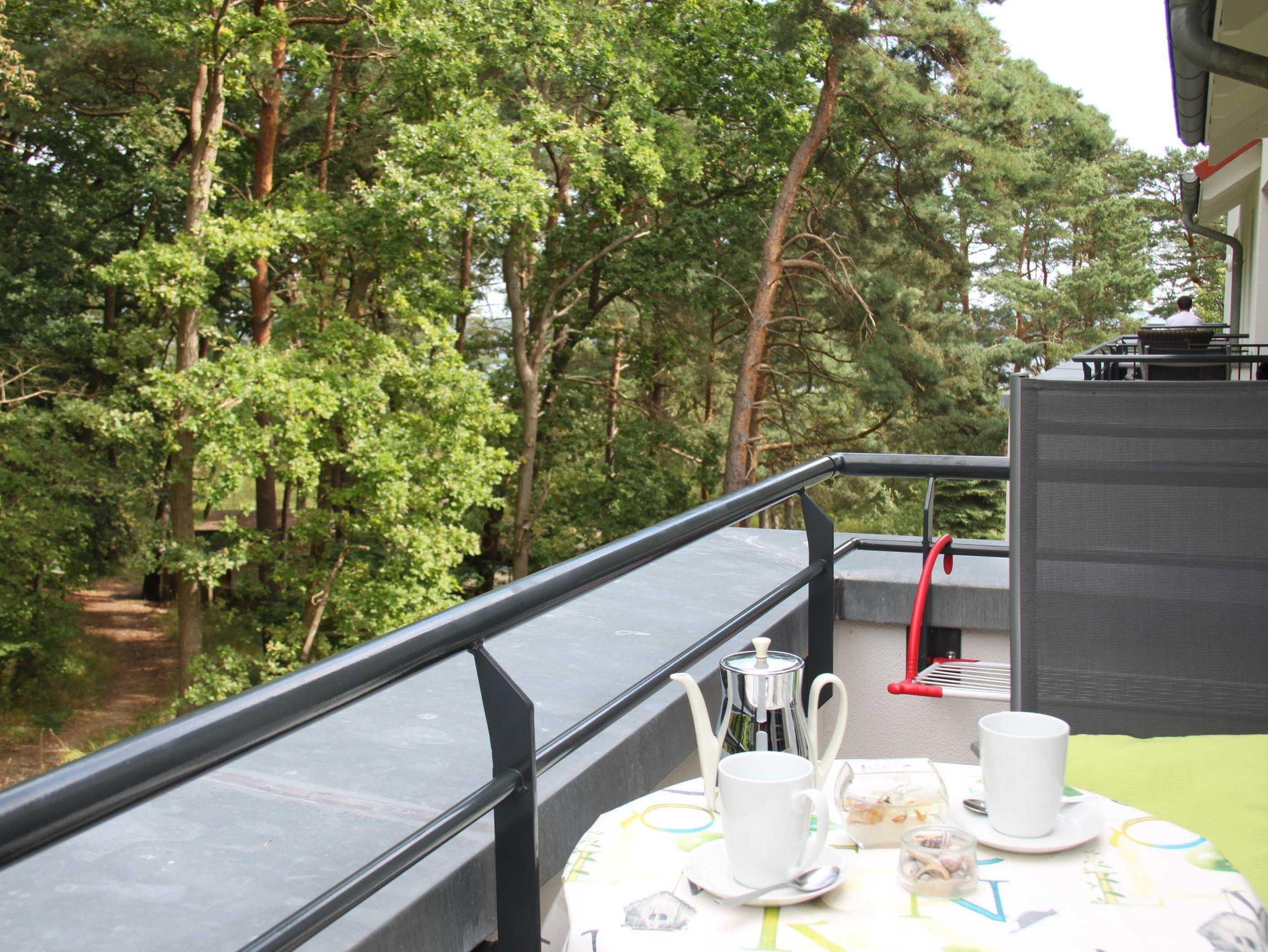 Von Ihrem Balkon genießen Sie einen seitlichen Meerblick und schauen über die Dünen und durch das Kiefernwäldchen bis zum Meer.