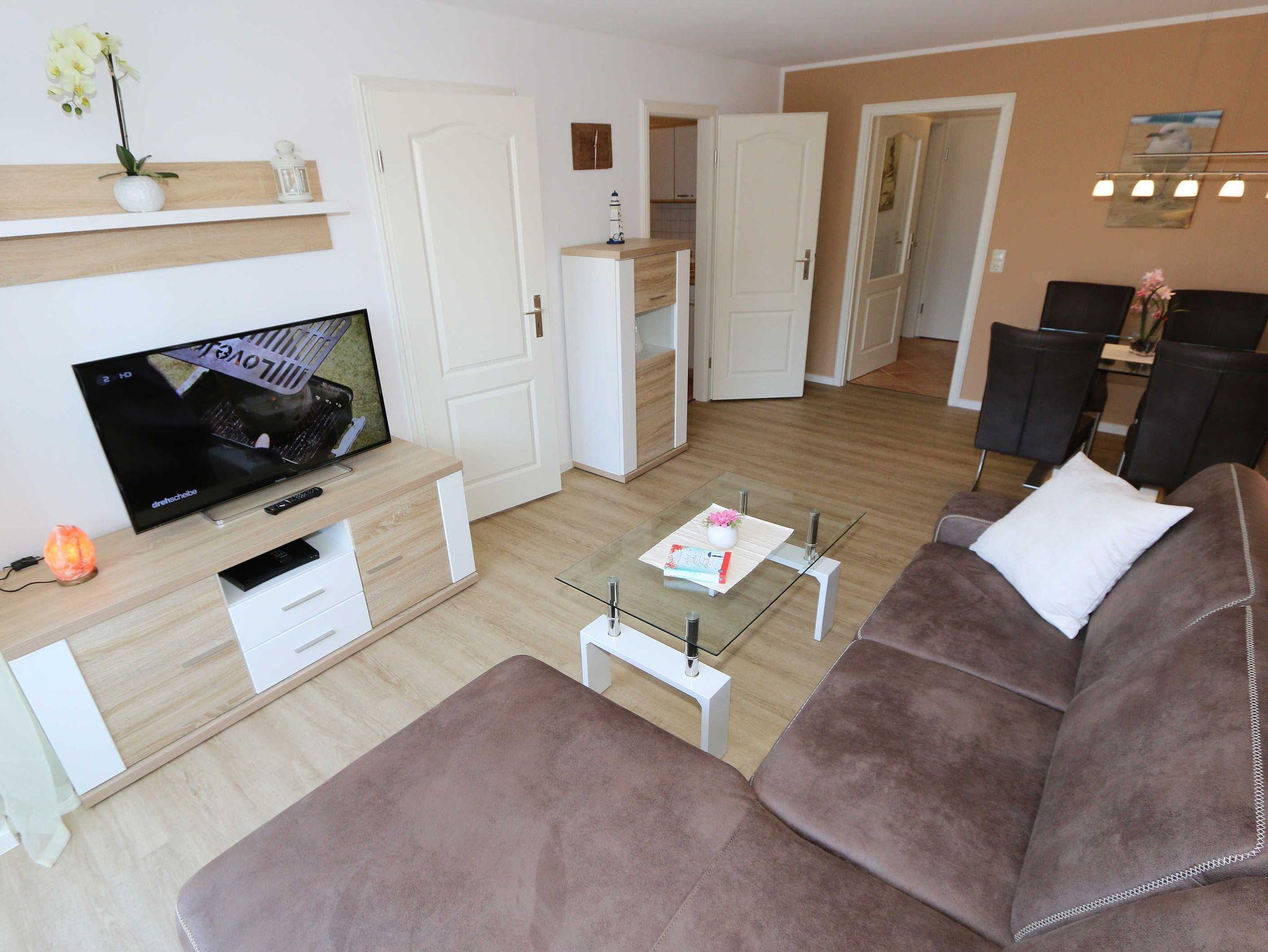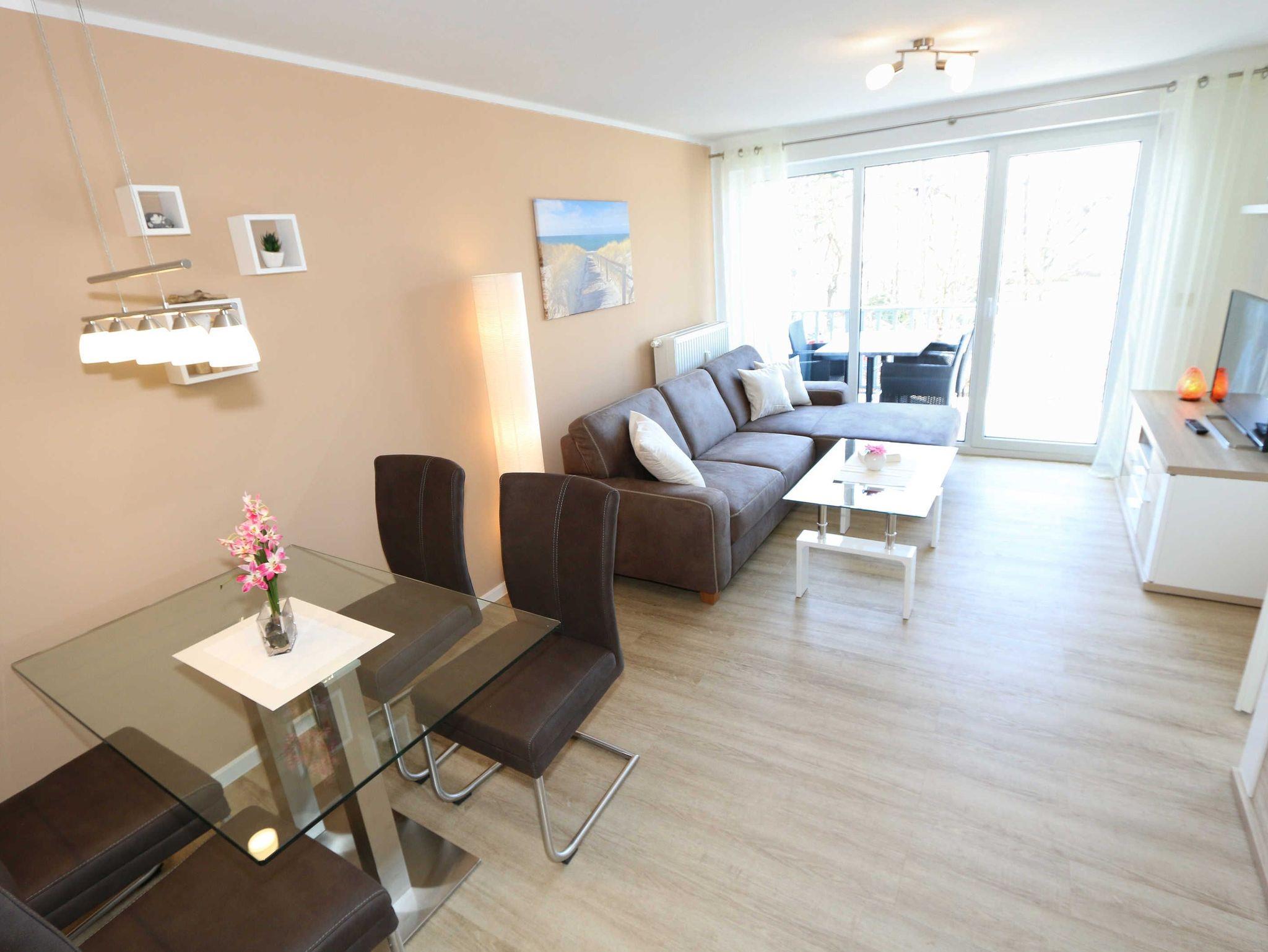 Die helle und modern eingerichtete 2-Raum-Nichtraucher-Ferienwohnung Ostseebrise Nr. 10 befindet sich in der 2. Etage und bietet mit Ihren ca. 47 m² Platz für max. 2 Erwachsene + 1 Kind bis 17 Jahre. Der geräumige Wohn- & Essbereich ist mit einer gemütlichen Couch (Aufbettung für 3. Person, 1,20 m x 2,00 m), Couchtisch, Leselampe, TV-Board mit Smart-TV, Blu-Ray Player und Mini-Stereo-Anlage sowie einem großen Esstisch ausgestattet. Eine kleine Auswahl an Gesellschaftsspielen und DVDs steht Ihnen zur Verfügung. Ein Internetanschluss (WLAN) ist für Sie zusätzlich inklusive. Den bestuhlten Balkon (Süd/Südwest) mit Sonnenschirm erreichen Sie vom Wohnbereich. Die separate Küche umfasst einen Geschirrspüler, Cerankochfeld, Backofen, Kühlschrank mit Gefrierfach, Mikrowelle, Kaffeemaschine, Senseo Padmaschine, Wasserkocher, Toaster und diverse Küchenutensilien. Das helle Schlafzimmer verfügt über ein Doppelbett mit 7-Zonen Tonnentaschenfederkern Matratzen (1,60m x 2,00m), verstellbare Lattenroste, Nachttischablagen, einen großen Kleiderschrank sowie ein LED-Flachbildschirm. Verdunklungsrollos sorgen für einen erholsamen Schlaf. Das geflieste Bad wird durch eine Dusche, Waschtisch, Fön, Kosmetikspiegel, WC und Handtuchheizkörper abgerundet. Im Flurbereich befindet sich eine Garderobe mit Spiegel und ein Schuhschrank. Angrenzend befindet sich ein kleiner Abstellraum. Von Ihrem Tiefgaragenstellplatz (Nr. 10, Einfahrtshöhe: 1,90m) gelangen Sie bequem mit dem Aufzug zu Ihrer Ferienwohnung. Ihre mitgebrachten oder geliehenen Fahrräder können in dem zur Wohnung gehörenden abschließbaren Keller (Nr.10) abgestellt werden. Haustiere sind nicht erlaubt. Die Erstausstattung eines Wäschepaketes (komplette Bettwäsche, 1 Duschhandtuch, 1 kleines Handtuch) können Sie bis 14 Tage vor Anreise gegen einen Aufpreis dazu buchen oder durch eigene ergänzen. Ab 2 gebuchten Paketen erhalten Sie einmalig 1 Geschirrhandtuch und 1 Duschvorleger dazu.