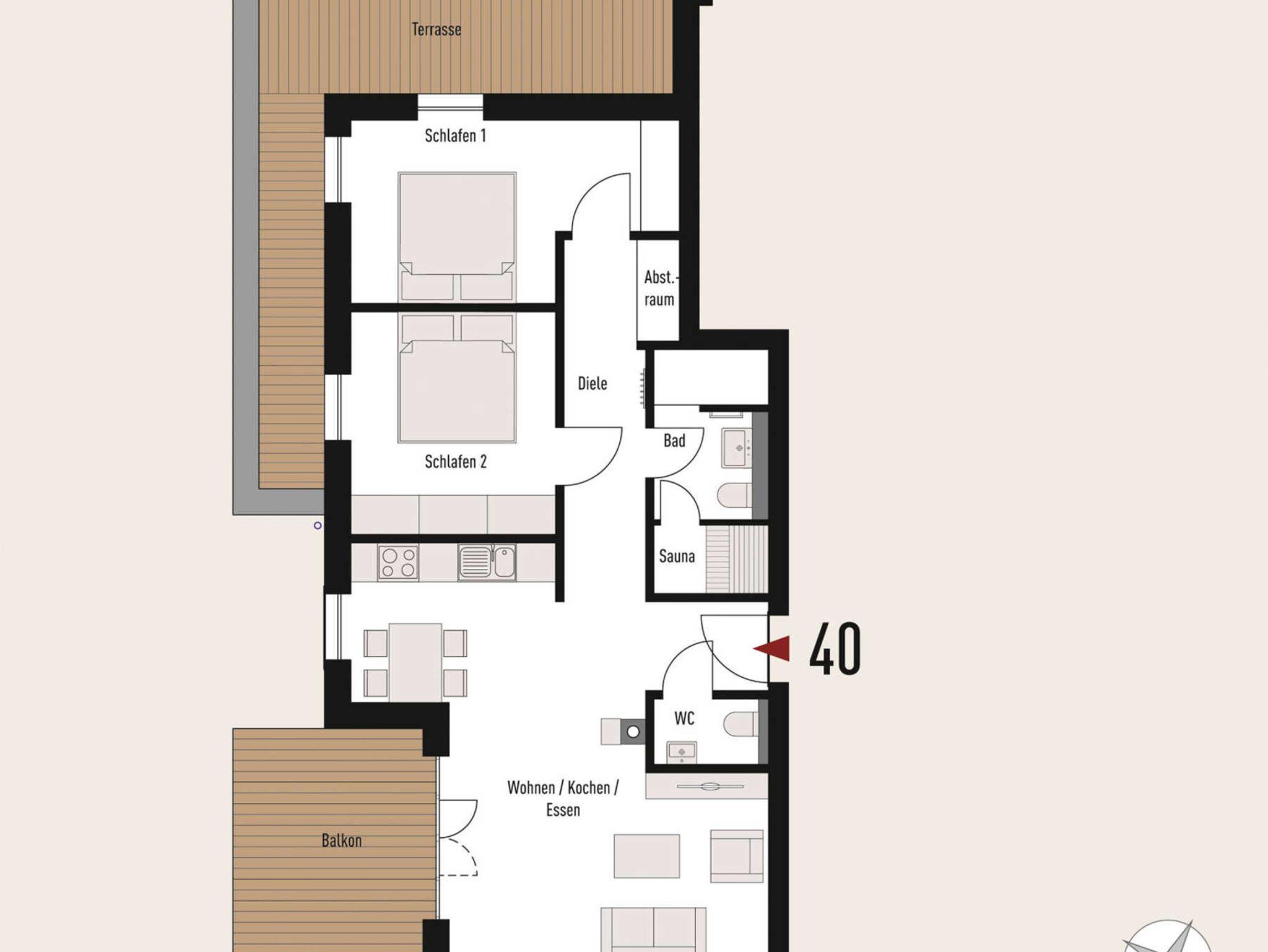 Insgesamt gibt es ca. 40 hochwertige moderne Wohneinheiten, alle mit Balkon oder Terrasse, bodentiefen Fenstern und Fußbodenheizung. Eine kostenpflichtige gemeinschaftliche Sauna mit Ruheraum befindet sich im Keller. Ebenfalls befinden sich dort Waschmaschine und Trockner gegen Gebühr.