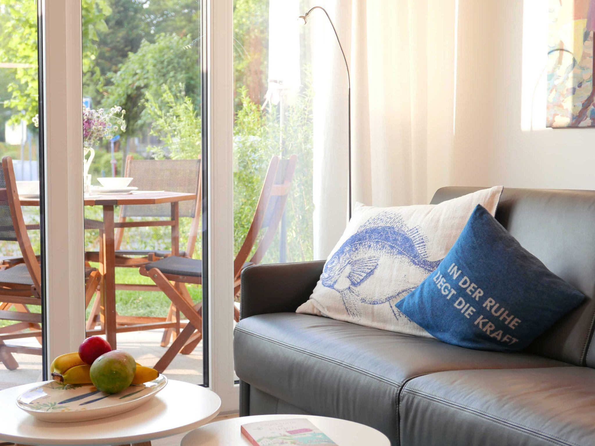 In dieser wunderbar modernen 2-Zimmer-Ferienwohnung mit einer Terrasse und einem kleinen Garten stellt sich direkt das Urlaubsgefühl ein ? spätestens, wenn man das Meeresrauschen in dem wohnungseigenen Strandkorb oder den seitlich eingeschränkten Meerblick genießt.