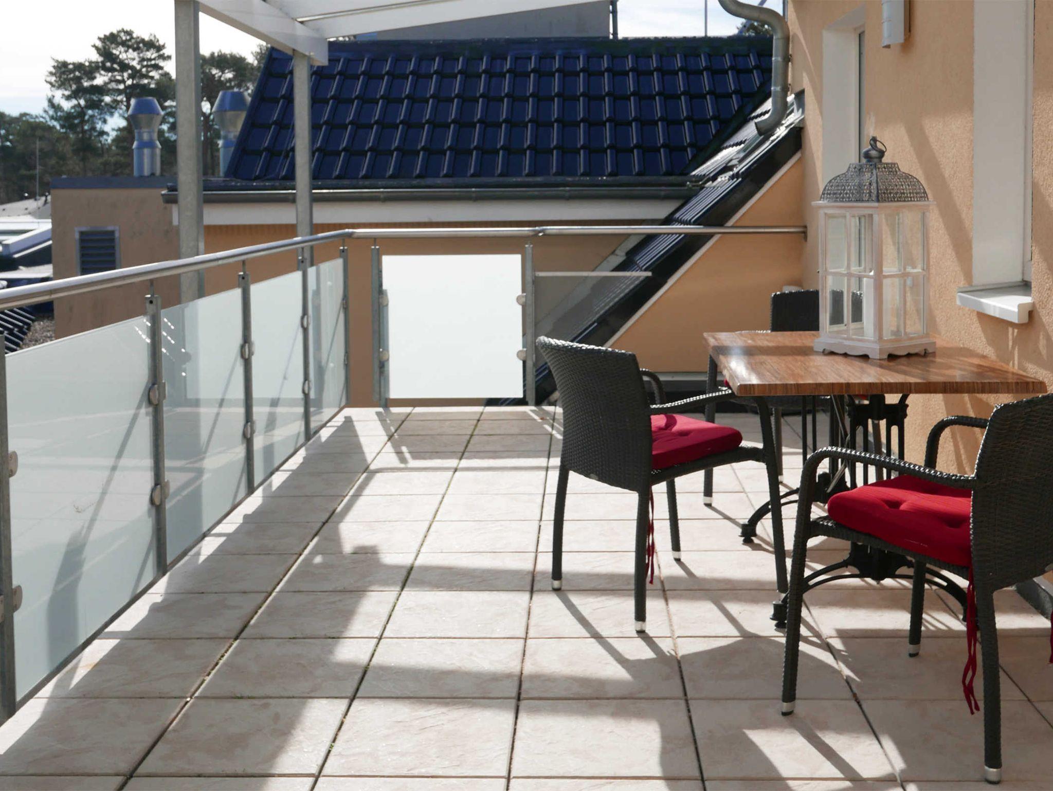 Ein Highlight ist die große überdachte Terrasse, auf der man den Abend ausklingen lassen kann und die Ostsee beobachten. Nachmittags kann man auf der rückwärtigen Terrasse einen Kaffee im Sonnenschein trinken