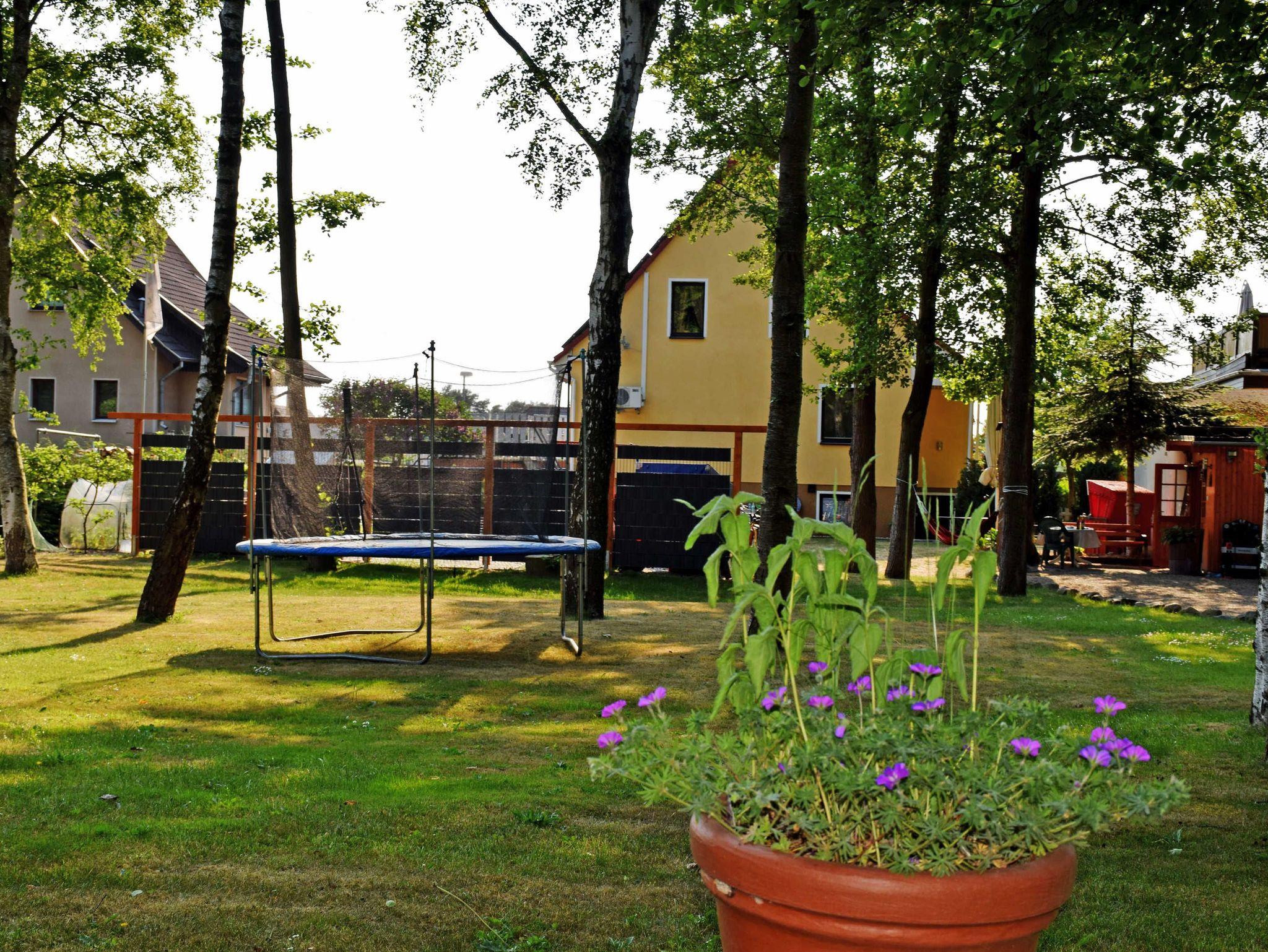 Zur Ferienwohnung gehören auch eine Sitzgelegenheit im Garten, eine Grillmöglichkeit, Spielmöglichkeiten für Kinder und ein großer, parkähnlicher Gartenbereich.