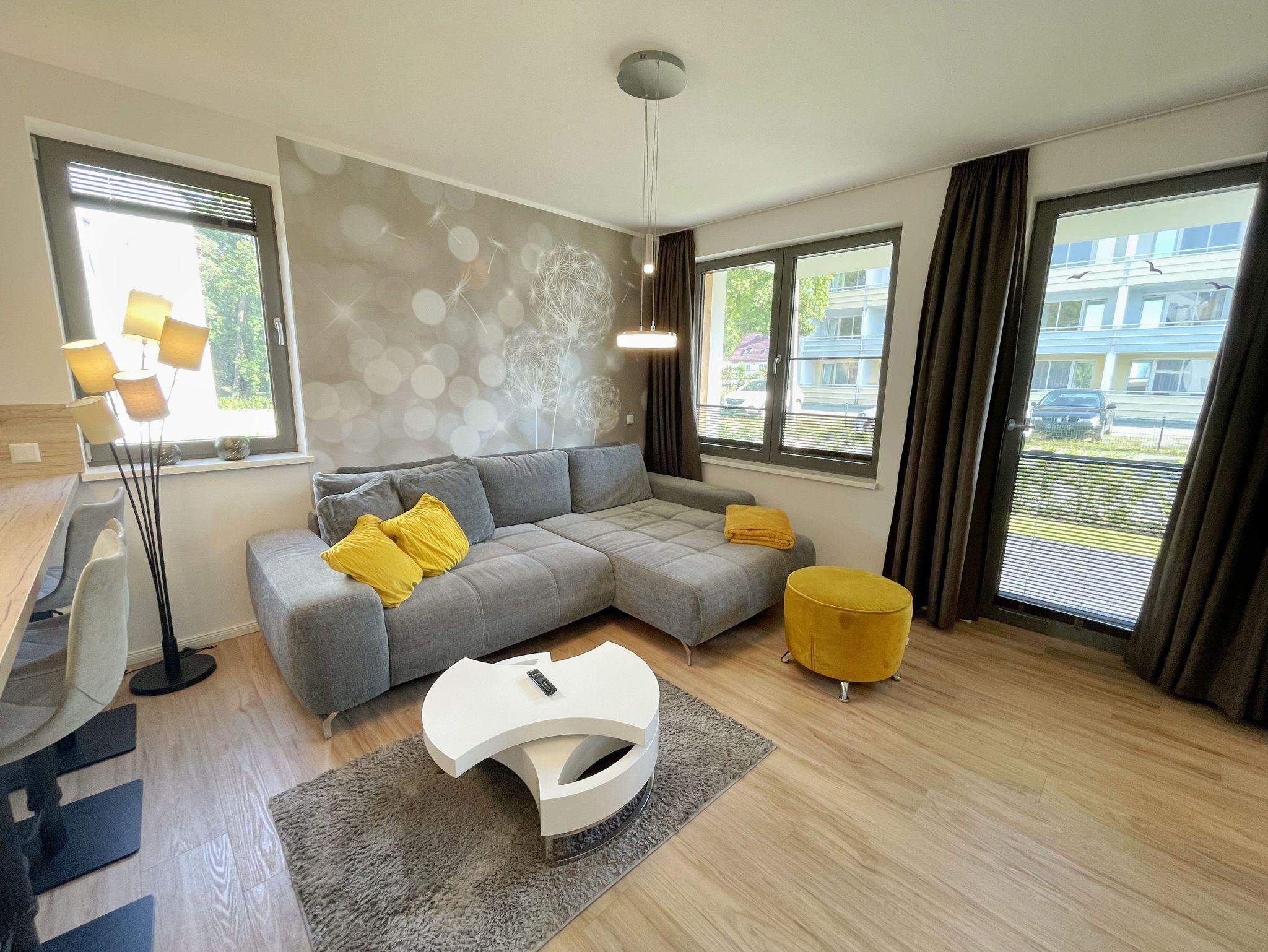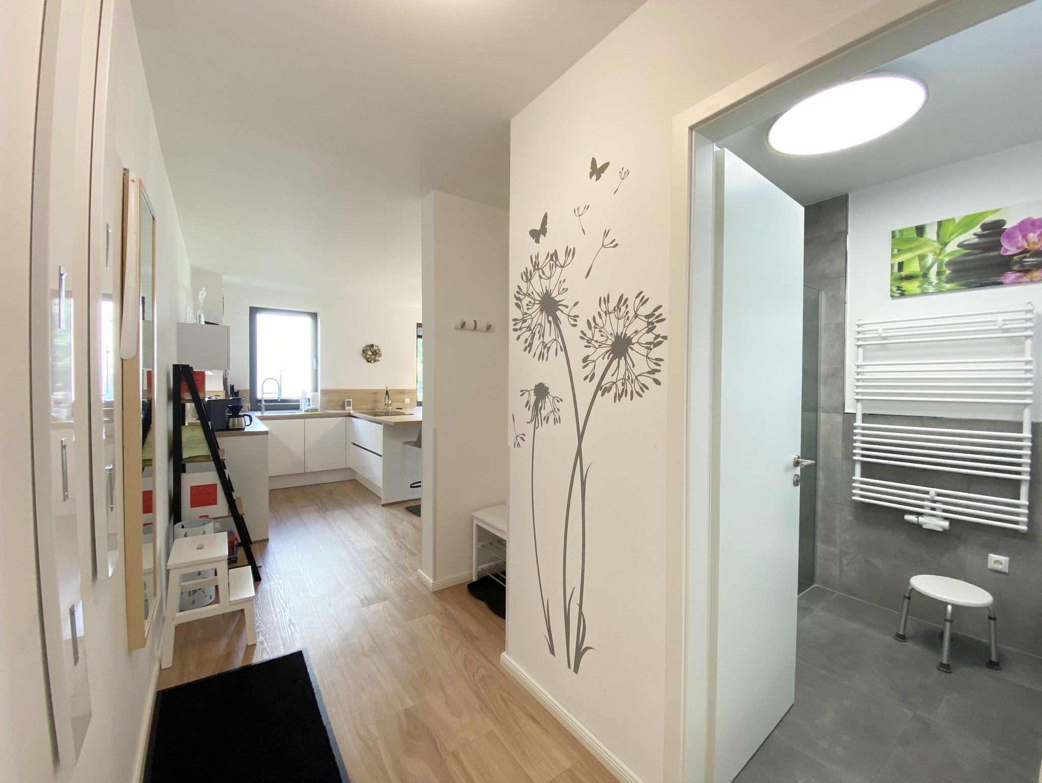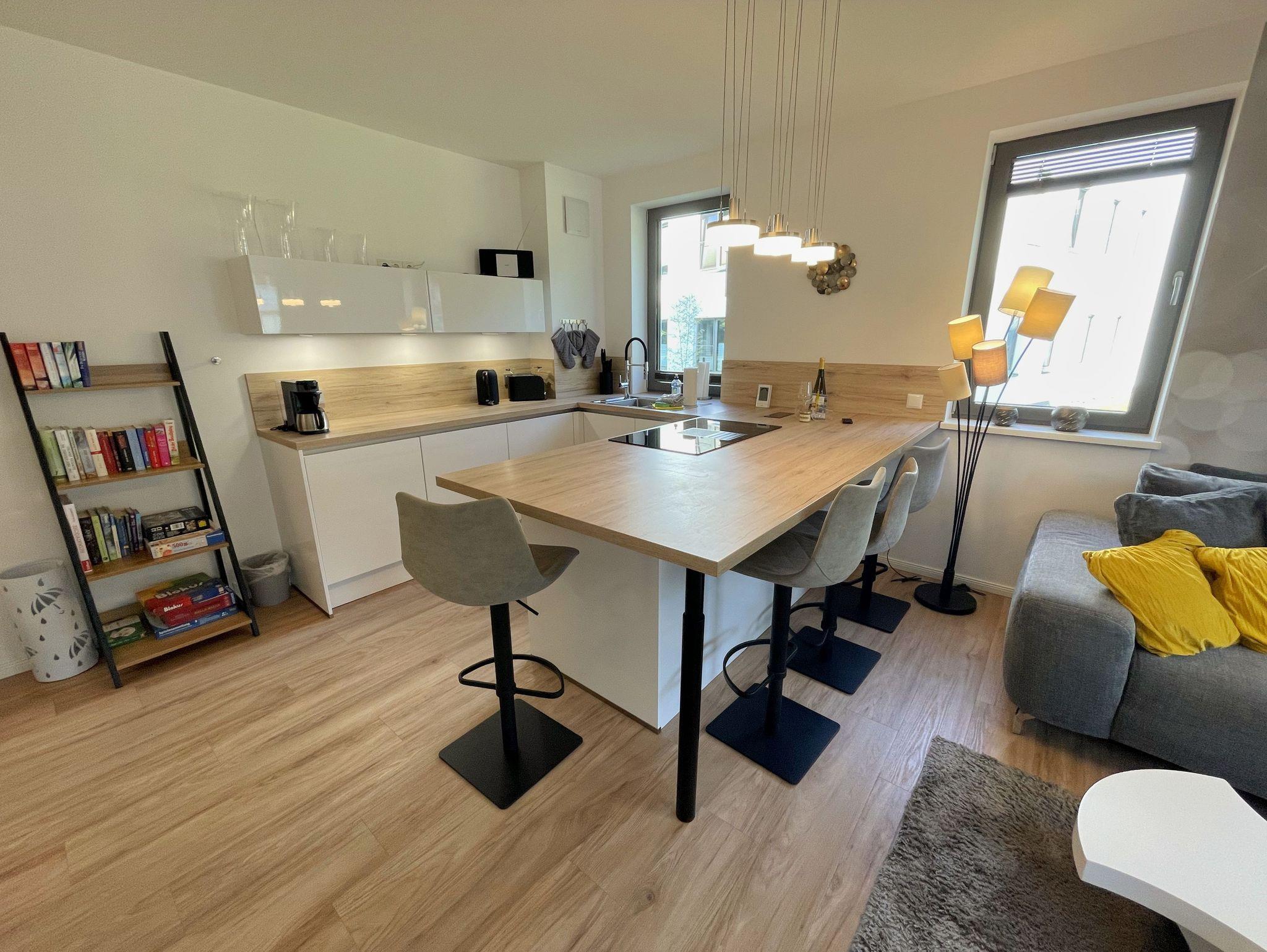 Unsere exklusiv eingerichtete Nicht-Raucher-Ferienwohnung (Nr. 12) Pusteblume befindet sich im Erdgeschoss der Villa Carlota. Sie bietet Ihnen mit Ihren ca. 52 qm Platz für max. 2 bis 4 Erwachsene. Mit viel Liebe ins Detail und geschmackvoll eingerichtet, bietet unsere Ferienwohnung in allen Jahreszeiten einen perfekten Wohlfühlcharakter. Im Sommer kühlt die Ost Lage, im Winter sorgt die Fußbodenheizung für warme Füße. Im Wohnbereich befindet sich eine große und bequeme Couch, die mit einfachen Handgriffen zu einer großzügigen Schlafcouch (1,45m x 2,25m) umgewandelt werden kann. Mit der weichen Bettauflage (Topper), die die Couch fast zu einem gleichwertigen Bett umwandelt, ist auch bequemes Übernachten für 2 Erwachsene möglich. Ein DAB-Radio, eine Musikanlage sowie ein Smart-TV runden den technischen Bereich ab. Von hier gelangen Sie auf Ihre bestuhlte Terrasse (Osten), wo Sie sich morgens vom Klang der Möwen wecken lassen können. Die angrenzende hochwertige Küchenzeile ist mit allem ausgestattet, was benötigt wird wie ein Geschirrspüler, ein Induktionskochfeld, ein Kühlschrank mit Gefrierfach, ein Backofen, eine Mikrowelle, ein Toaster, einen Wasserkocher, eine Kaffeemaschine SENSEO Duo (Pad-Maschine + Filter), ein Eierkocher, ein Mixer sowie viele kleine Küchenhelfer, die auch das Kuchen backen ermöglichen. Am Küchentresen finden bis zu 4 Personen Platz, wo Sie auch für notwendige Home-Office-Tätigkeiten genügend Steckdosen für Ihren Laptop, finden. Das große und gemütliche Boxspringbett ( 1,80m x 2,00m) in Komfort-Höhe im Schlafzimmer verschafft Ihnen entspannte Träume. Insektenschutzgitter sowie ein großer Kleiderschrank, Nachttischablagen mit Beleuchtung, ein Smart-TV und ein Sideboard runden den Raum ab. Das innenliegende Bad ist mit einer ebenerdigen Dusche, einem Waschtisch mit Spiegel, einen Handtuchheizkörper, einen Fön, ein Kosmetikspiegel, ein WC, einer Waschmaschine ausgestattet. Reinigungsutensilien sowie ein Wäschetrockner und Staubsauger stehen für Sie bereit. Für unsere kleinen Gäste ist ein Kinderreisebett (ohne Zusatzmatratze/ ohne Bett Inlett) inklusive. Ein kleiner, stubenreiner und gut erzogener 4-beiner ist gegen eine Gebühr ein gern gesehener Gast. Von Ihrem extrabreiten (4m) Tiefgaragen-Stellplatz (Nr.82, Einfahrtshöhe 2,15m) gelangen Sie durch den Fahrstuhl bequem zu Ihrer Wohnung. Ihre Fahrräder können Sie im zur Wohnung gehörenden Keller (Nr.12) sicher abstellen. Die Erstausstattung eines Wäschepaketes (komplette Bettwäsche, 1 Duschhandtuch, 2 kleine Handtücher) können Sie bis 14 Tage vor Anreise gegen einen Aufpreis dazu buchen oder durch eigene ergänzen. Ab 2 gebuchten Paketen erhalten Sie einmalig 1 Geschirrhandtuch und 1 Duschvorleger hinzu.