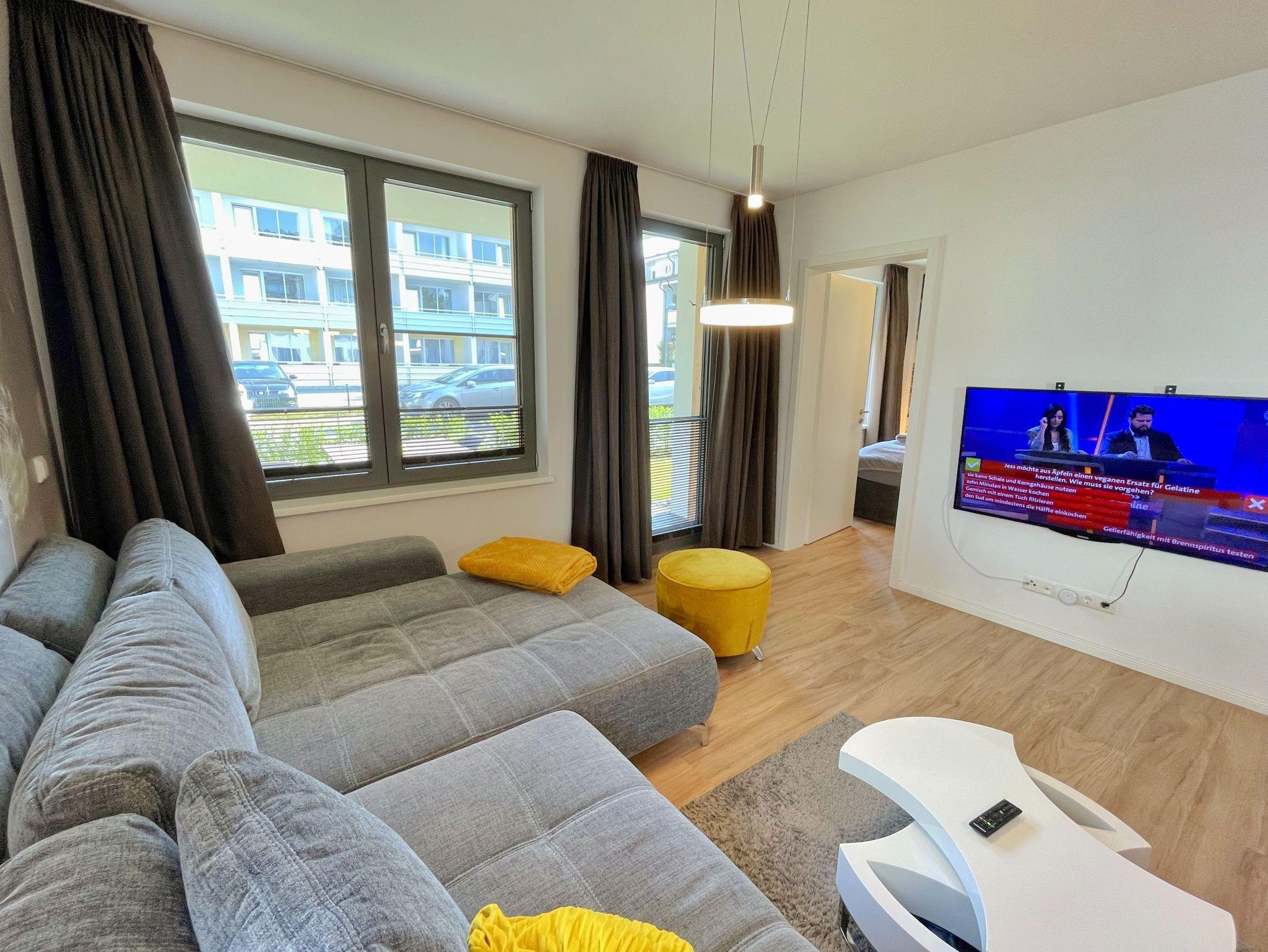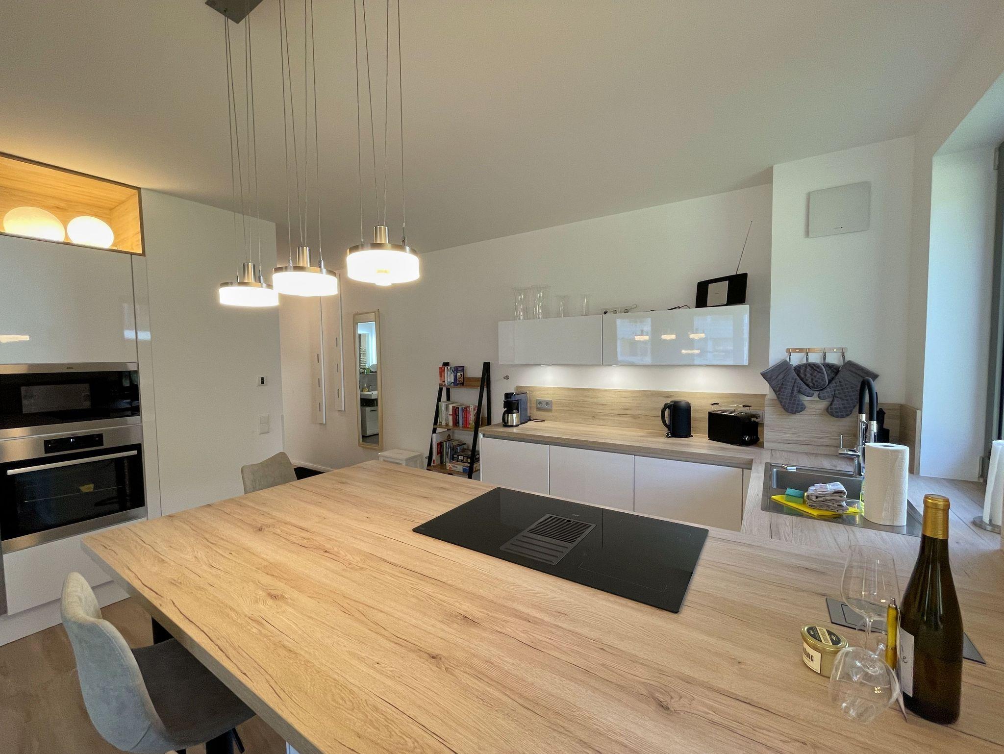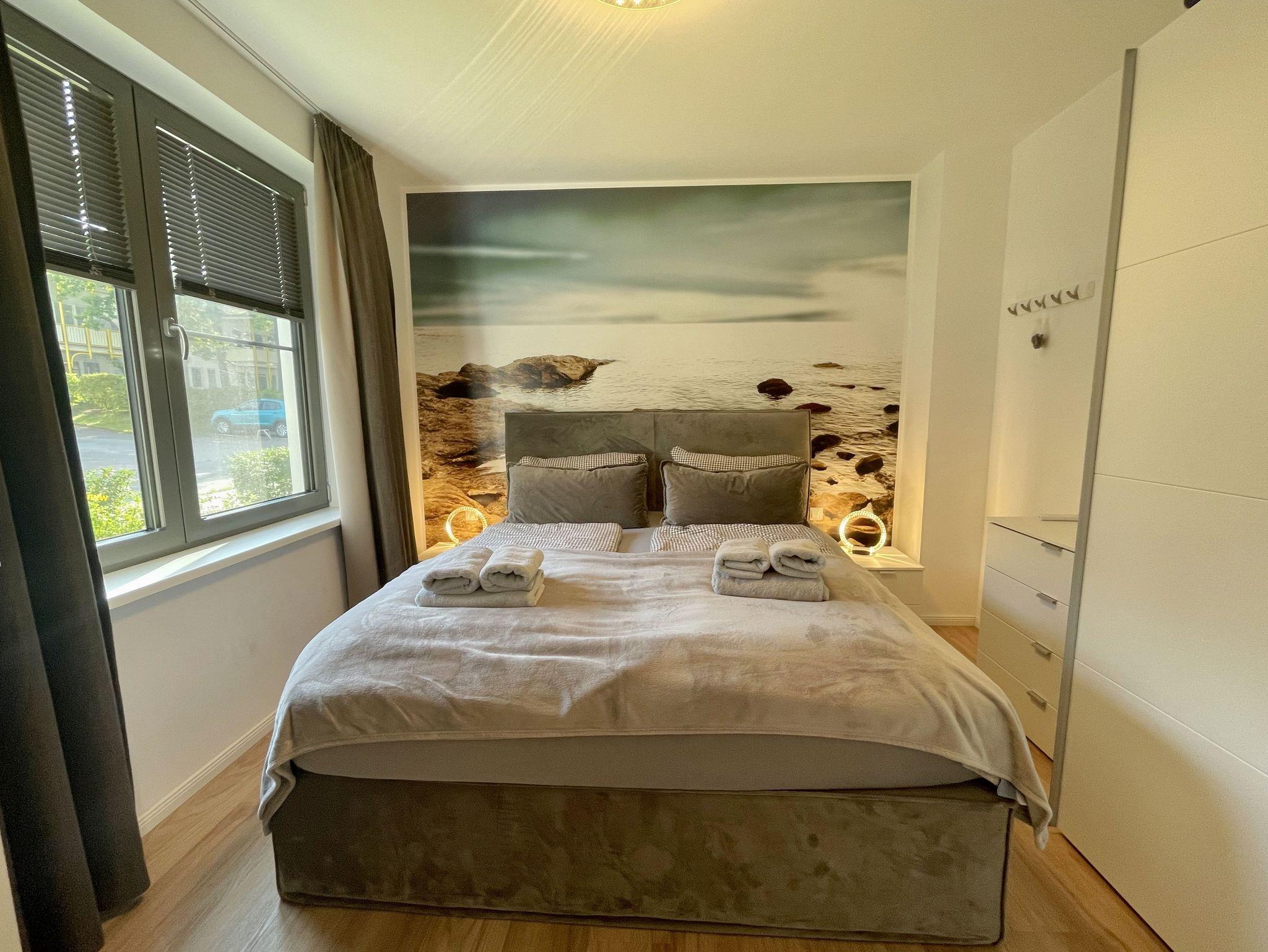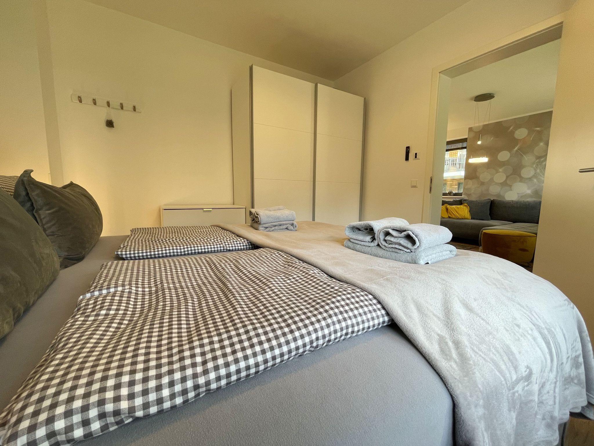 Unsere exklusiv eingerichtete Nicht-Raucher-Ferienwohnung (Nr. 12) Pusteblume befindet sich im Erdgeschoss der Villa Carlota. Sie bietet Ihnen mit Ihren ca. 52 qm Platz für max. 2 bis 4 Erwachsene. Mit viel Liebe ins Detail und geschmackvoll eingerichtet, bietet unsere Ferienwohnung in allen Jahreszeiten einen perfekten Wohlfühlcharakter. Im Sommer kühlt die Ost Lage, im Winter sorgt die Fußbodenheizung für warme Füße. Im Wohnbereich befindet sich eine große und bequeme Couch, die mit einfachen Handgriffen zu einer großzügigen Schlafcouch (1,45m x 2,25m) umgewandelt werden kann. Mit der weichen Bettauflage (Topper), die die Couch fast zu einem gleichwertigen Bett umwandelt, ist auch bequemes Übernachten für 2 Erwachsene möglich. Ein DAB-Radio, eine Musikanlage sowie ein Smart-TV runden den technischen Bereich ab. Von hier gelangen Sie auf Ihre bestuhlte Terrasse (Osten), wo Sie sich morgens vom Klang der Möwen wecken lassen können. Die angrenzende hochwertige Küchenzeile ist mit allem ausgestattet, was benötigt wird wie ein Geschirrspüler, ein Induktionskochfeld, ein Kühlschrank mit Gefrierfach, ein Backofen, eine Mikrowelle, ein Toaster, einen Wasserkocher, eine Kaffeemaschine SENSEO Duo (Pad-Maschine + Filter), ein Eierkocher, ein Mixer sowie viele kleine Küchenhelfer, die auch das Kuchen backen ermöglichen. Am Küchentresen finden bis zu 4 Personen Platz, wo Sie auch für notwendige Home-Office-Tätigkeiten genügend Steckdosen für Ihren Laptop, finden. Das große und gemütliche Boxspringbett ( 1,80m x 2,00m) in Komfort-Höhe im Schlafzimmer verschafft Ihnen entspannte Träume. Insektenschutzgitter sowie ein großer Kleiderschrank, Nachttischablagen mit Beleuchtung, ein Smart-TV und ein Sideboard runden den Raum ab. Das innenliegende Bad ist mit einer ebenerdigen Dusche, einem Waschtisch mit Spiegel, einen Handtuchheizkörper, einen Fön, ein Kosmetikspiegel, ein WC, einer Waschmaschine ausgestattet. Reinigungsutensilien sowie ein Wäschetrockner und Staubsauger stehen für Sie bereit. Für unsere kleinen Gäste ist ein Kinderreisebett (ohne Zusatzmatratze/ ohne Bett Inlett) inklusive. Ein kleiner, stubenreiner und gut erzogener 4-beiner ist gegen eine Gebühr ein gern gesehener Gast. Von Ihrem extrabreiten (4m) Tiefgaragen-Stellplatz (Nr.82, Einfahrtshöhe 2,15m) gelangen Sie durch den Fahrstuhl bequem zu Ihrer Wohnung. Ihre Fahrräder können Sie im zur Wohnung gehörenden Keller (Nr.12) sicher abstellen. Die Erstausstattung eines Wäschepaketes (komplette Bettwäsche, 1 Duschhandtuch, 2 kleine Handtücher) können Sie bis 14 Tage vor Anreise gegen einen Aufpreis dazu buchen oder durch eigene ergänzen. Ab 2 gebuchten Paketen erhalten Sie einmalig 1 Geschirrhandtuch und 1 Duschvorleger hinzu.