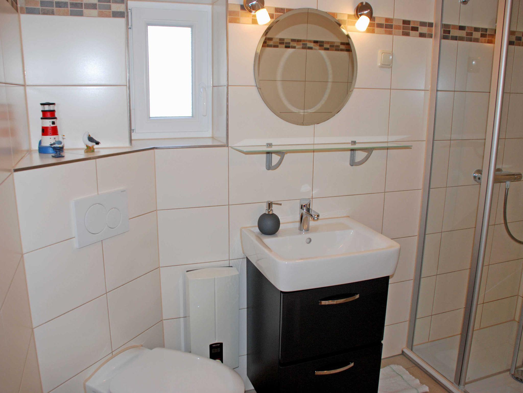 Das moderne Bad ist mit Dusche, WC und Waschtisch ausgestattet und verfügt über Tageslicht. Im schönen Garten finden Sie eine Terrasse (teilweise überdacht) mit Gartenmöbeln, Sonnenliegen und Grillmöglichkeit.