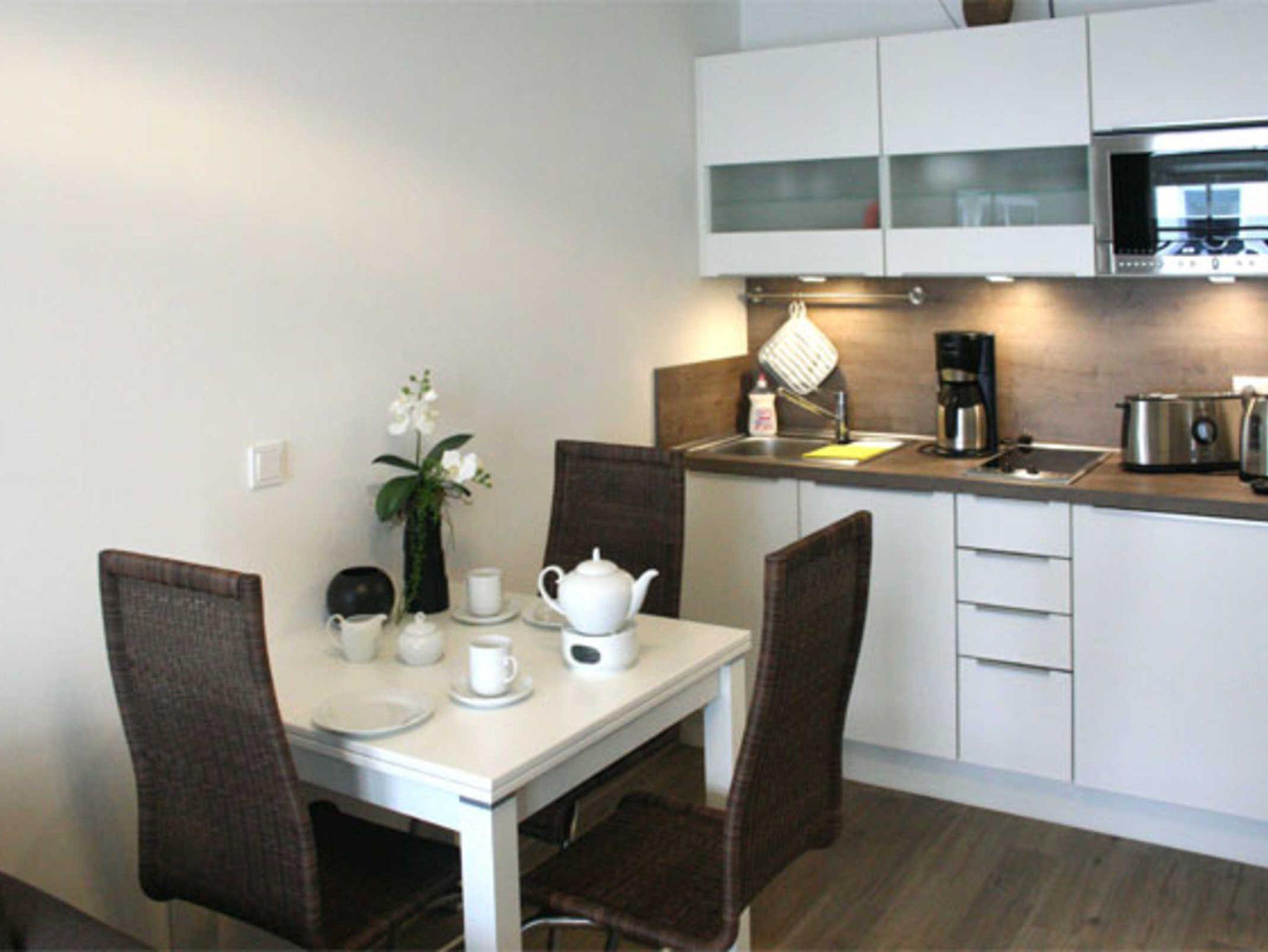 Die moderne Ferienwohnung Dünenzauber ist ca. 39 qm groß und liegt im ersten Obergeschoss der Residenz Haus im Haus Meeresblick.