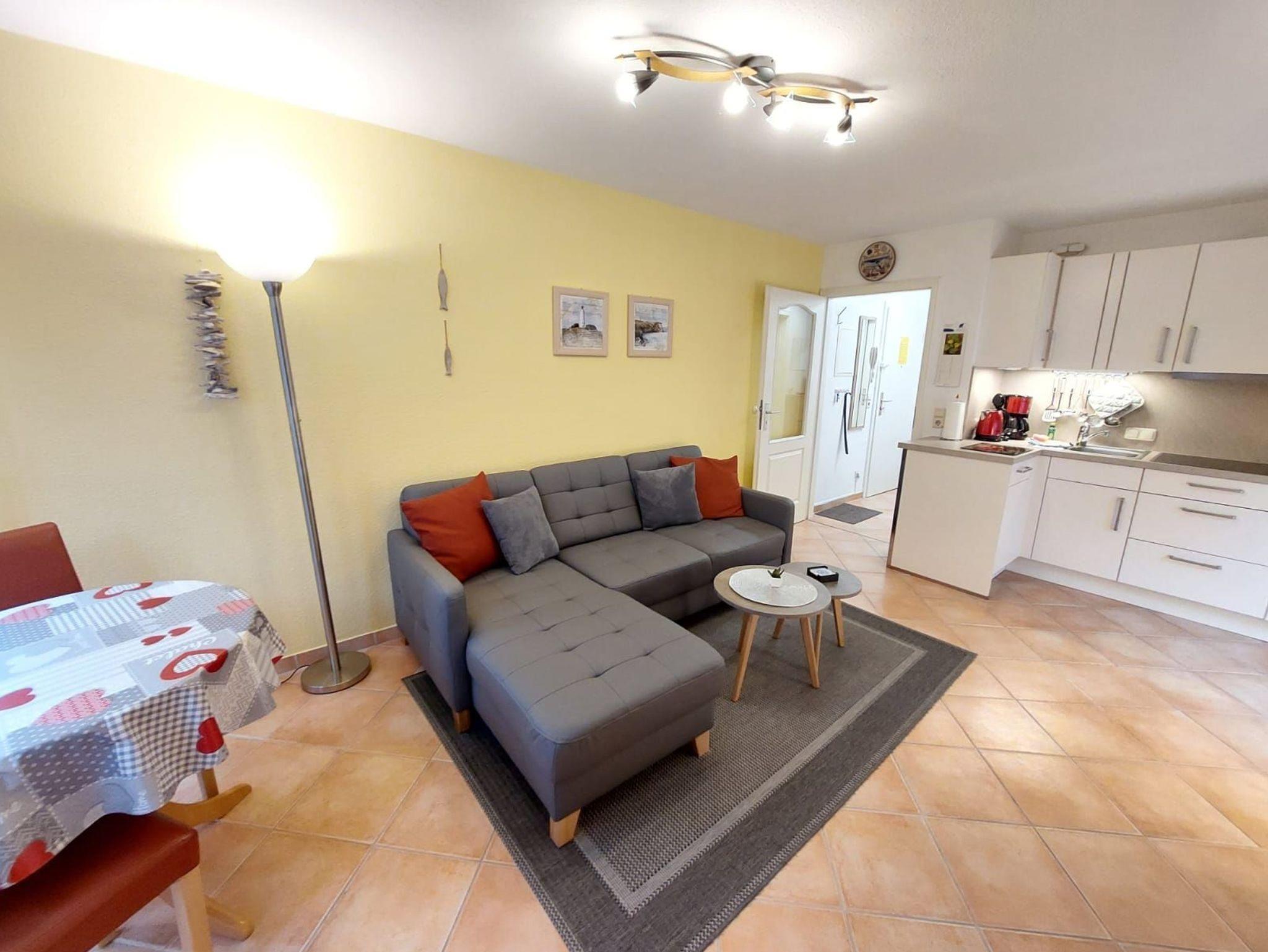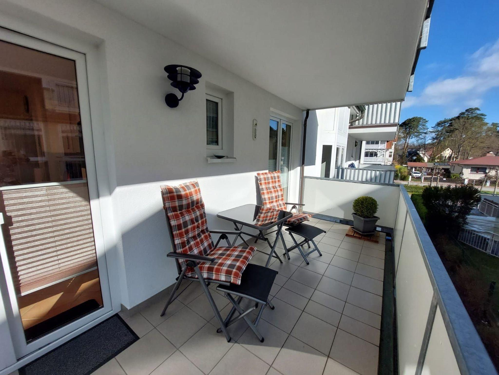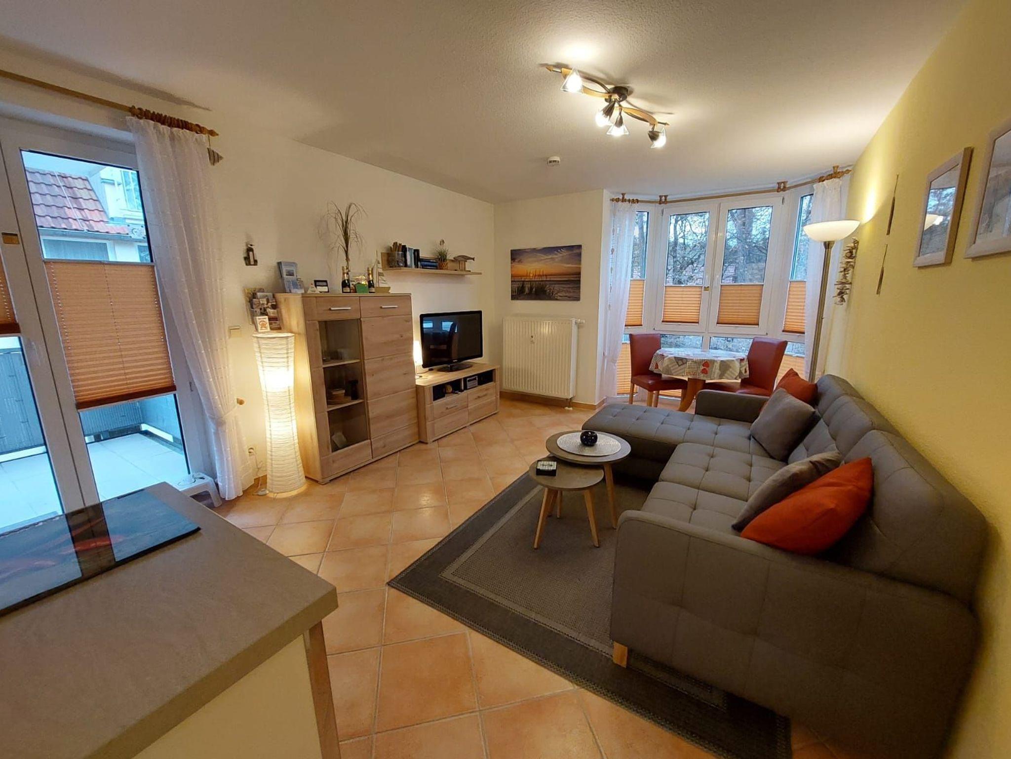 Die moderne und maritim eingerichtete NICHTRAUCHER-Ferienwohnung Strandvogel 3, 41 qm, max. 2 Gäste, Wohnzimmer, Schlafzimmer, Bad/Dusche, Küchenzeile im WZ, Lift, WLAN, Balkon) liegt angenehm ruhig in der ersten Etage eines 2001 errichteten Appartementhauses, nur etwa 400 m vom feinsandigen Badestrand an der Ostsee.