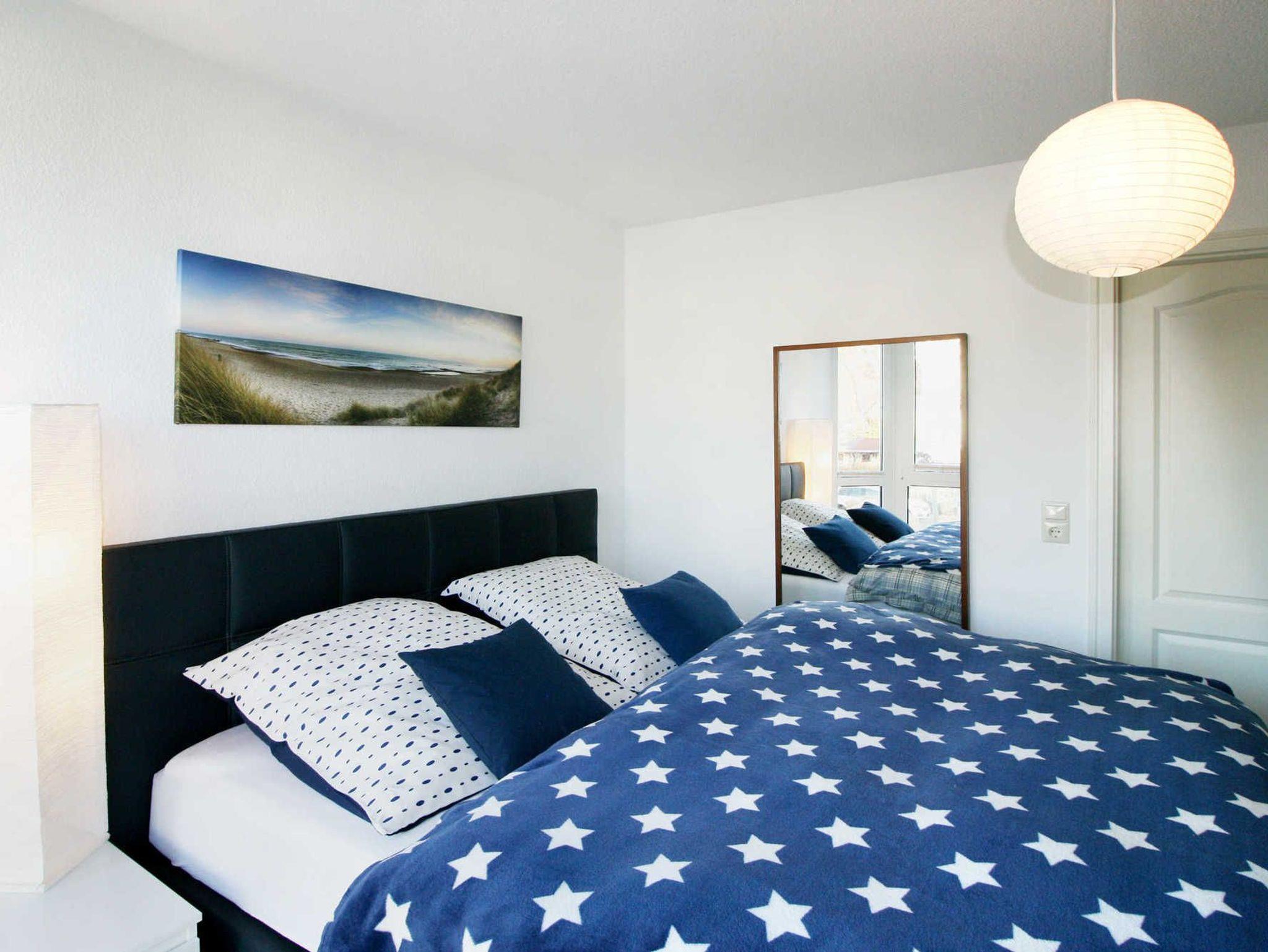 Ihre moderne 2-Zimmerwohnung 55RB7 hat eine Größe von ca. 48 qm und ist für bis zu 4 Personen eingerichtet. Sie befindet sich im 1. Obergeschoss und verfügt über einen möblierten Südwestbalkon auf dem Sie die Sonnenstrahlen und den Blick auf die Flaniermeile des Ortes genießen können. Die maritim eingerichtete Nichtraucherwohnung teilt sich auf in einen Flur mit integrierter Küchenzeile, ein Tageslichtbad, gemütliches Schlafzimmer sowie einen schönen Wohnraum mit Zugang zum Balkon. Der Wohnbereich erwartet Sie mit einem bequemen Sofa, welches eine Schlafgelegenheit für die 3. und 4. Person bietet. Der Essbereich im verglasten Erker lädt zum gemeinsamen Essen zu jeder Tageszeit ein.