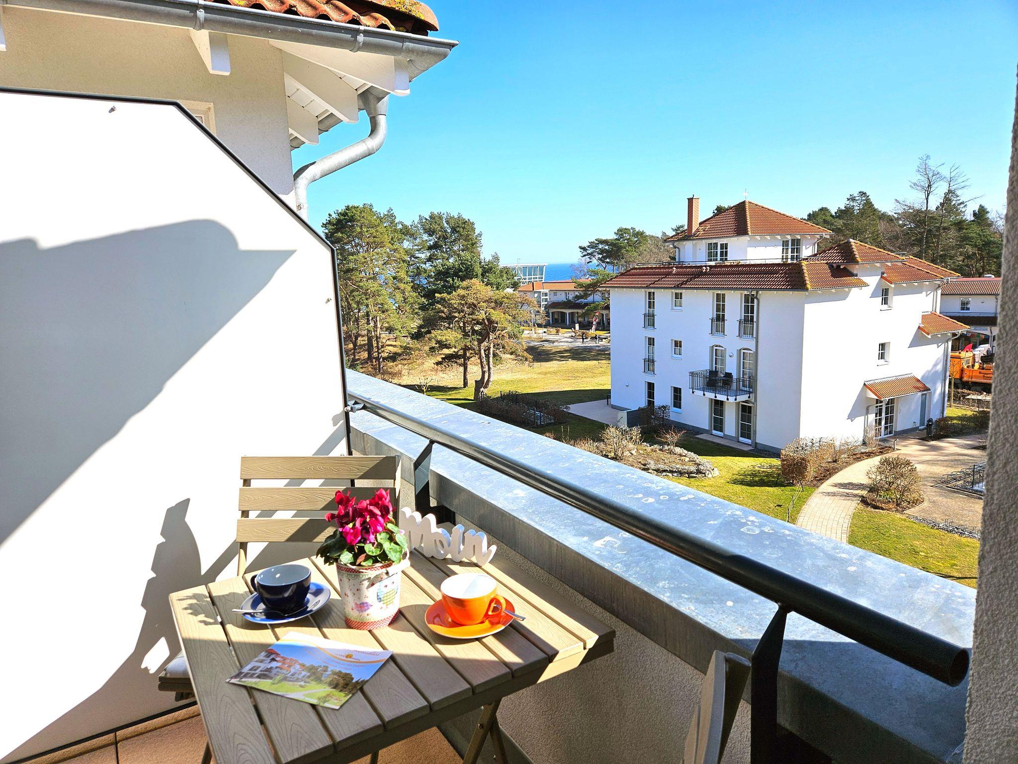 Diese lichtdurchflutete und komfortable Nichtraucher/Familien-Ferienwohnung in Ecklage befindet sich im dritten Stock der Residenz Haus Meeresblick zur Südseite. Vom sonnigen Balkon aus genießen Sie einen schönen Blick auf den Kurpark bis hin zur Ostsee.