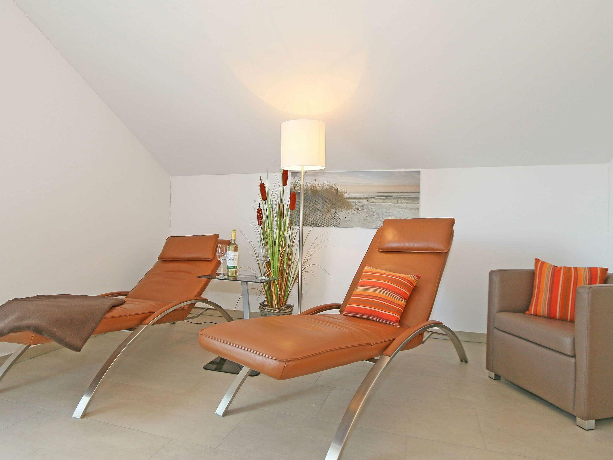 • offene Galerie mit 2 Lederliegen, 2 Sessel und Flachbild-TV