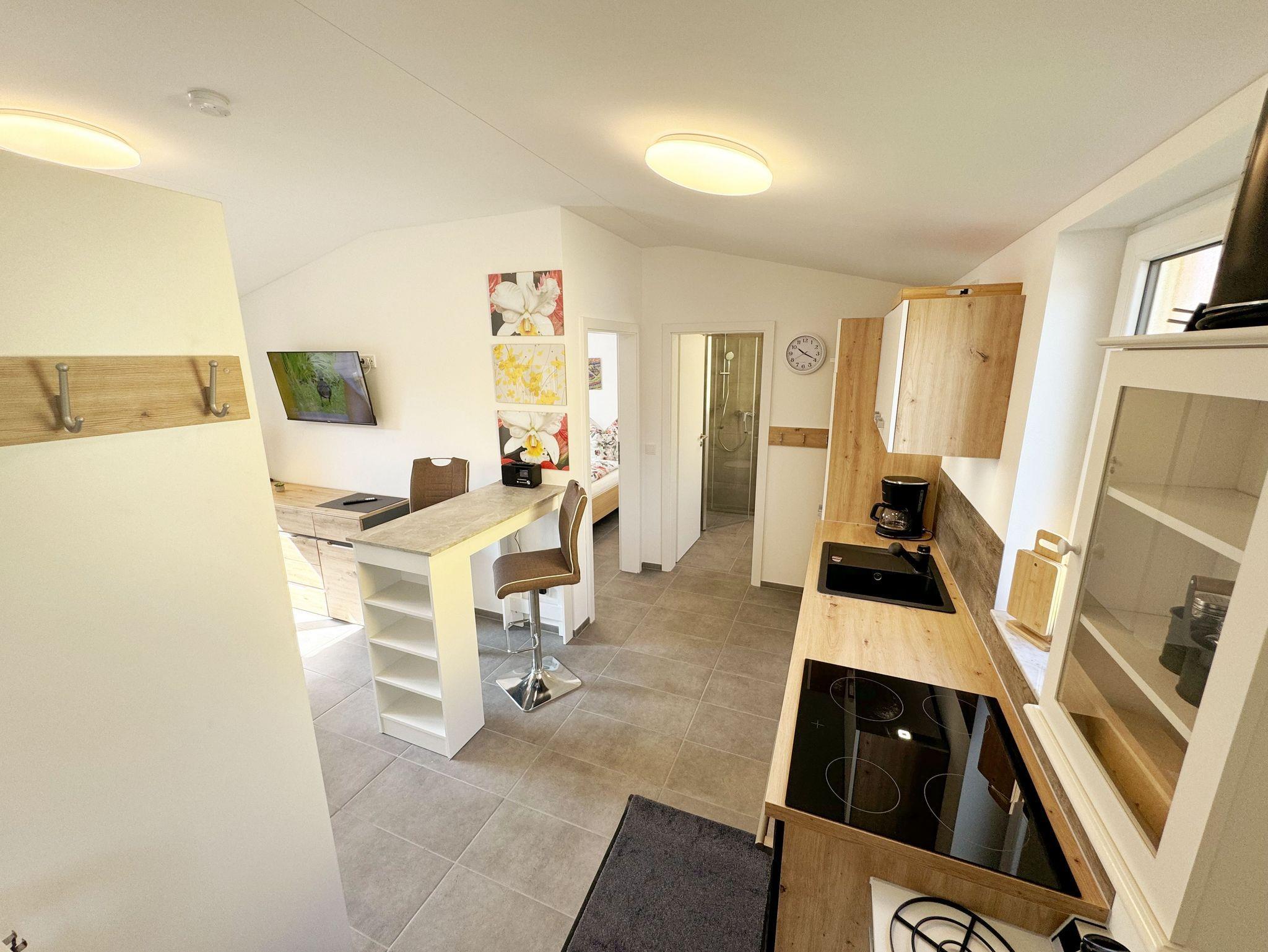 Der 2024 fertiggestellte, gemütliche und liebevoll eingerichtete Bungalow Nr.02 „Fantasie“ bietet Ihnen Platz für max. 2 Personen. Der Nichtraucher Bungalow umfasst ca. 40 m². Beim Betreten des Hauses befindet sich die offene Küchenzeile welche mit einem Cerankochfeld, einem Backofen, einer Geschirrspülmaschine, einem Kühlschrank mit Gefrierfach, einem Geschirrspüler, einem Mixer, einer Kaffeemaschine, einer Nespresso Maschine, einem Wasserkocher, einem Toaster und umfangreichen Küchenutensilien ausgestattet ist. Im angrenzenden Wohnbereich rundet ein Essplatz in Form eines Thekentisches mit bequemen Stühlen den Küchenbereich ab. Im Wohnbereich bietet Ihnen eine Couch mit einem Couchtisch, einer Designer-Stehlampe, einem Sideboard mit einem Smart-TV, WLAN und einem DAB-Radio den benötigten Komfort. Das wohnliche Ambiente wird zudem durch einige Fotografien abgerundet. Für viel natürliches Licht sorgt die große Terrassentür. Durch einen kleinen Absatz gelangen Sie hier auf Ihre bestuhlte Terrasse (Süden) mit einem Sonnenschirm, einem Holzkohlegrill sowie einen an der Wand befestigten Wäschetrockner. Im großen Schlafzimmer mit einem Doppelbett (1,80m x 2,00m), Nachttischablagen mit Beleuchtung, einem Kleiderschrank, Verdunklungsmöglichkeit und Insektenschutzgitter können Sie einen erholsamen Schlaf genießen. Im modernen Tageslicht-Bad befindet sich eine ebenerdige Dusche, ein Waschplatz, ein WC, ein Kosmetikspiegel, ein beheizbarer Handtuchtrockner sowie ein Fön. Der gesamte Bungalow ist mit einer hochwertigen Keramikfliese ausgelegt. Für kühle oder heiße Tage können Sie ein Split Gerät (Klima & Wärme), das sich im Wohnbereich befindet, nutzen. Im kleinen Abstellraum, im Eingangsbereich, befindet sich ein Staubsauger, Wischutensilien, sowie ein Besen mit Handfeger und Schaufel. Sie möchten in Ihrem Urlaub Fahrrad fahren? Hierfür finden Sie im angrenzenden Fahrradschuppen zusätzlich 2 Fahrräder mit einer 26 & 28iger Rahmengröße, die Sie gerne nutzen können (kein Vertragsbestandteil) oder Sie bringen gerne auch Ihre eigenen Räder mit, welche Sie hier abstellen können. Ein PKW-Stellplatz (Nr. 2) befindet sich direkt auf dem Grundstück und ist für Sie inklusive. Haustiere sind nicht erlaubt. Die Erstausstattung eines Wäschepaketes (komplette Bettwäsche, 1 Duschhandtuch, 1 kleines Handtuch) können Sie bis 14 Tage gegen einen Aufpreis dazu buchen oder durch eigenes Ergänzen. Ab 2 gebuchten Paketen erhalten Sie einmalig 1 Geschirrhandtuch und 1 Duschvorleger hinzu.