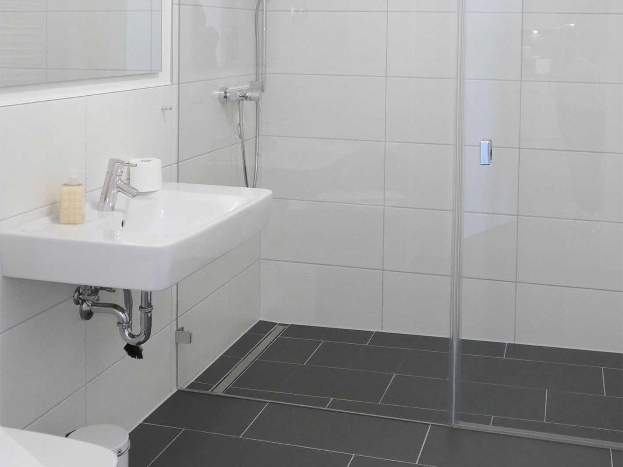Der Wohn-/Essbereich verfügt über eine moderne Küchenzeile, einem Essplatz sowie einem gemütlichen Sitzbereich mit Sofa, Sessel und Flachbildfernseher. Ein Schlafzimmer ist mit einem hochwertigen Boxspringbett (180 x 200 cm) ausgestattet, das andere mit einem Einzelbett. Auf der Terrasse befindet sich ein Tisch mit drei Stühlen. Die Wohnung ist stufenfrei, das Bad hat einen großen Wendekreis und im Einzelzimmer ebenfalls.