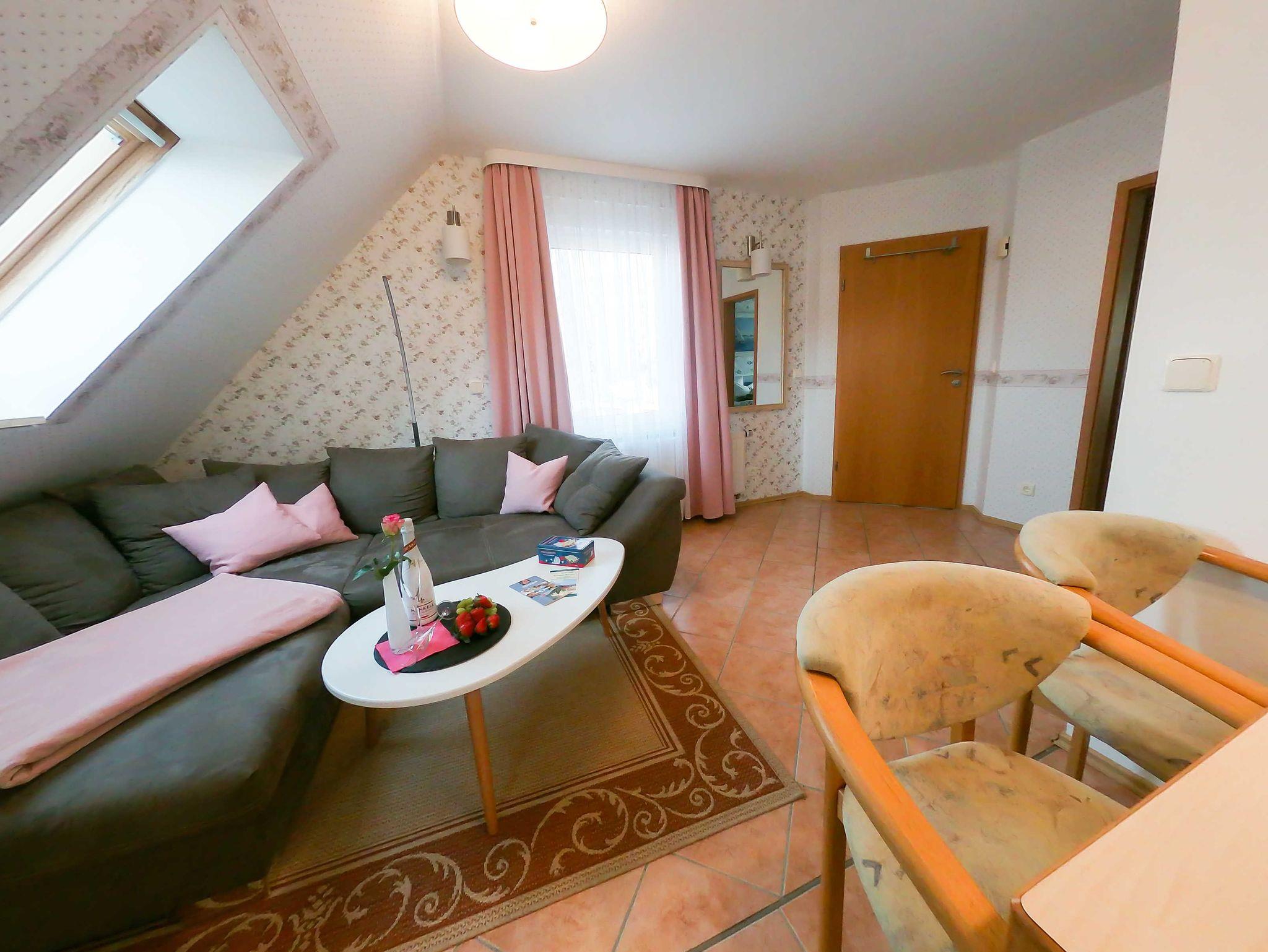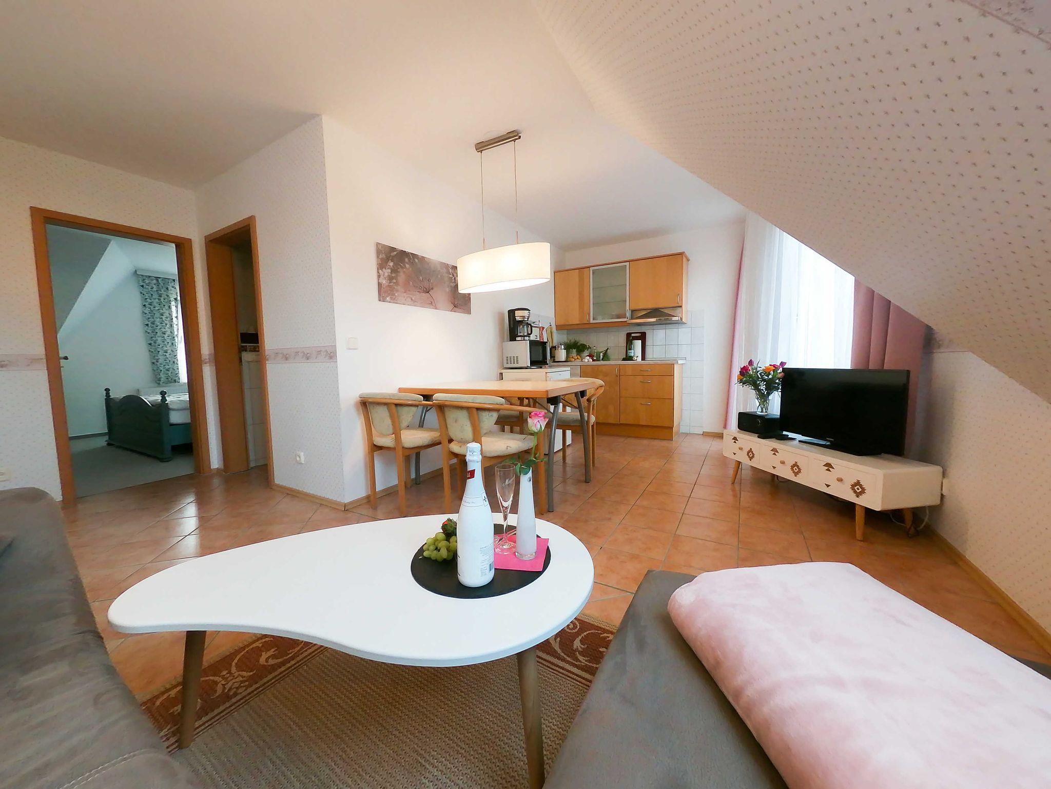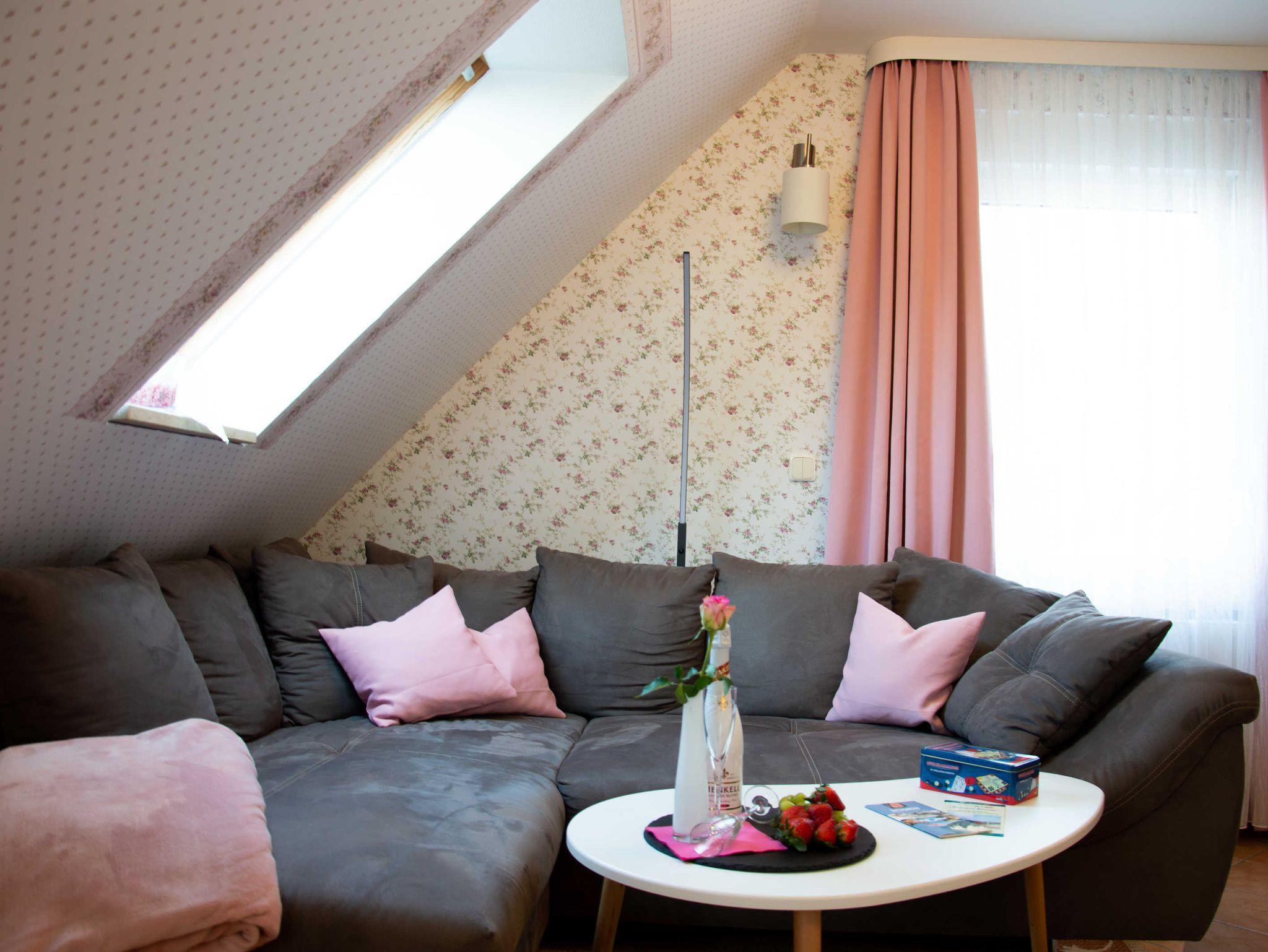 Die Ferienwohnung befindet sich in unserem Wohnhaus mit separatem Eingang und Flur im Dachgeschoß