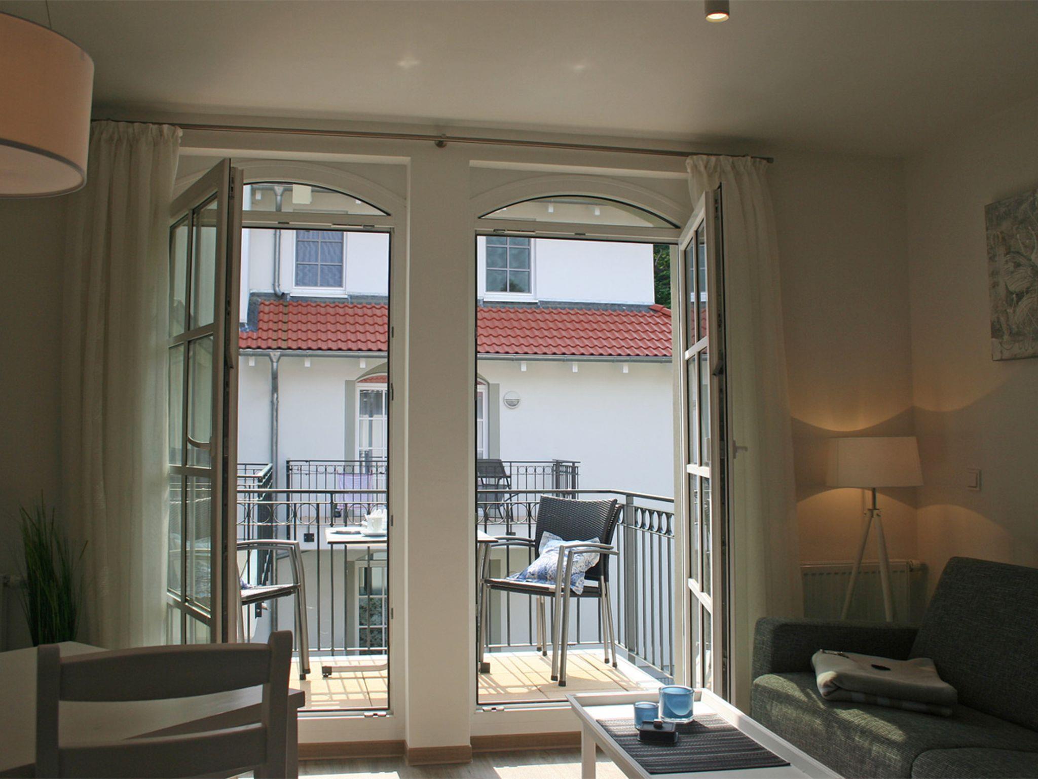 Diese modern eingerichtete Ferienwohnung für 2 - 4 Personen liegt im zweiten Obergeschoss der Residenz Haus Meeresblick. Sie hat ein separates Schlafzimmer und einen möblierten Balkon mit einem sehr schönen Blick Richtung Wald.
