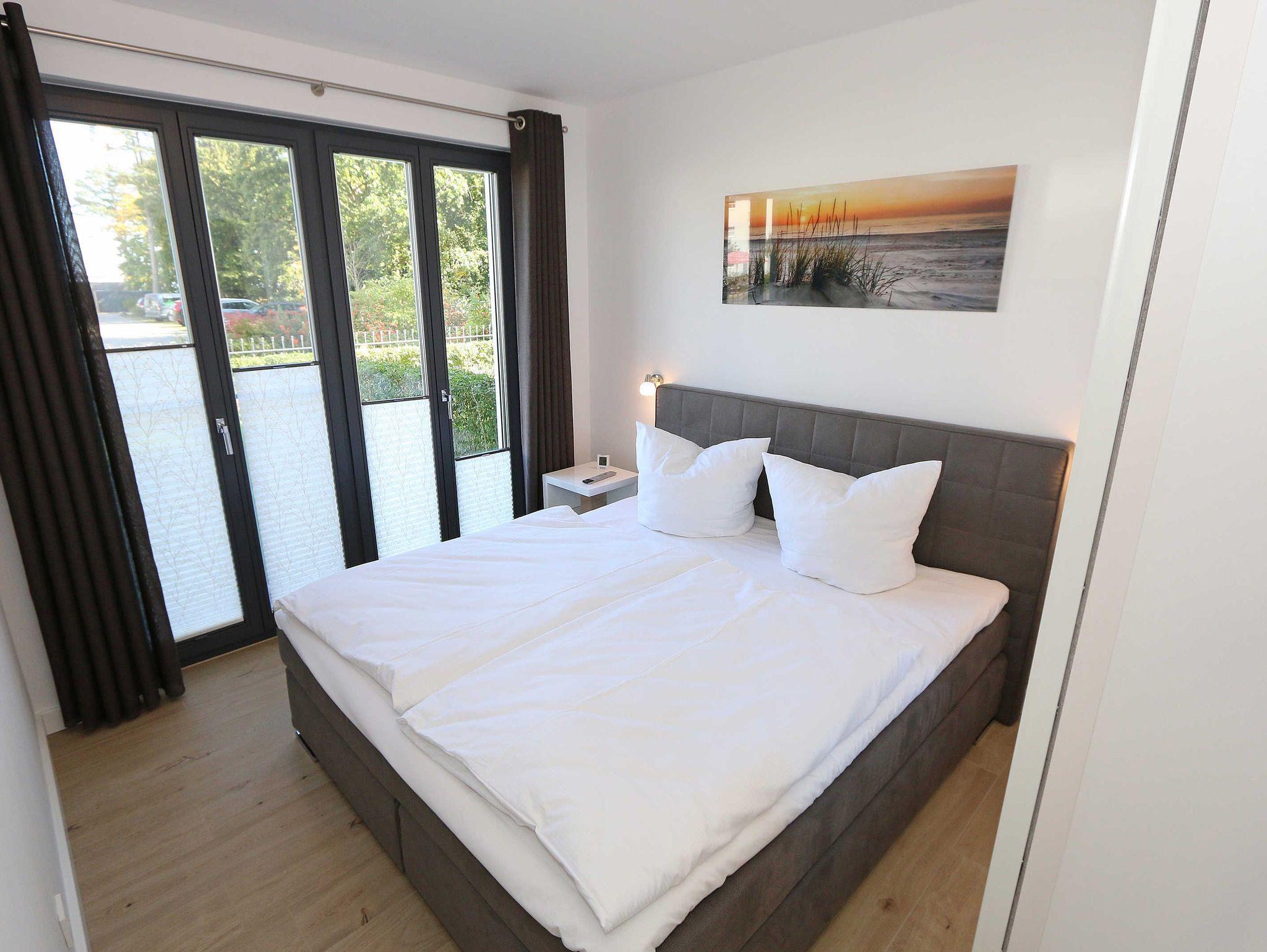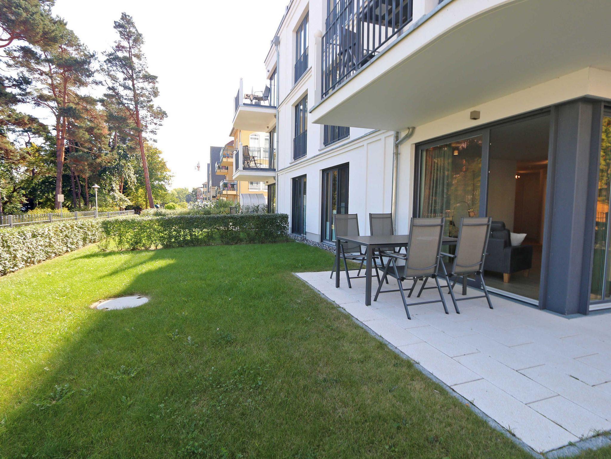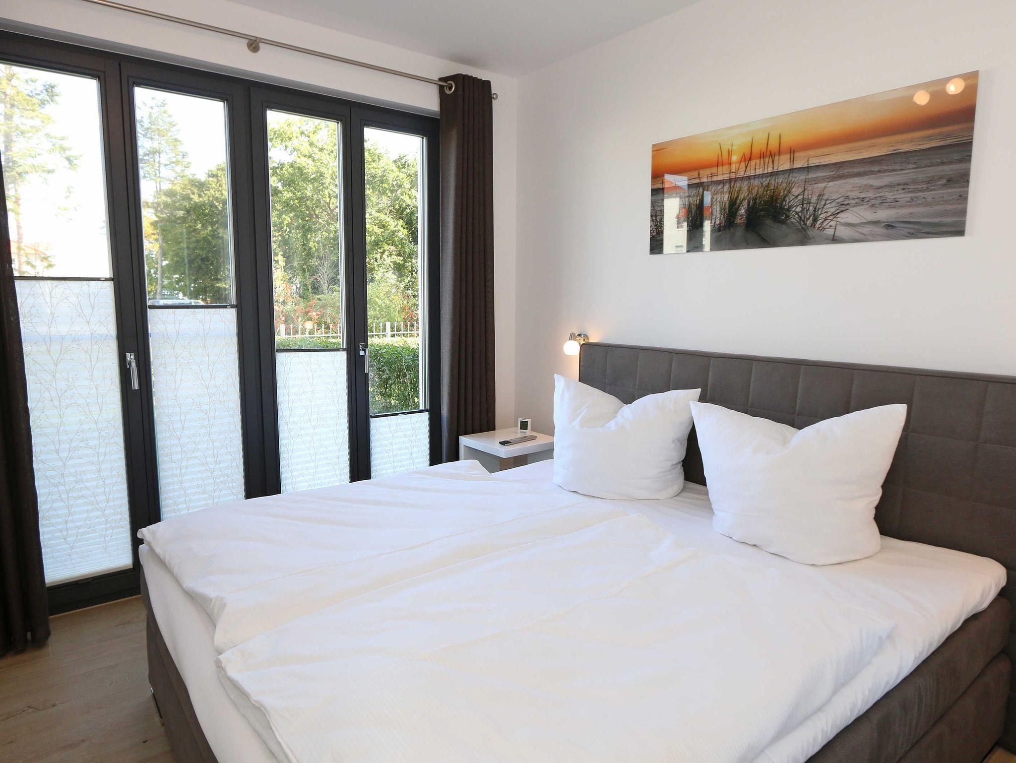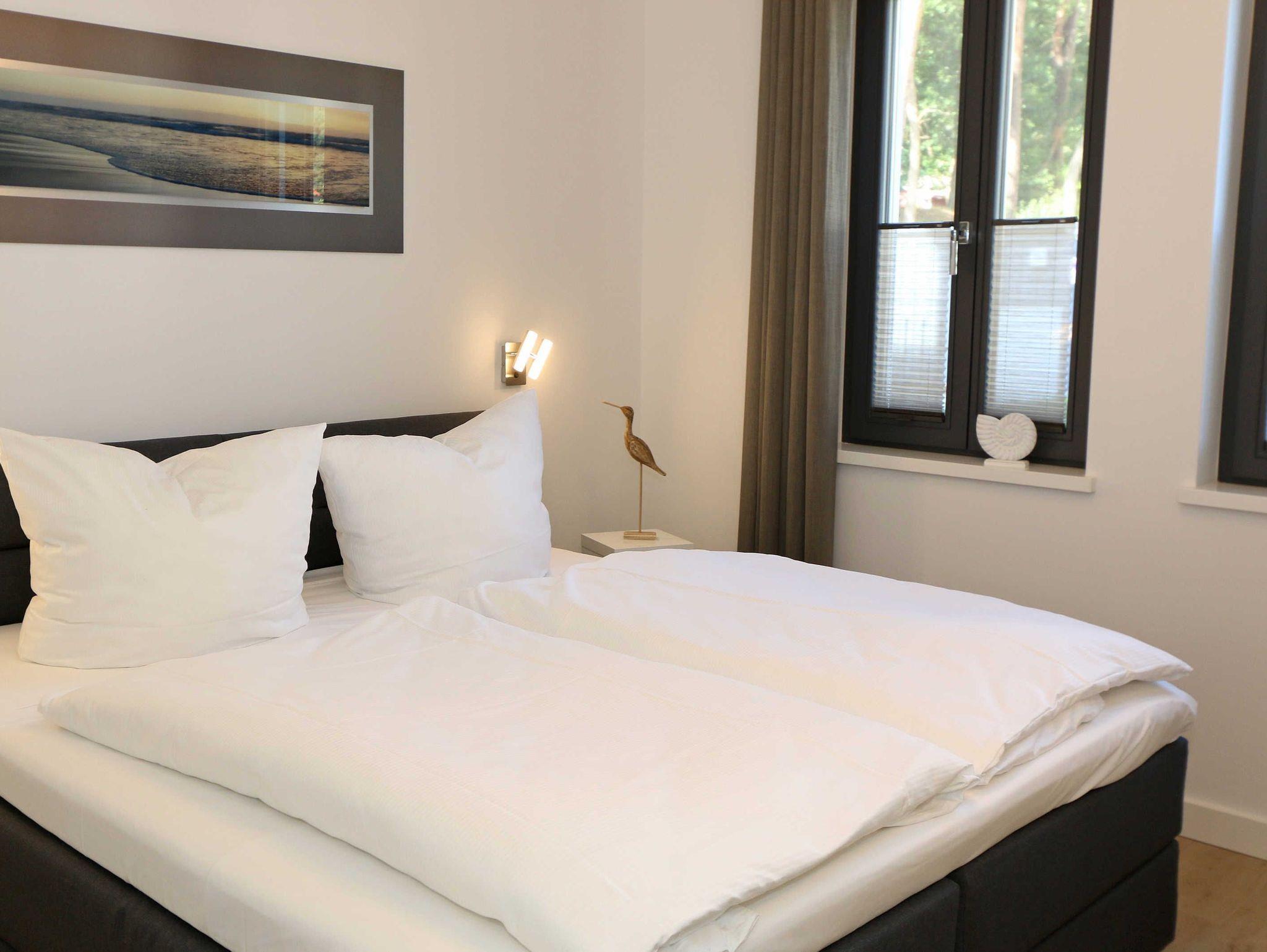 Die 68 m² große Nichtraucherwohnung ?Küstensegler? befindet sich im Erdgeschoss und wurde liebevoll für Sie ausgestattet. Sie bietet eine sehr schöne Raumaufteilung und hochwertige Ausstattung für einen erholsamen Urlaub für max. 2 bis 4 Erwachsenen. In der kalten Jahreszeit verteilt sich über die Fußbodenheizung eine wohlige Wärme in der Wohnung. Im freundlichen Wohn-/Esszimmer können Sie es sich auf der Couch mit Couchtisch, Leselampe und Sessel bequem machen. Ein 43 Zoll-Ultra HD Smart-TV, Blu-Ray Player und ein DAB-Radio mit CD-Player, Bluetooth und USB-Anschluss sorgen für Ihre Unterhaltung. Ein WLAN-Zugang steht selbstverständlich zur kostenfreien Nutzung für Sie bereit. Aber auch eine kleine Auswahl an Gesellschaftsspielen und Bücher steht Ihnen zur Verfügung. Der Esstisch für 4 Personen befindet sich neben der komfortabel gestalteten und umfangreich ausgestatteten Küchenzeile und lädt zum Verweilen ein. Ein Geschirrspüler, ein 4 Zonen-Ceranfeld, ein Backofen, ein Kühlschrank mit Gefrierfach, eine Mikrowelle, eine Kaffeemaschine mit Thermoskanne, eine Tassimo-Kapselmaschine, ein Toaster, ein Wasserkocher sowie ein Eierkocher komplettieren diese. Natürlich sind auch viele große und kleine Küchenutensilien vorhanden. Vom Wohnbereich gelangen Sie auf die überdachte und bestuhlte Terrasse (Osten) der Ihnen einen Blick auf den kleinen Kurpark von Baabe ermöglicht. Genießen Sie Ihr Frühstück in der Morgensonne oder ein gemütliches Glas Wein beim letzten Sonnenstrahl des Tages. Zudem kann ein eigener kleiner Gartenanteil (mit Abgrenzung durch Hecke/Zaun) von Ihnen genutzt werden. Beide Schlafzimmer sind mit bequemen Boxspringbetten (je 1,80m x 2,00m, mit durchgehende Topper, ein Schlafzimmer Härtegrad H2, das zweite Schlafzimmer Härtegrad H3), einem Nachttisch und Kleiderschrank für Ihre Urlaubsgarderobe ausgestattet. In beiden Schlafzimmern stehen Ihnen Full HD Smart-TV zur Verfügung. Das Aufstellen eines Reisebettes ist in den Schlafzimmern nicht möglich. Eines der beiden Schlafzimmer verfügt über ein eigenes Duschbad mit ebenerdiger Regendusche, Waschtisch, Ablage, WC, elektrischen Handtuchtrockner und einen Fön. Ein weiteres Duschbad mit ebenerdiger Regendusche, Waschbecken, Ablage, WC, elektrischem Handtuchtrockner, Kosmetikspiegel und Fön ist vom Flur erreichbar. Für einen erholsamen Schlaf sorgen die Außenjalousien, die in der ganzen Wohnung durchgängig vorhanden sind. In beiden Schlafräumen sowie im Essbereich befinden sich Insektenschutzgitter in einigen Fenstern. Ein Wäscheständer, ein Bügelbrett, ein Bügeleisen sowie ein Staubsauger stehen bei Bedarf zur Nutzung bereit. Über eine beheizbare Rampe erreichen Sie mit Ihrem PKW die Tiefgarage. Von Ihrem Tiefgaragenstellplatz (Nr.01, Einfahrtshöhe 2,00m) gelangen Sie bequem mit dem Aufzug zu Ihrer Ferienwohnung. Im Haus können Sie eine Waschmaschine und einen Trockner mit Münzautomaten nutzen. Eine münzbetriebene Sauna mit Duschbereich sowie kleinem Ruheraum befinden sich ebenfalls im Haus und laden zur Entspannung ein. Ihre mitgebrachten oder im Ort geliehenen Fahrräder können Sie im schön angelegten und eingezäunten Außenbereich im dafür vorgesehen Fahrradhaus (mit Steckdosen für E-Bikes) abstellen. Haustiere sind nicht erlaubt. Die Erstausstattung eines Wäschepaketes (komplette Bettwäsche, 1 Duschhandtuch, 2 kleine Handtücher) können Sie bis 14 Tage vor Anreise gegen einen Aufpreis dazu buchen oder durch eigene ergänzen. Ab 2 gebuchten Paketen erhalten Sie einmalig 1 Geschirrhandtuch und 1 Duschvorleger hinzu.