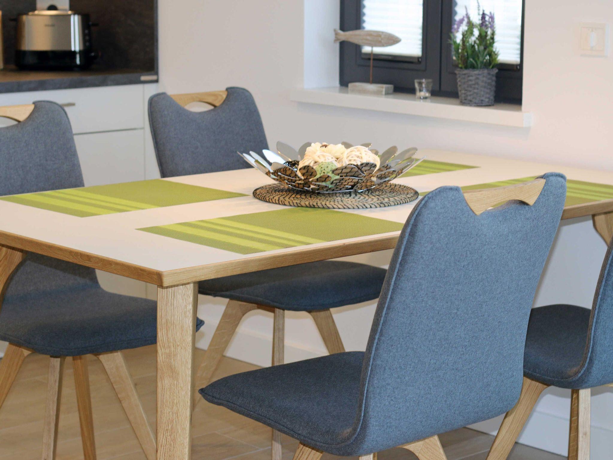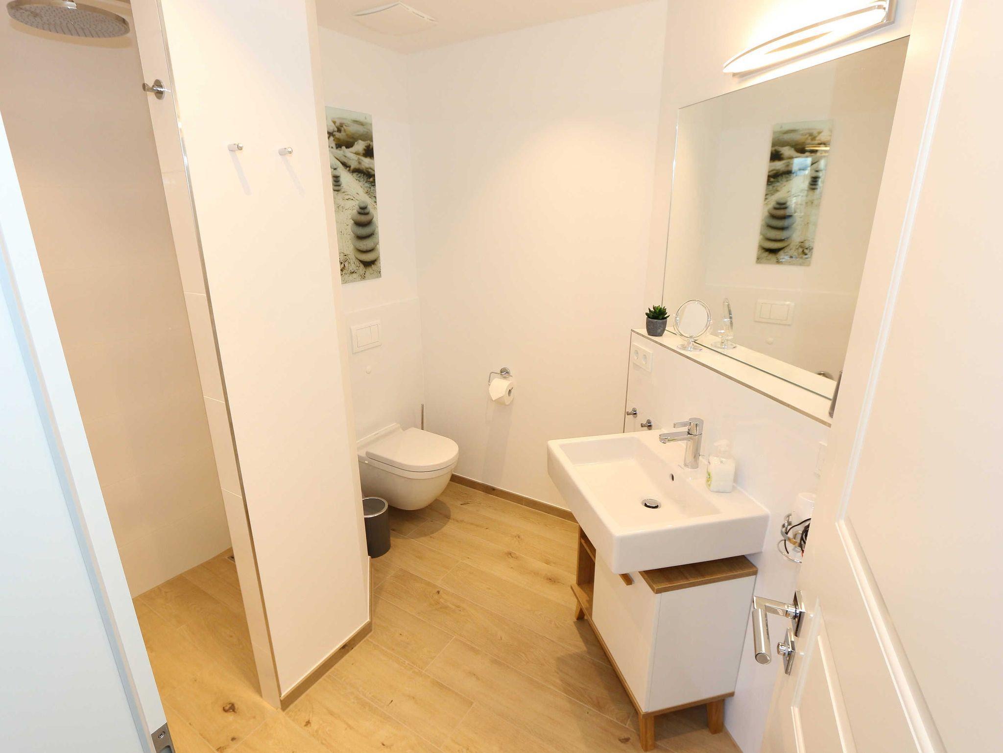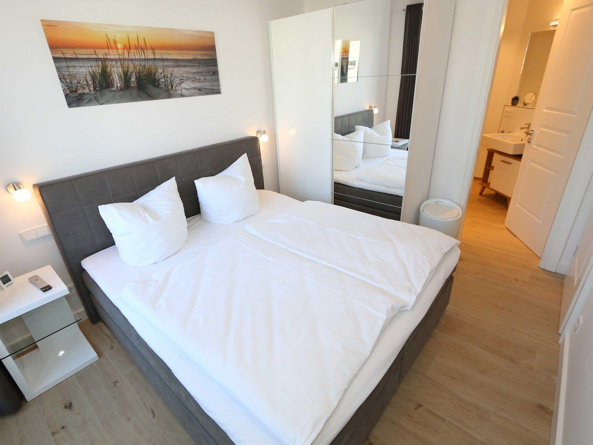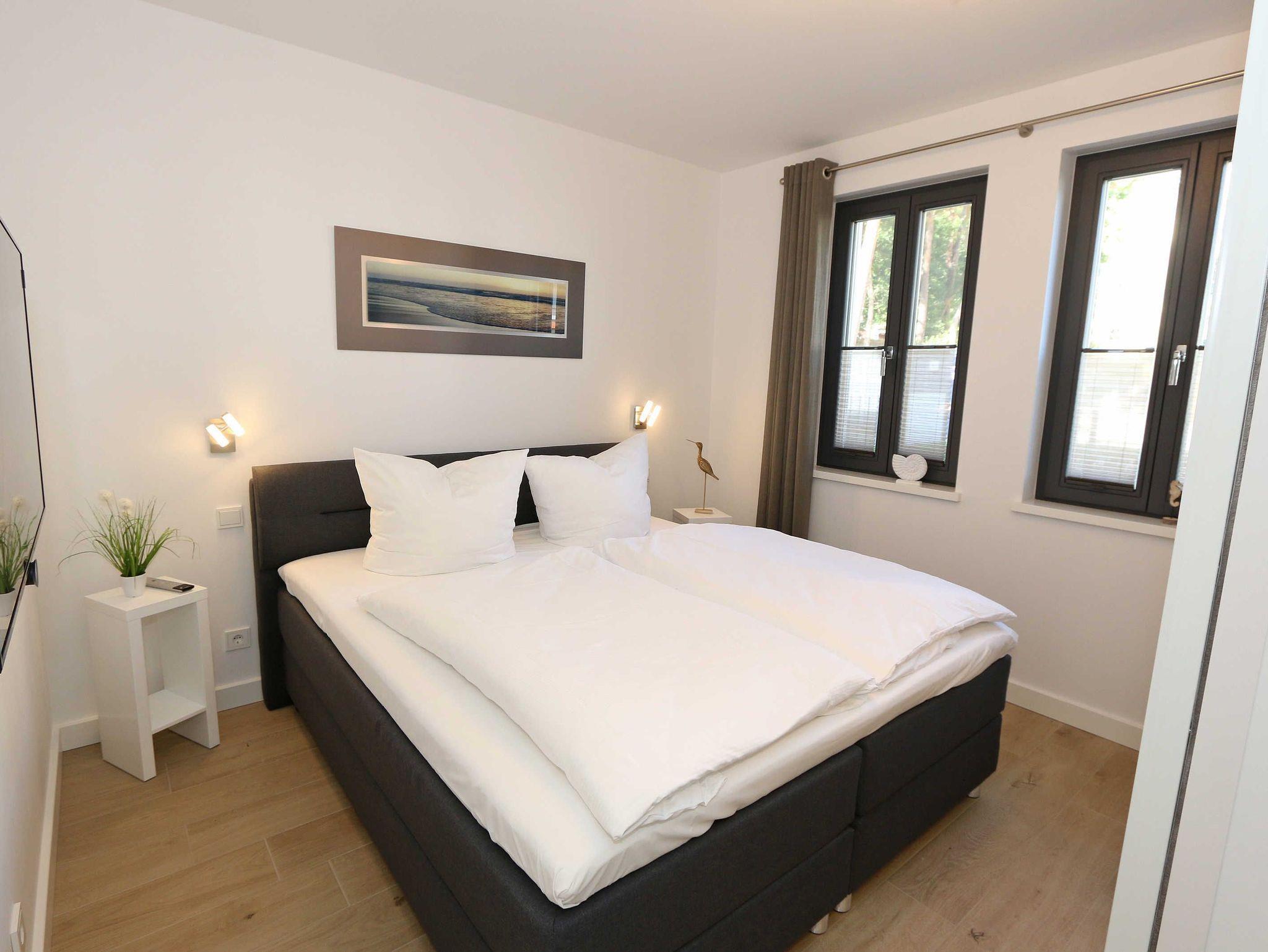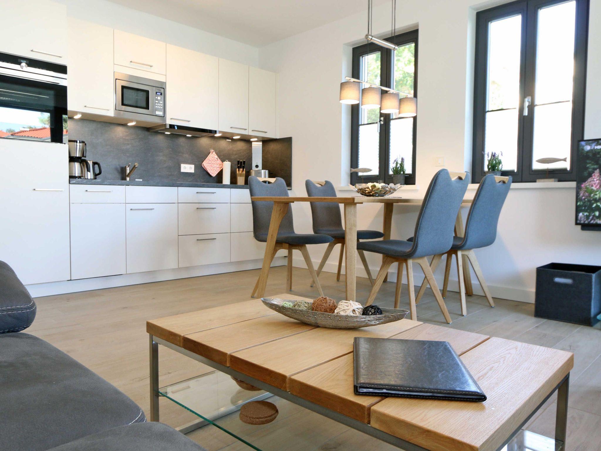 Die 68 m² große Nichtraucherwohnung ?Küstensegler? befindet sich im Erdgeschoss und wurde liebevoll für Sie ausgestattet. Sie bietet eine sehr schöne Raumaufteilung und hochwertige Ausstattung für einen erholsamen Urlaub für max. 2 bis 4 Erwachsenen. In der kalten Jahreszeit verteilt sich über die Fußbodenheizung eine wohlige Wärme in der Wohnung. Im freundlichen Wohn-/Esszimmer können Sie es sich auf der Couch mit Couchtisch, Leselampe und Sessel bequem machen. Ein 43 Zoll-Ultra HD Smart-TV, Blu-Ray Player und ein DAB-Radio mit CD-Player, Bluetooth und USB-Anschluss sorgen für Ihre Unterhaltung. Ein WLAN-Zugang steht selbstverständlich zur kostenfreien Nutzung für Sie bereit. Aber auch eine kleine Auswahl an Gesellschaftsspielen und Bücher steht Ihnen zur Verfügung. Der Esstisch für 4 Personen befindet sich neben der komfortabel gestalteten und umfangreich ausgestatteten Küchenzeile und lädt zum Verweilen ein. Ein Geschirrspüler, ein 4 Zonen-Ceranfeld, ein Backofen, ein Kühlschrank mit Gefrierfach, eine Mikrowelle, eine Kaffeemaschine mit Thermoskanne, eine Tassimo-Kapselmaschine, ein Toaster, ein Wasserkocher sowie ein Eierkocher komplettieren diese. Natürlich sind auch viele große und kleine Küchenutensilien vorhanden. Vom Wohnbereich gelangen Sie auf die überdachte und bestuhlte Terrasse (Osten) der Ihnen einen Blick auf den kleinen Kurpark von Baabe ermöglicht. Genießen Sie Ihr Frühstück in der Morgensonne oder ein gemütliches Glas Wein beim letzten Sonnenstrahl des Tages. Zudem kann ein eigener kleiner Gartenanteil (mit Abgrenzung durch Hecke/Zaun) von Ihnen genutzt werden. Beide Schlafzimmer sind mit bequemen Boxspringbetten (je 1,80m x 2,00m, mit durchgehende Topper, ein Schlafzimmer Härtegrad H2, das zweite Schlafzimmer Härtegrad H3), einem Nachttisch und Kleiderschrank für Ihre Urlaubsgarderobe ausgestattet. In beiden Schlafzimmern stehen Ihnen Full HD Smart-TV zur Verfügung. Das Aufstellen eines Reisebettes ist in den Schlafzimmern nicht möglich. Eines der beiden Schlafzimmer verfügt über ein eigenes Duschbad mit ebenerdiger Regendusche, Waschtisch, Ablage, WC, elektrischen Handtuchtrockner und einen Fön. Ein weiteres Duschbad mit ebenerdiger Regendusche, Waschbecken, Ablage, WC, elektrischem Handtuchtrockner, Kosmetikspiegel und Fön ist vom Flur erreichbar. Für einen erholsamen Schlaf sorgen die Außenjalousien, die in der ganzen Wohnung durchgängig vorhanden sind. In beiden Schlafräumen sowie im Essbereich befinden sich Insektenschutzgitter in einigen Fenstern. Ein Wäscheständer, ein Bügelbrett, ein Bügeleisen sowie ein Staubsauger stehen bei Bedarf zur Nutzung bereit. Über eine beheizbare Rampe erreichen Sie mit Ihrem PKW die Tiefgarage. Von Ihrem Tiefgaragenstellplatz (Nr.01, Einfahrtshöhe 2,00m) gelangen Sie bequem mit dem Aufzug zu Ihrer Ferienwohnung. Im Haus können Sie eine Waschmaschine und einen Trockner mit Münzautomaten nutzen. Eine münzbetriebene Sauna mit Duschbereich sowie kleinem Ruheraum befinden sich ebenfalls im Haus und laden zur Entspannung ein. Ihre mitgebrachten oder im Ort geliehenen Fahrräder können Sie im schön angelegten und eingezäunten Außenbereich im dafür vorgesehen Fahrradhaus (mit Steckdosen für E-Bikes) abstellen. Haustiere sind nicht erlaubt. Die Erstausstattung eines Wäschepaketes (komplette Bettwäsche, 1 Duschhandtuch, 2 kleine Handtücher) können Sie bis 14 Tage vor Anreise gegen einen Aufpreis dazu buchen oder durch eigene ergänzen. Ab 2 gebuchten Paketen erhalten Sie einmalig 1 Geschirrhandtuch und 1 Duschvorleger hinzu.