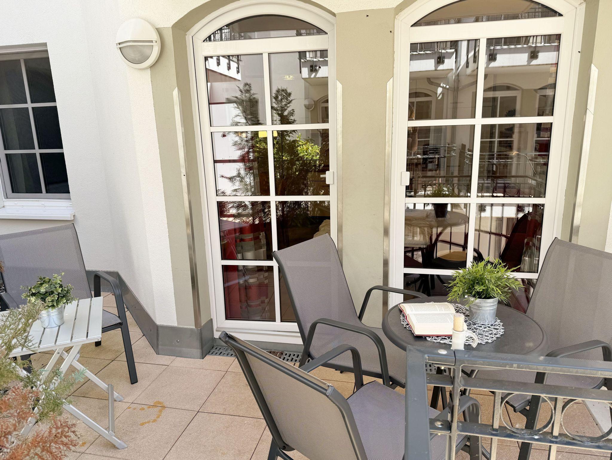Die Ferienwohnungen verfügen über einen hohen Komfort und lassen Ihren Urlaubstraum wahr werden. Im Haupthaus befindet sich ein Wellnessbereich mit Innenpool, Sauna und Ruheraum (inklusive) der zur Entspannung einlädt. Eine hauseigene Tiefgarage sorgt dafür, dass Ihr PKW sicher untergebracht ist. Cafés und Restaurants laden in der Anlage zum Verweilen ein. Ein weiteres Highlight ist der Müther Schalenbau (Restaurant Inselparadies Baabe), welches saniert, restauriert und in die Meeresblickanlage liebevoll integriert wurde. Von hier aus haben Sie einen fantastischen Blick auf die weite Ostsee. Die Wohnung Nautica (A1.10) befindet sich im Haupthaus A im 1. Obergeschoss und verfügt über einen Innenhofbalkon.