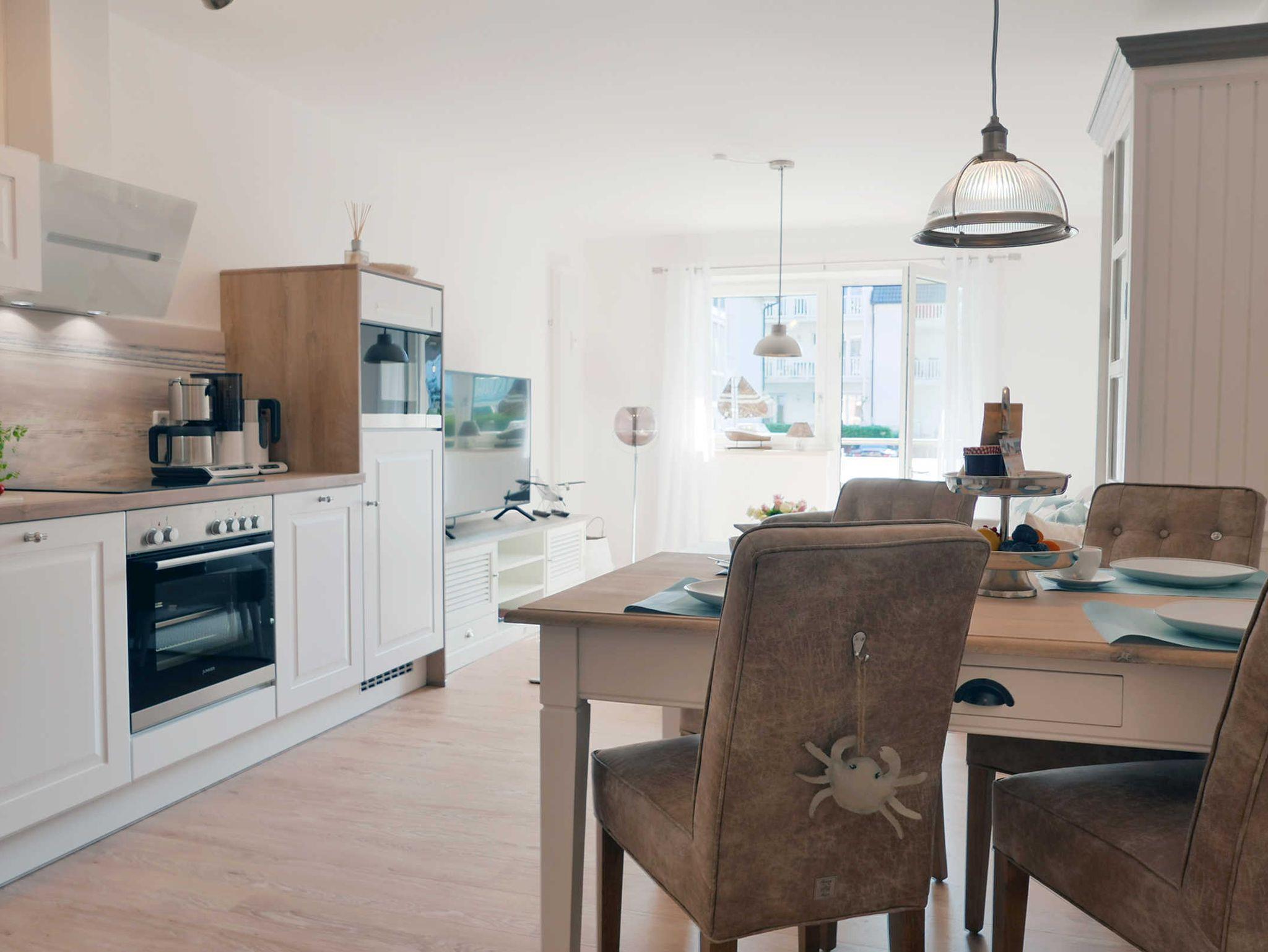 Hochwertige, frisch renovierte 2-Zimmer-Ferienwohnung für 4 Personen, eingerichtet mit viel Liebe zum Detail im maritimen Flair. In dem Haus befinden sich ein Fitnessbereich und eine Saunalandschaft. Aufzug, WLAN, und ein Parkplatz sind ebenfalls vorhanden.