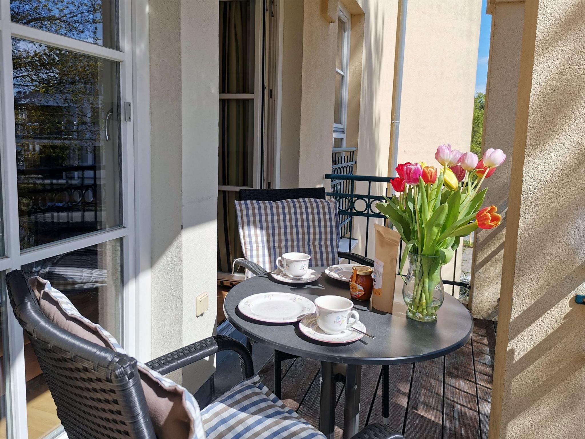Helle und freundliche 2-Zimmer-Ferienwohnung für 3 Personen unweit des langen Sandstrandes in idealer Lage. In dem Wohnzimmer befindet sich sowohl ein Essbereich als auch ein Sofabereich mit kleinem Tisch und Flachbildfernseher. Das Sofa verfügt über eine Schlaffunktion, sodass hier eine Person bequem nächtigen kann. Eine Minibibliothek, ein DVD-Player und ein Mini-Stereo-System sind ebenfalls vorhanden. Die integrierte Küchenzeile ist modern ausgestattet mit Kühlschrank, Geschirrspülmaschine, Wasserkocher und Kaffeemaschine. Das Schlafzimmer ist ausgestattet mit einem Doppelbett und einem weiteren Flachbildfernseher. Vom Balkon haben Sie einen herrlichen Blick ins Grüne und können gleichzeitig das Meeresrauschen genießen.