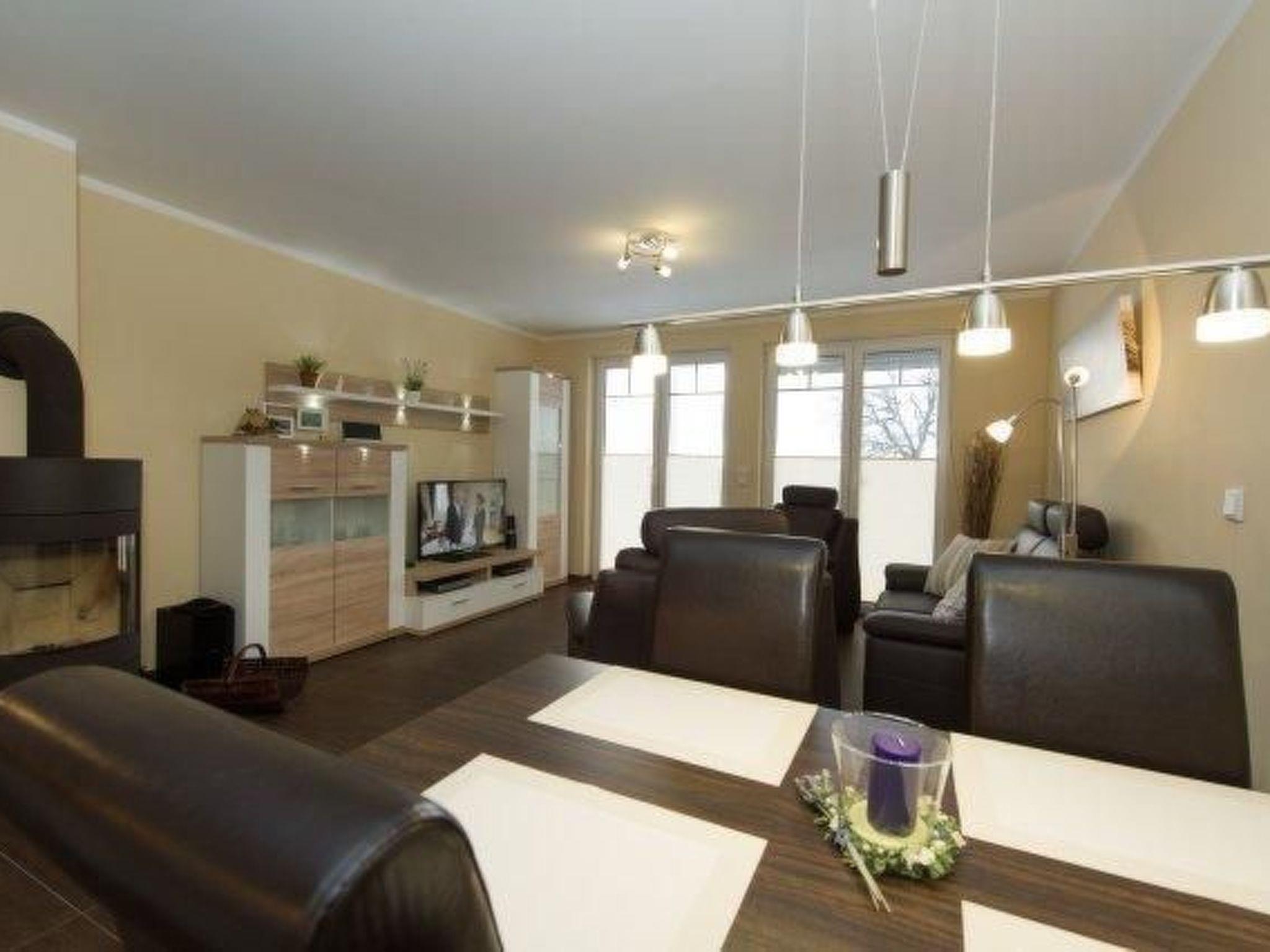 The spacious 3-room flat is modern and furnished to a high standard and has a terrace with a wonderful view of the Göhrener Südstrand.bicycles can be parked outside the house in a bicycle shed.one free parking space per flat is available to each guest directly at the house. Free W-LAN available in the flat. Living space: 82 m² 3-room flat Large entrance area with cloakroom and shoe cupboard. Spacious living area with leather suite and coffee table, sideboard with large flat-screen TV and CD radio system, dining table with 4 chairs and fireplace. Fitted kitchen integrated into the living room, equipped with: 4-ring ceramic hob, large oven, extractor bonnet, microwave, large fridge with freezer compartment, dishwasher, toaster, coffee machine, kettle, egg boiler and high-quality kitchen utensils. 2 bedrooms, each with a double bed (180 x 200 cm) and large wardrobe and flat-screen TV. 1 bathroom with large walk-in shower, WC and hairdryer. 1 terrace with garden furniture. Iron and ironing board available. The entire flat is equipped with underfloor heating. Non-smoking! (Smoking is allowed on the terrace).