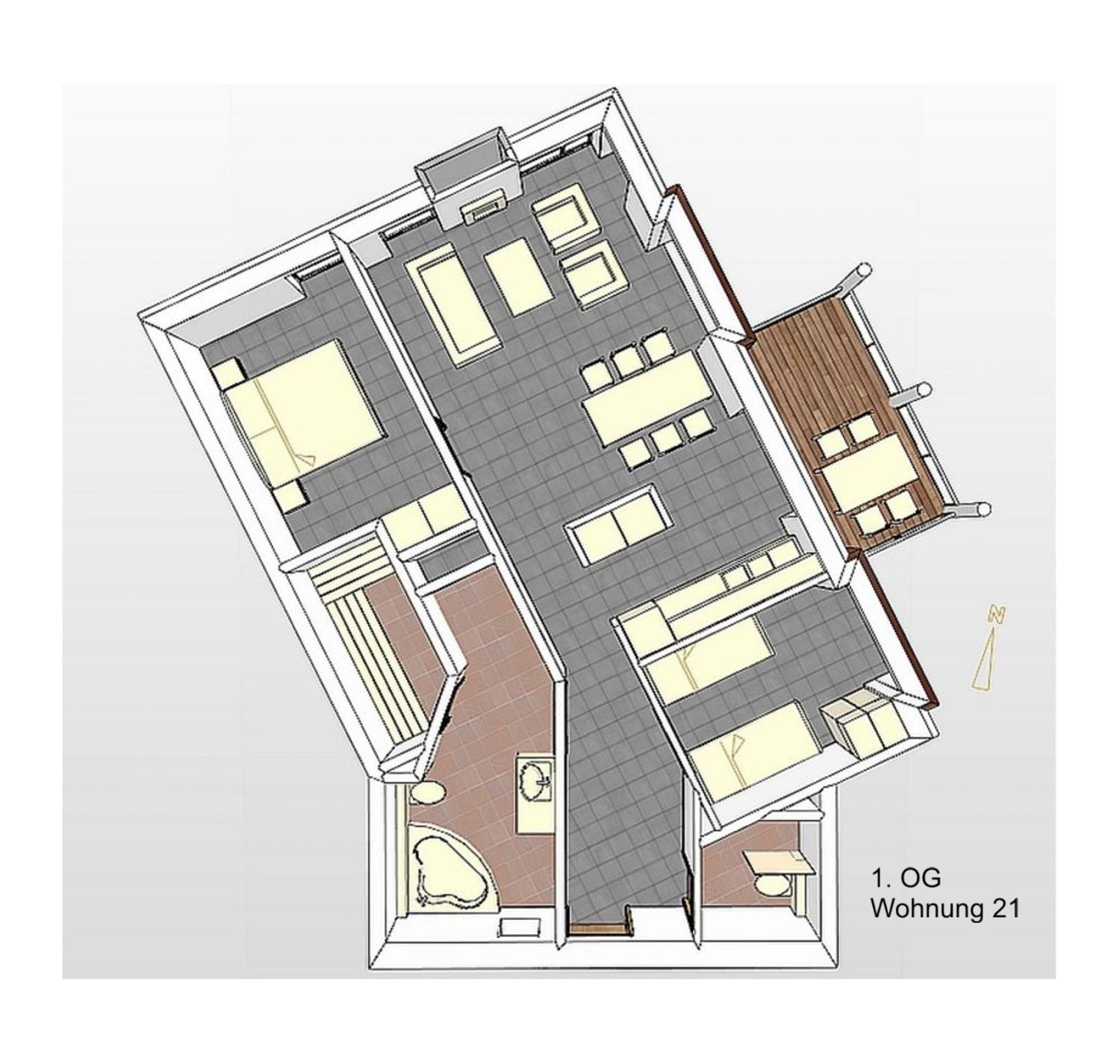 Nach einem erlebnisreichen Urlaubstag können Sie sich komplett in unserem Wellnessbad mit Bio-Sauna, Eckbadewanne und Dusche erholen. Lassen Sie einfach die Seele baumeln und vergessen Sie den Alltag. Ein zusätzliches Bad mit Dusche und WC ist ebenfalls vorhanden.
