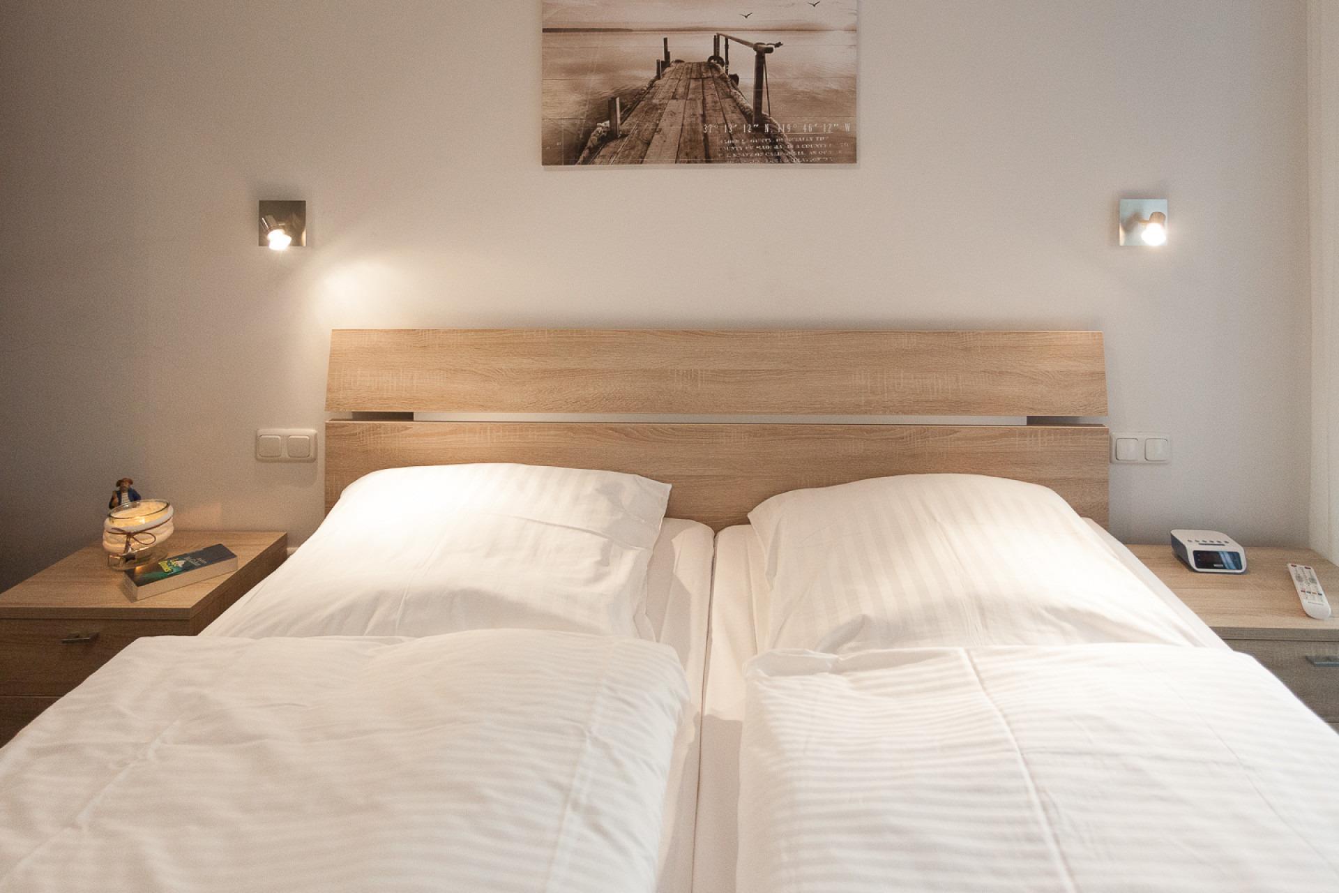 Die Wohnung ist für 4 Personen geeignet und beinhaltet zwei Schlafzimmer - jeweils mit einem Doppelbett ausgestattet -, ein Vollbad und ein zusätzliches Duschbad.