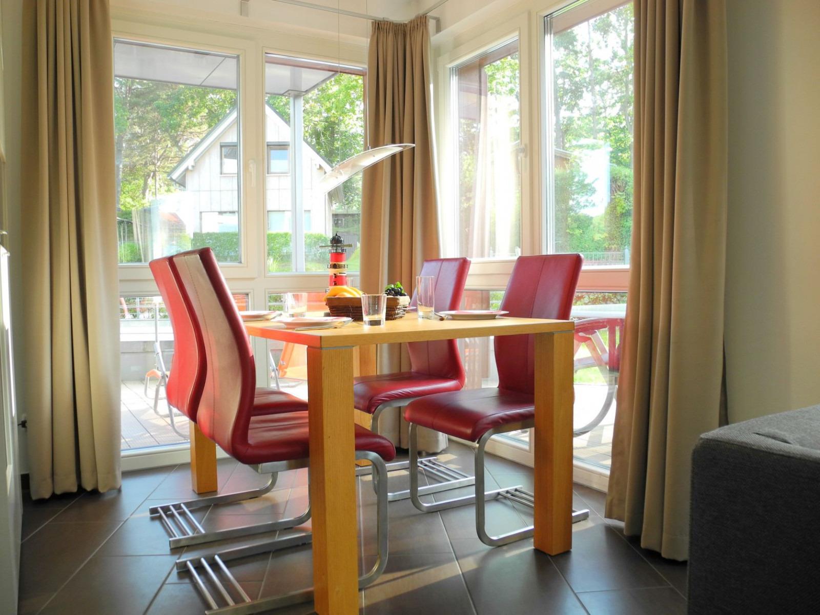 Unsere wunderbare, modern eingerichtete Ferienwohnung Strandvilla Baabe 15 befindet sich im Erdgeschoss. Der feine Sandstrand ist in wenigen Schritten erreicht.