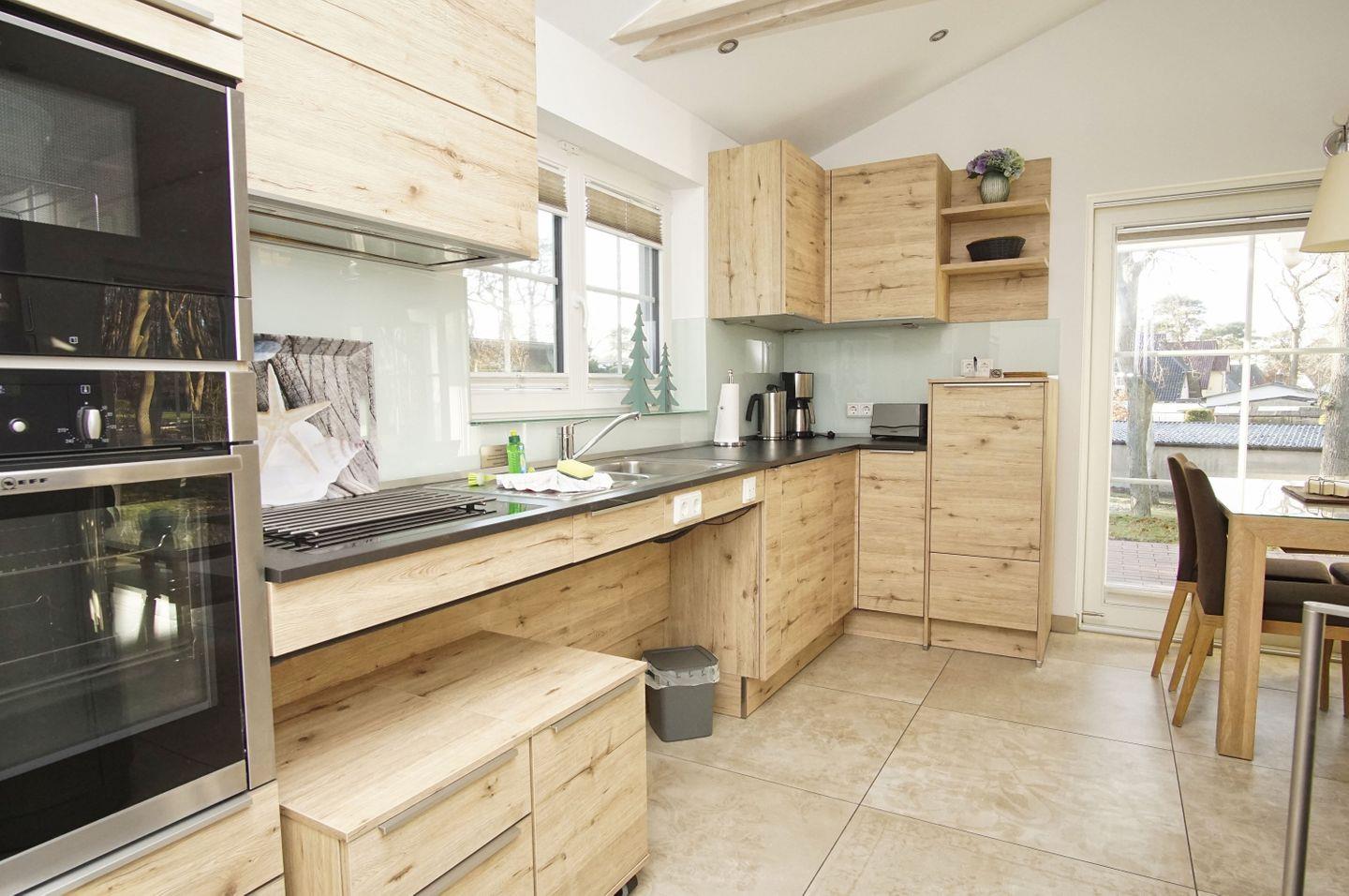 KÜCHE // offene Küche zum Wohnzimmer, Induktionsfeld, Spülmaschine, Kühlschrank mit Gefrierfach, Mikrowelle, Kaffeemaschine, Toaster, Wasserkocher, reichlich Besteck sowie Geschirr und diverse Küchenutensilien ++
