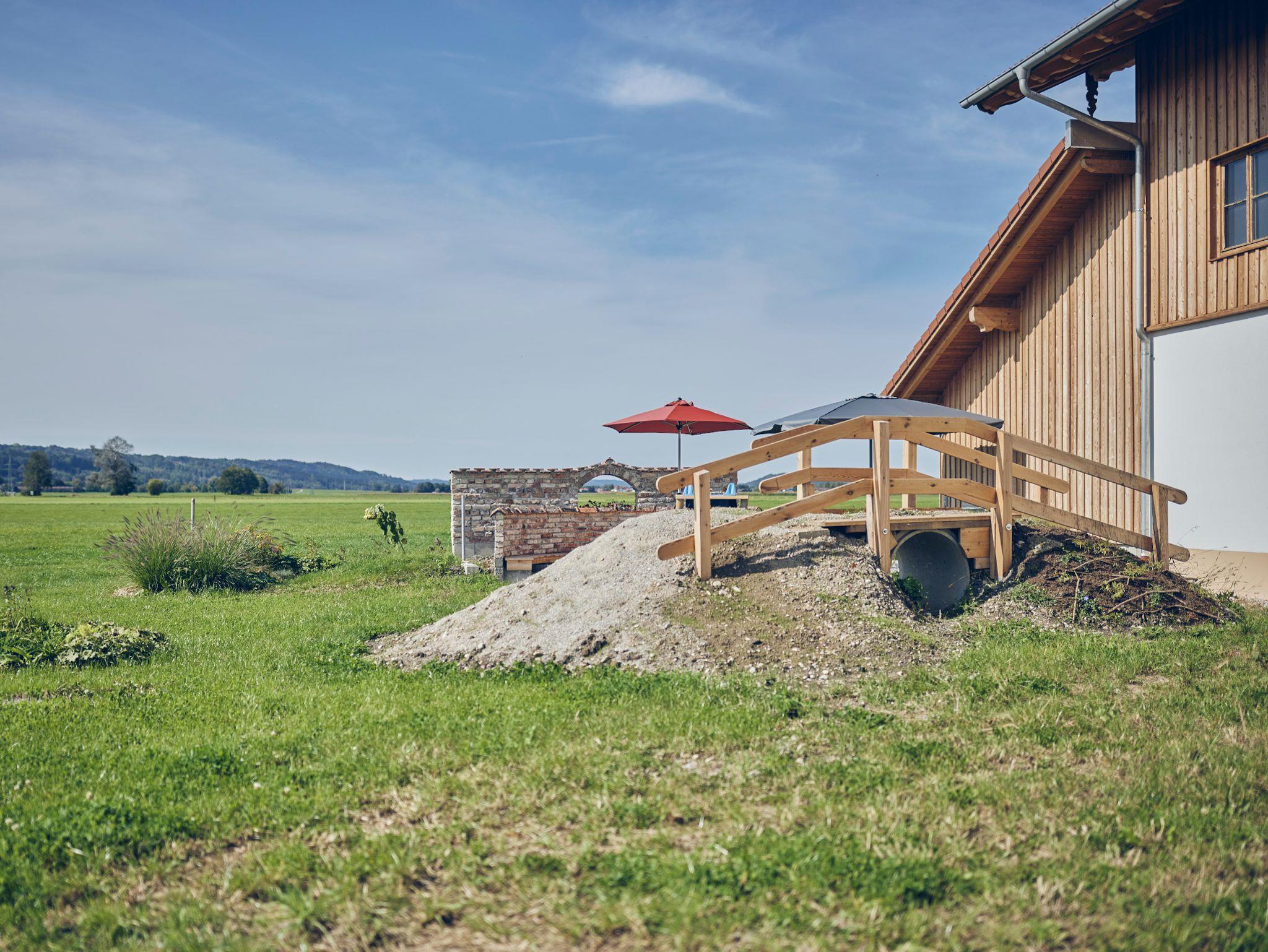 Im neu gebauten Bauernhaus im zweiten Obergeschoss erwarten Sie 2 großzügig angelegte Ferienwohnungen mit 2 Schlafzimmern und Wohnküche und Bad. Die Wohnungen verfügen über einen eigenen Balkon und einen Garten mit Grillplatz, Sitzplatz, Liegen und Spielplatz. Wir bieten einen verschließbaren Abstellraum für Ihre mitgebrachten Räder oder Sportgeräte.