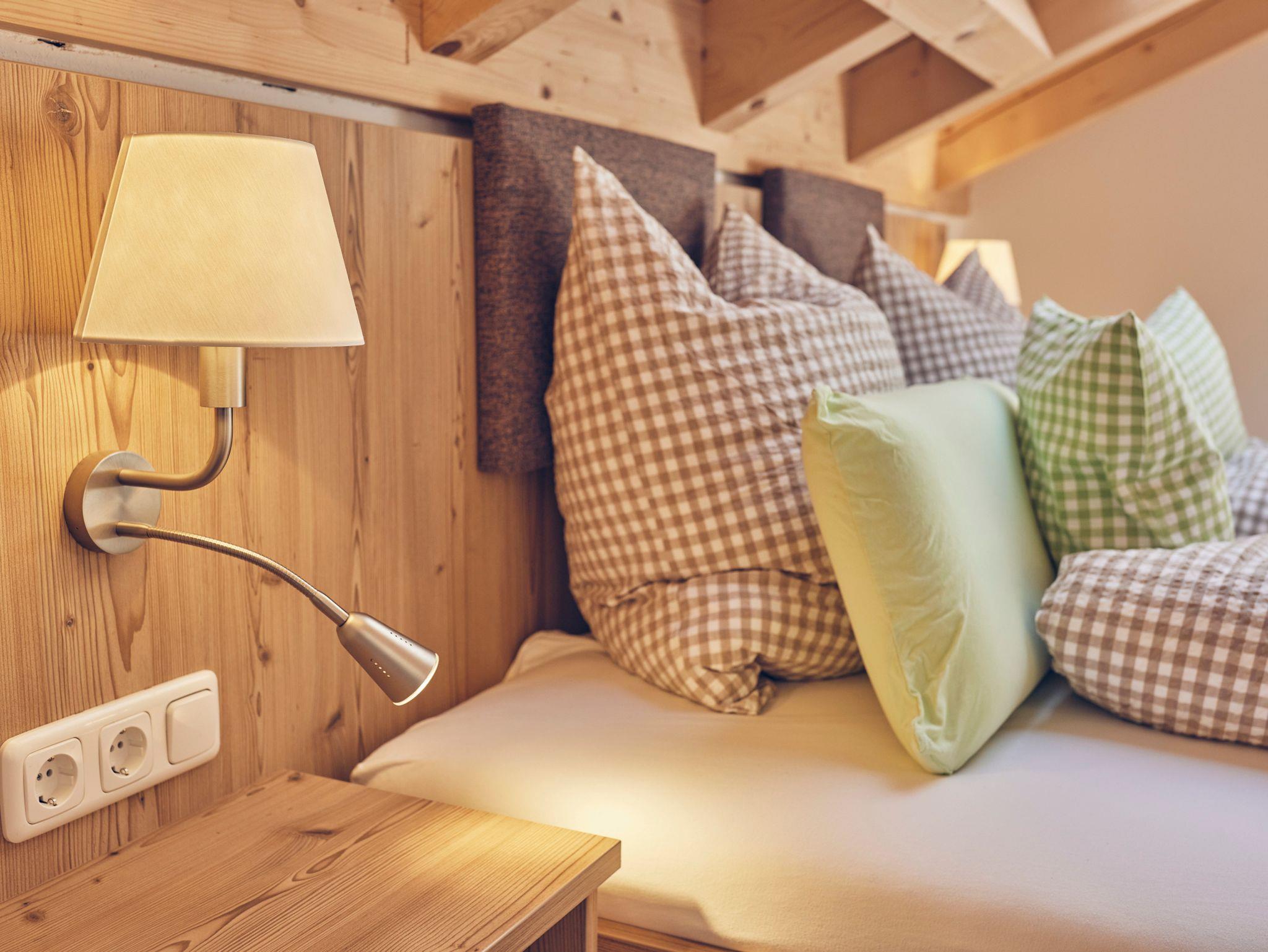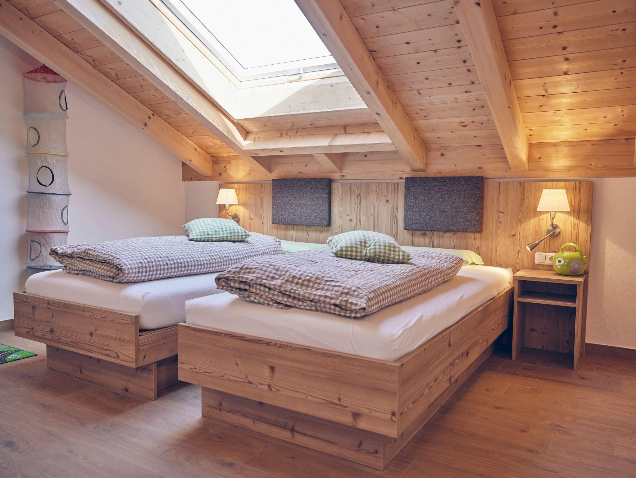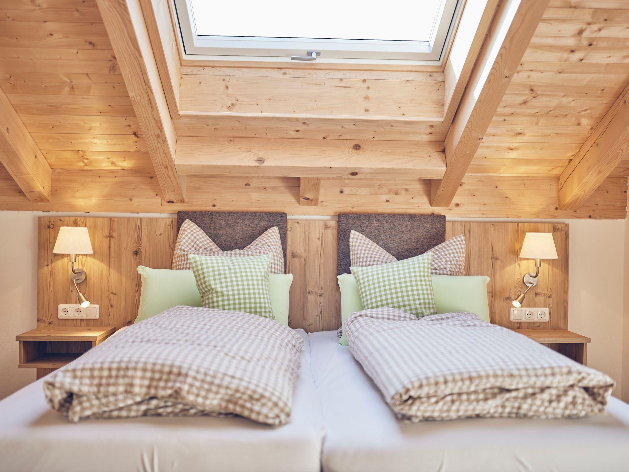 Die Ferienwohnung Linde ist 85m² groß. Der 7m² große Balkon mit Sitzgelegenheit gibt den unverbauten Blick nach Süden auf die Bergkette frei. Die Wohnung ist für 2 – 4 Personen geeignet. Die 46 m² große Wohnküche mit sichtbarem Dachstuhl ist vollständig ausgestattet. Zwei gemütliche Sofas und Essecke bieten viel Platz. Im Elternschlafzimmer mit begehbarem Schrank schlafen Sie im Doppelbett mit 2 x 2 m unter dem Sternenhimmel. Das Dachfenster verfügt über elektrische Rollos. Eine begehbare Dusche, Handtücher und Fön statten das Bad aus. Die Kinder schlafen in Einzelbetten mit 1 x 2 m auch unter dem Sternenhimmel mit Betthimmel. Die Ferienwohnung ist nach unserem Hausbaum benannt.
