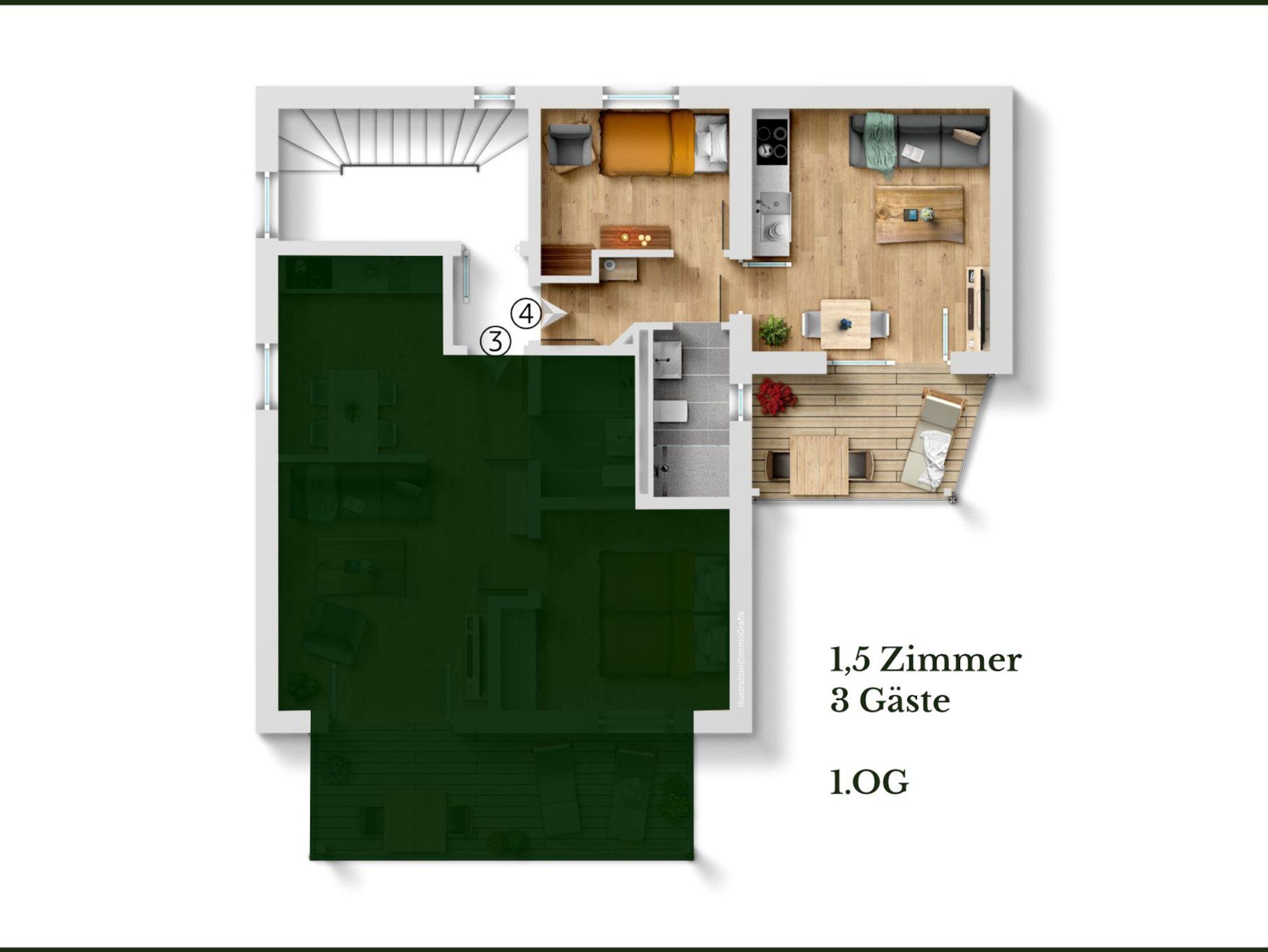 Kurpark Suites Bad Aibling, Suite 2 - Erdgeschoss mit Balkon