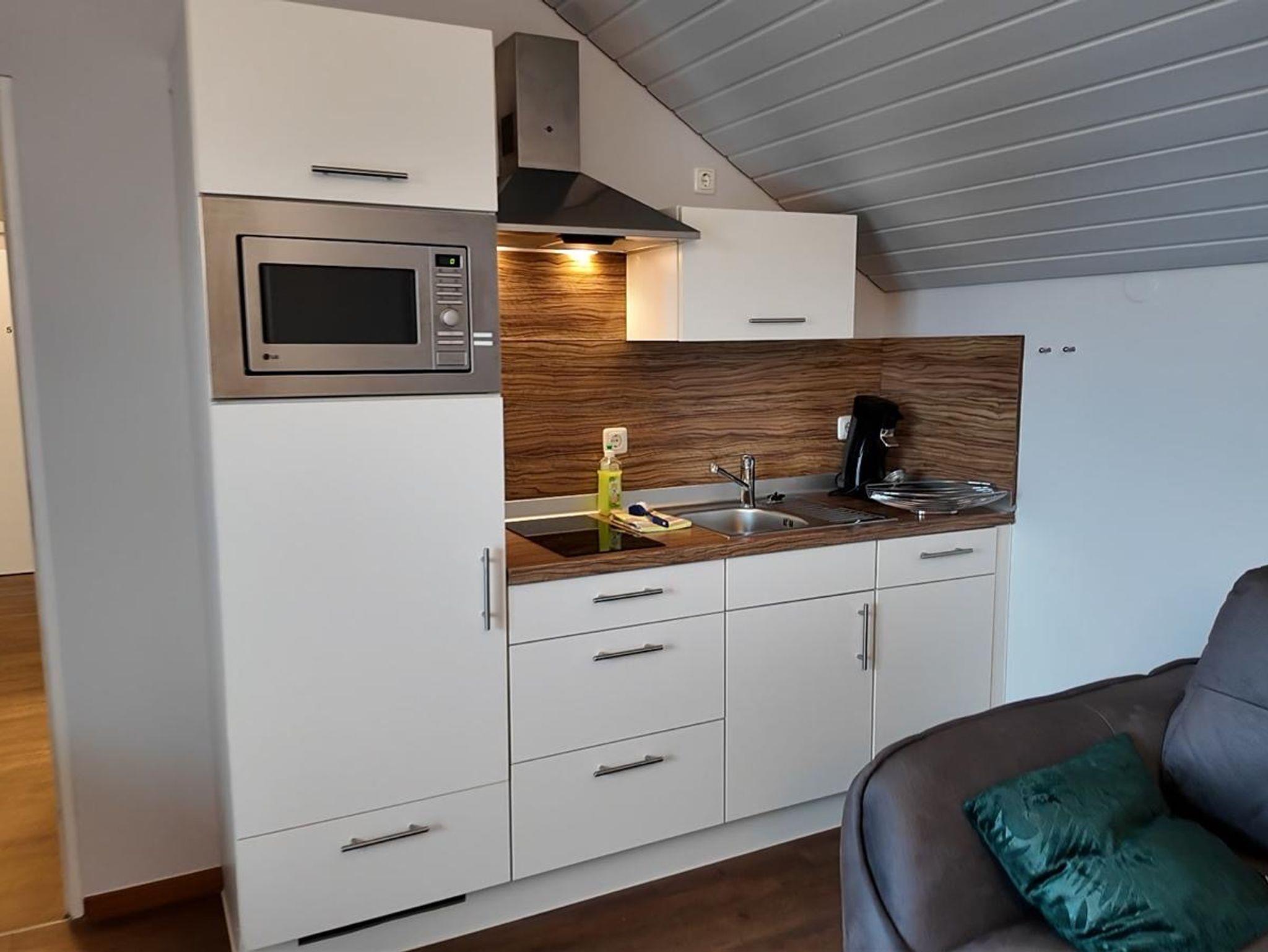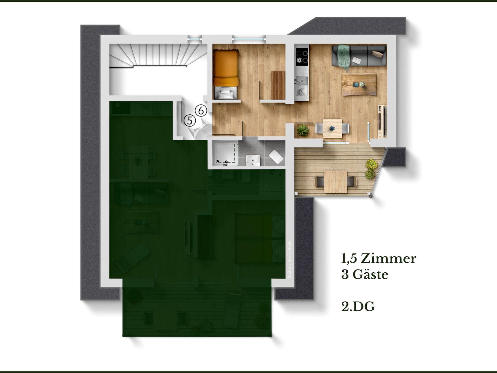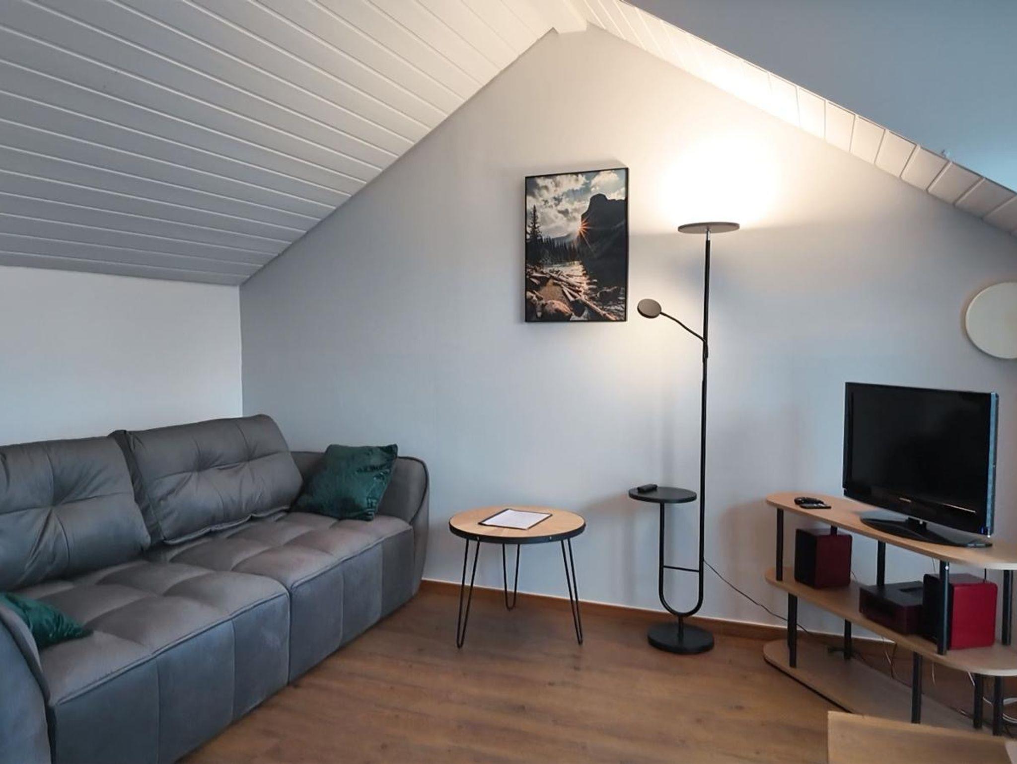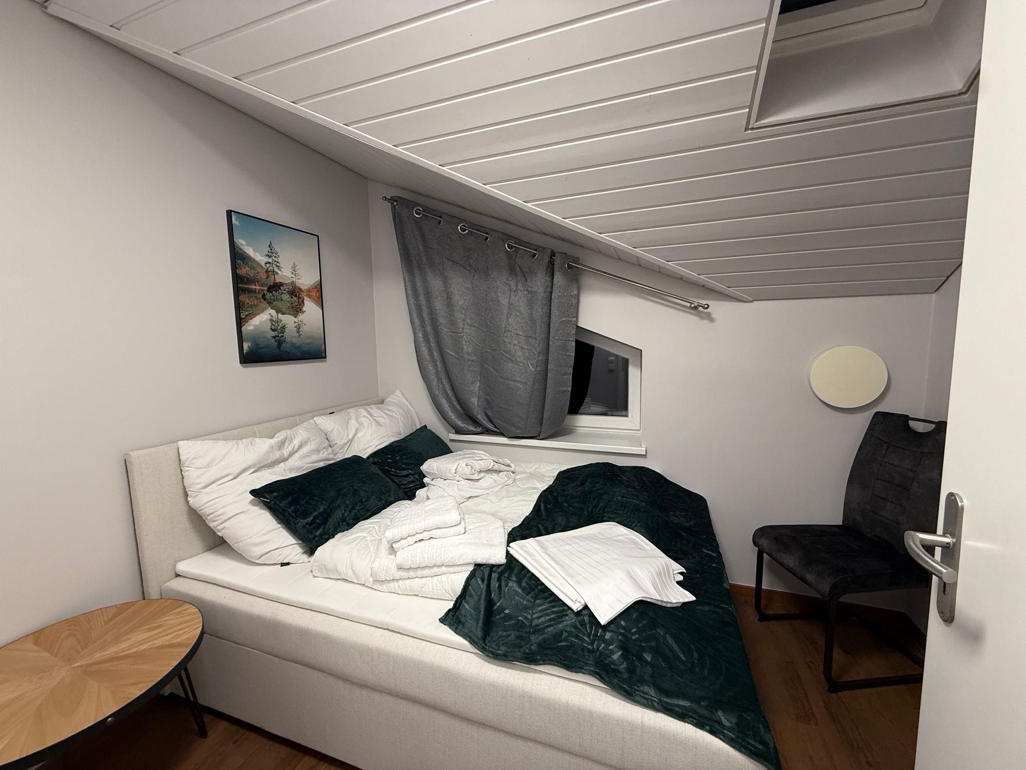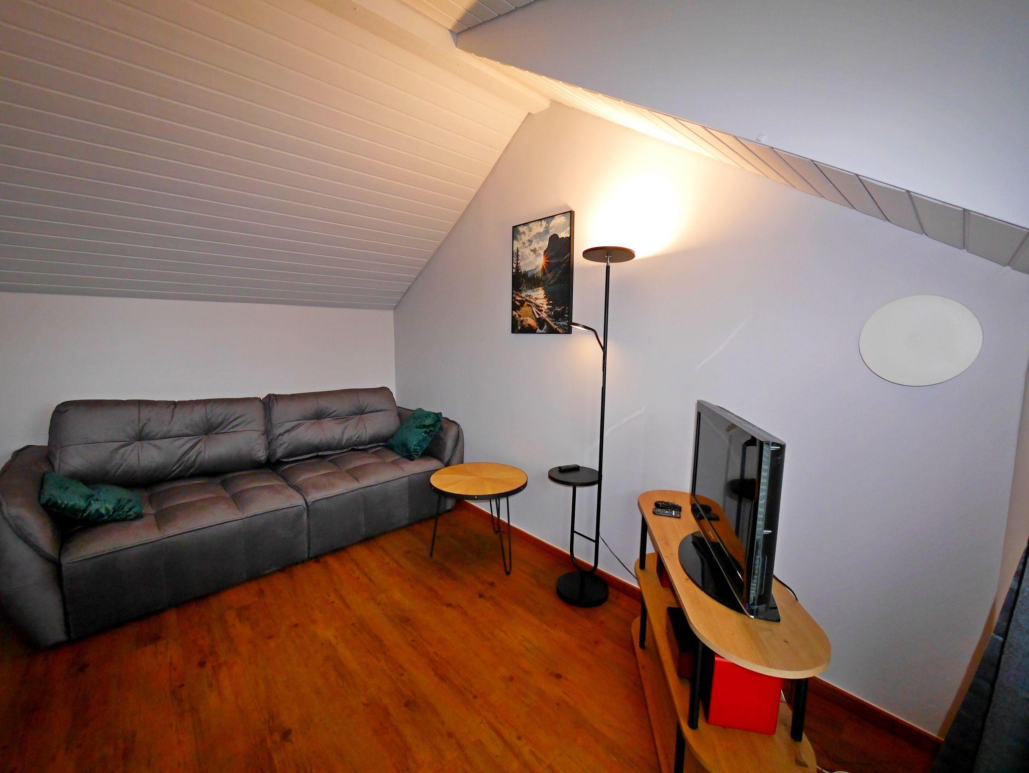 Diese komplett möblierte 1,5-Zimmer-Ferienwohnung im Dachgeschoss bietet Platz für bis zu drei Personen und eignet sich ideal für Singles oder Gäste, die getrennt schlafen möchten.