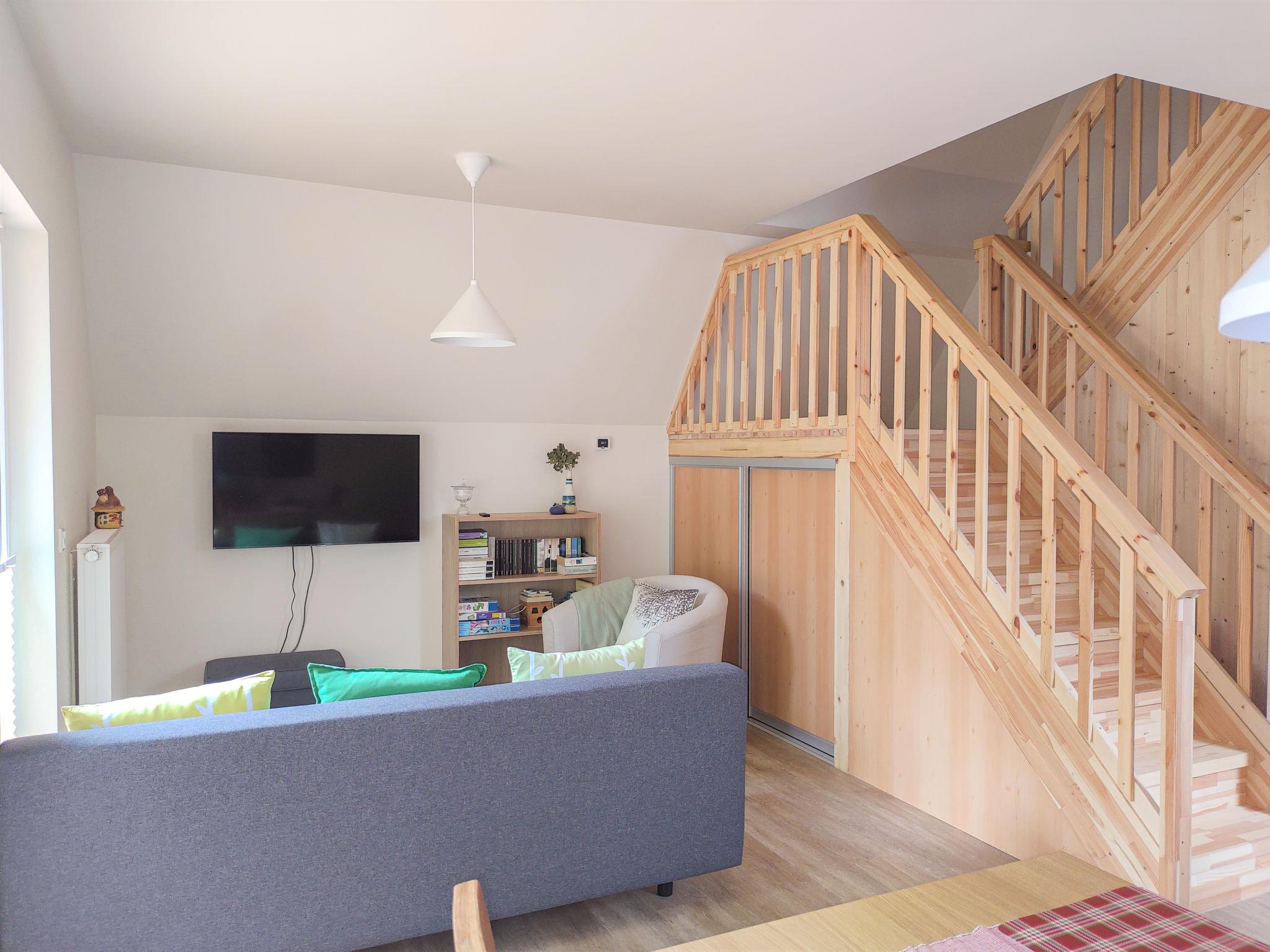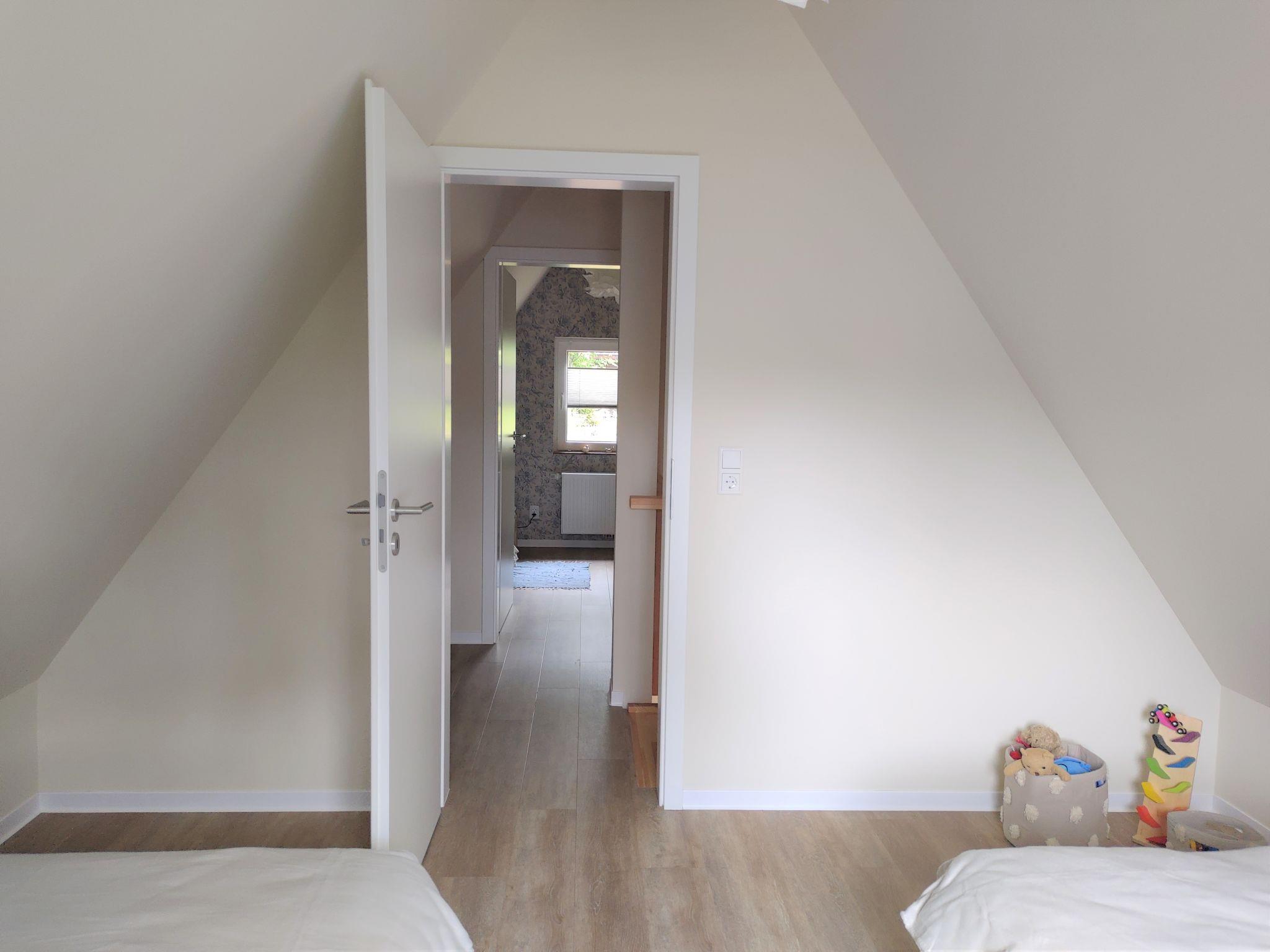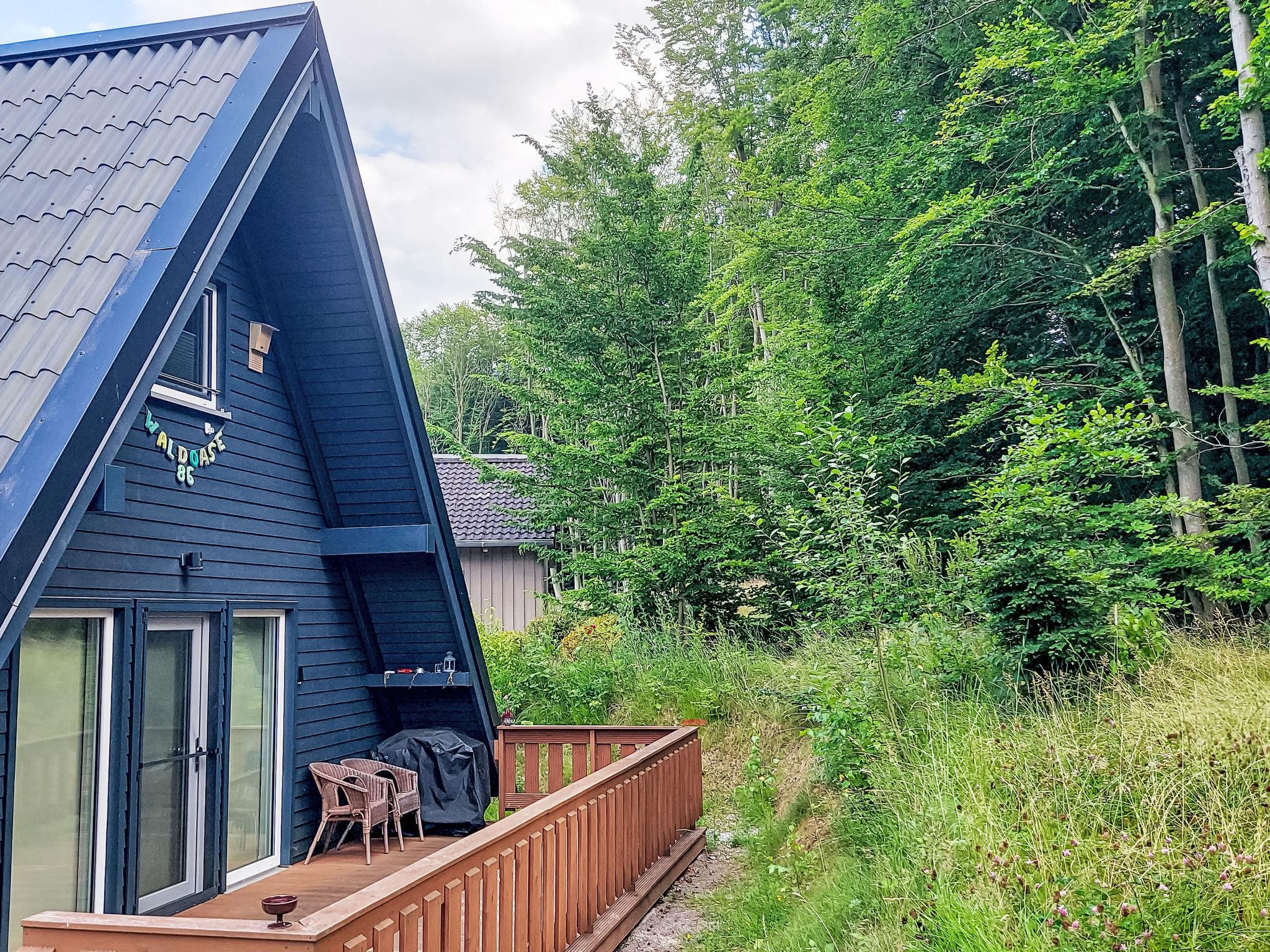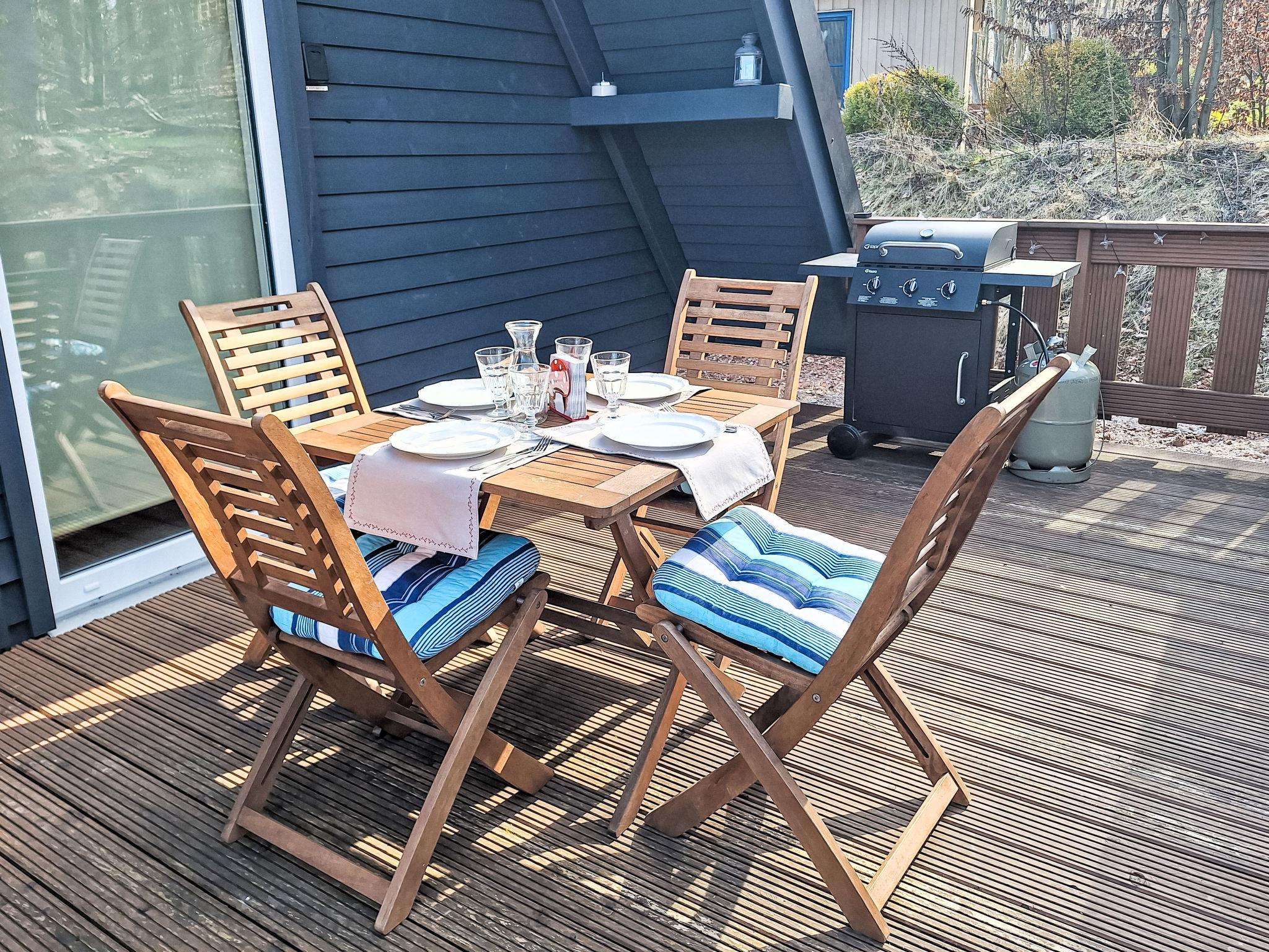 "Waldoase", 4-room house 75 m2 on 2 levels. Bright, modern and cosy furnishings: living/dining room with cable TV and flat screen. Exit to the terrace. 1 room with 1 double bed (160 cm, length 200 cm). Open kitchen (dishwasher, 4 induction hot plates, toaster, kettle, microwave, freezer, electric coffee machine). Shower/WC. Upper floor: 1 room with 2 beds (90 cm, length 200 cm). 1 room with 2 beds (90 cm, length 200 cm). Gas heating. Large terrace 23 m2. Terrace furniture, barbecue, deck chairs (2). Facilities: washing machine, children's high chair, baby cot, hair dryer. Internet (WiFi, free). Please note: non-smoking house.
