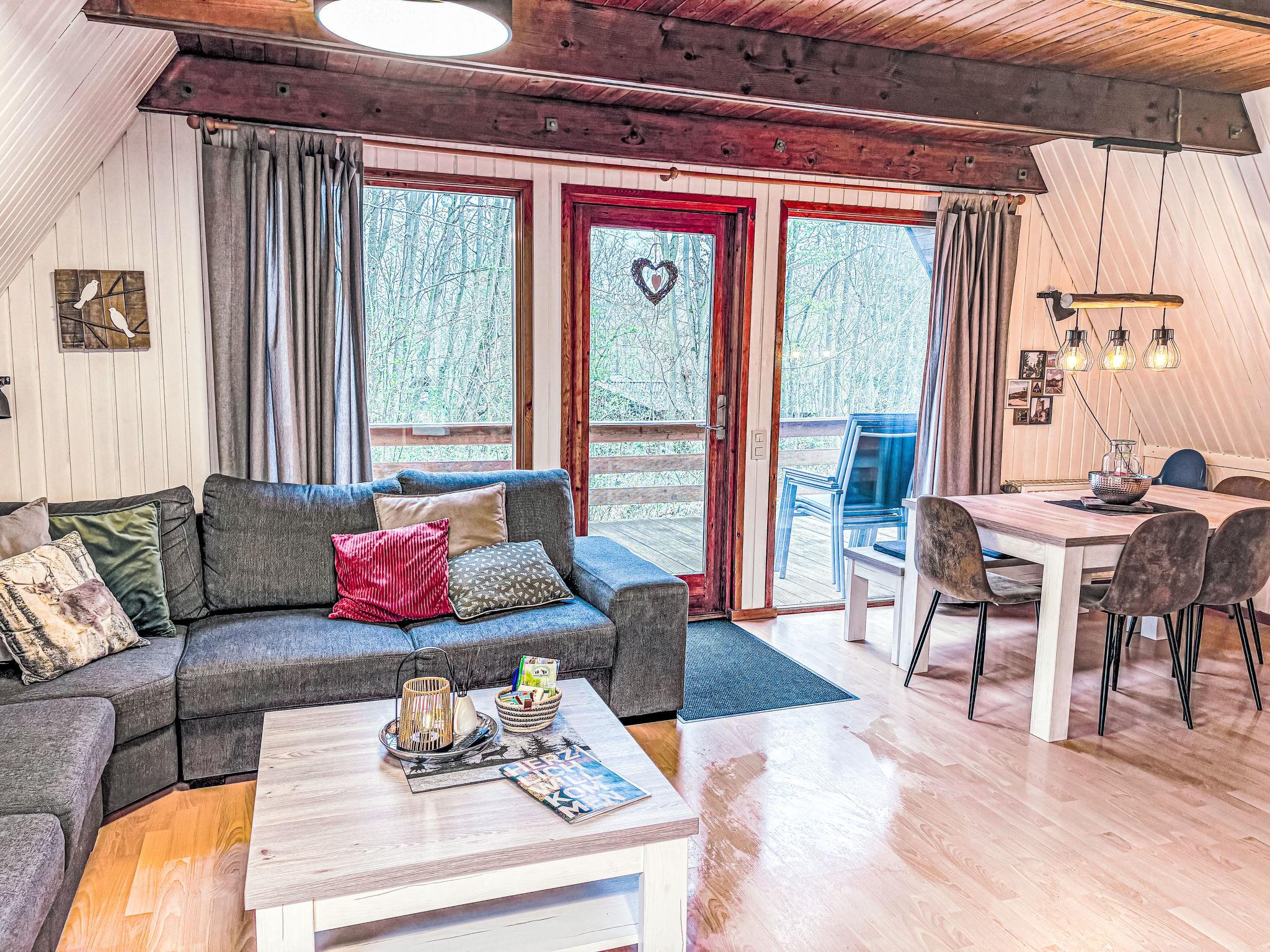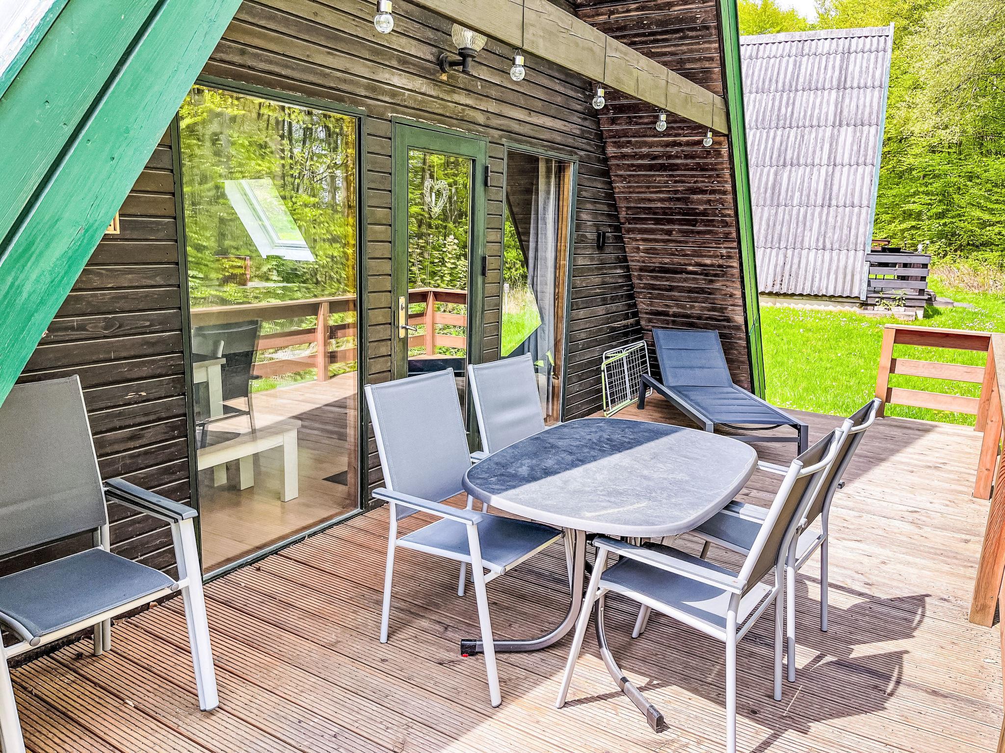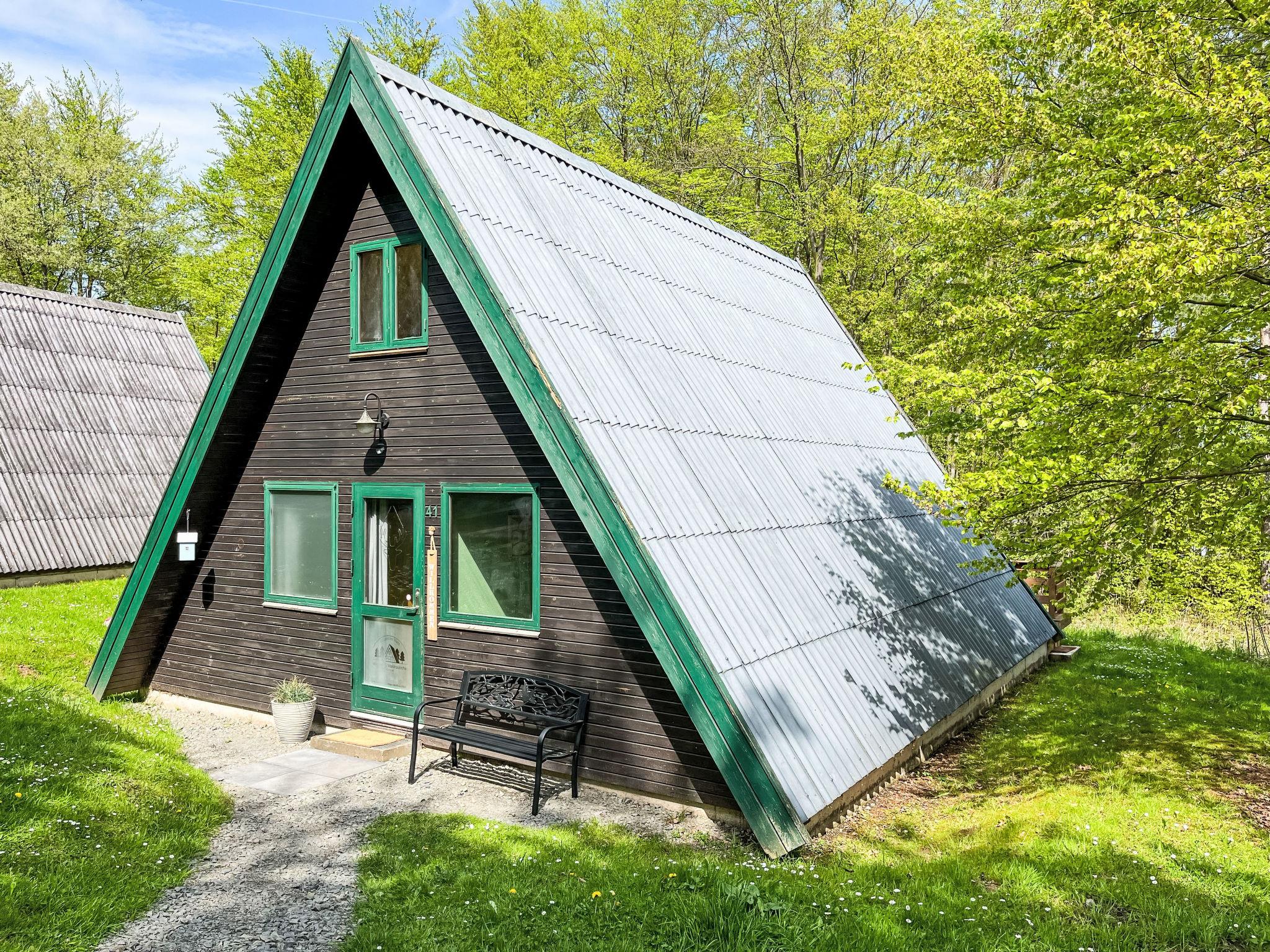 Ferienpark Twistesee 4 km from Bad Arolsen: Cosy timber house "Waldrauschen". 100 houses in the resort. In the district of Wetterburg, 400 m from the lake, in the woods. For shared use: property 33 ha, trees, meadow. Children's playground. Central parking spaces. E-charging station. Supermarket 4 km, restaurant 800 m, bus stop 4 km, railway station 4 km, sandy beach 300 m, outdoor swimming pool 4 km, indoor swimming pool 4 km. Minigolf, fishing possibilities 300 m. Please note: car-free holiday complex. Loading and unloading of baggage is possible at the holiday house.