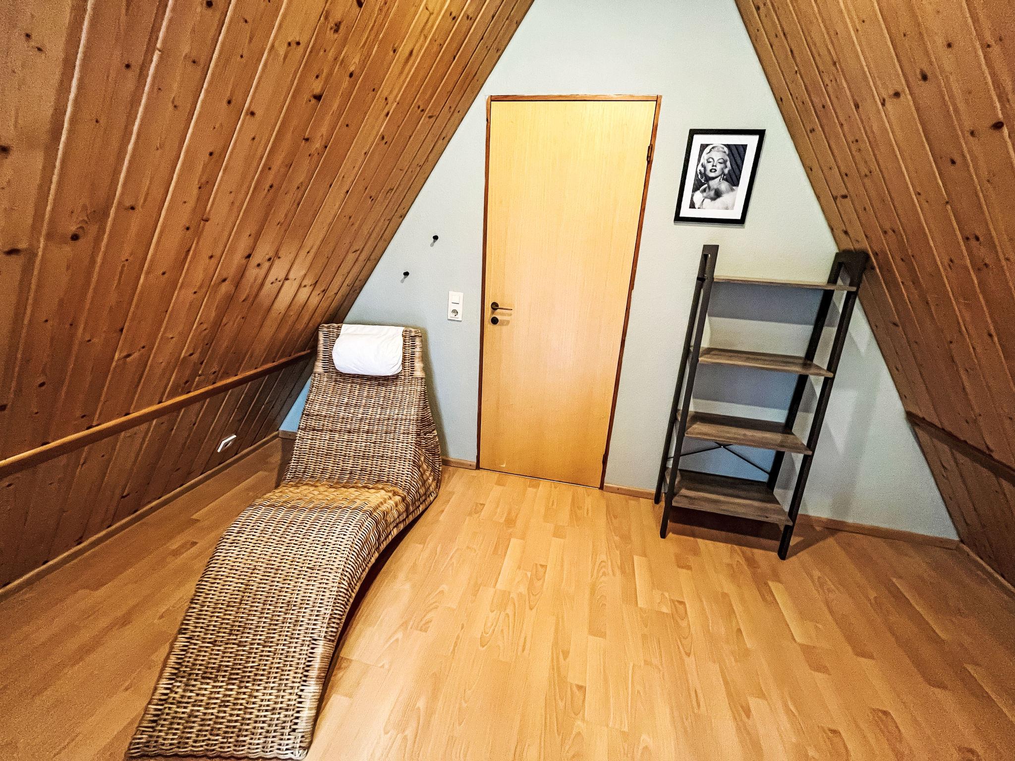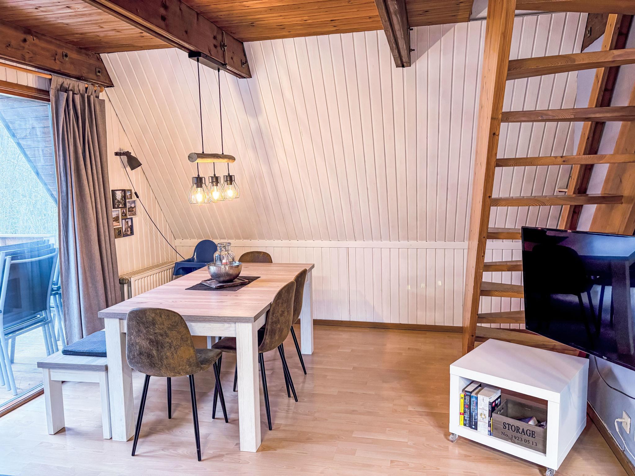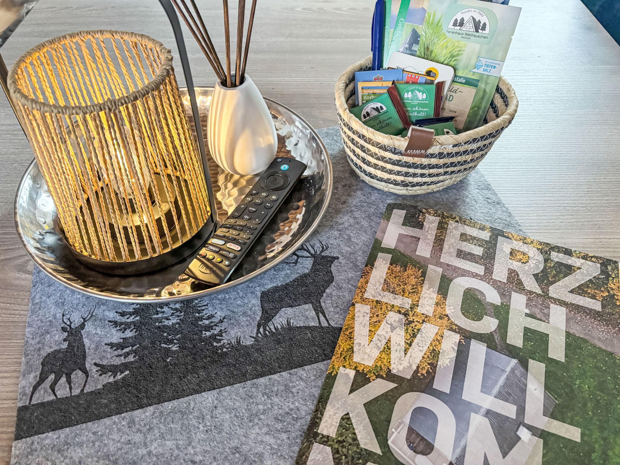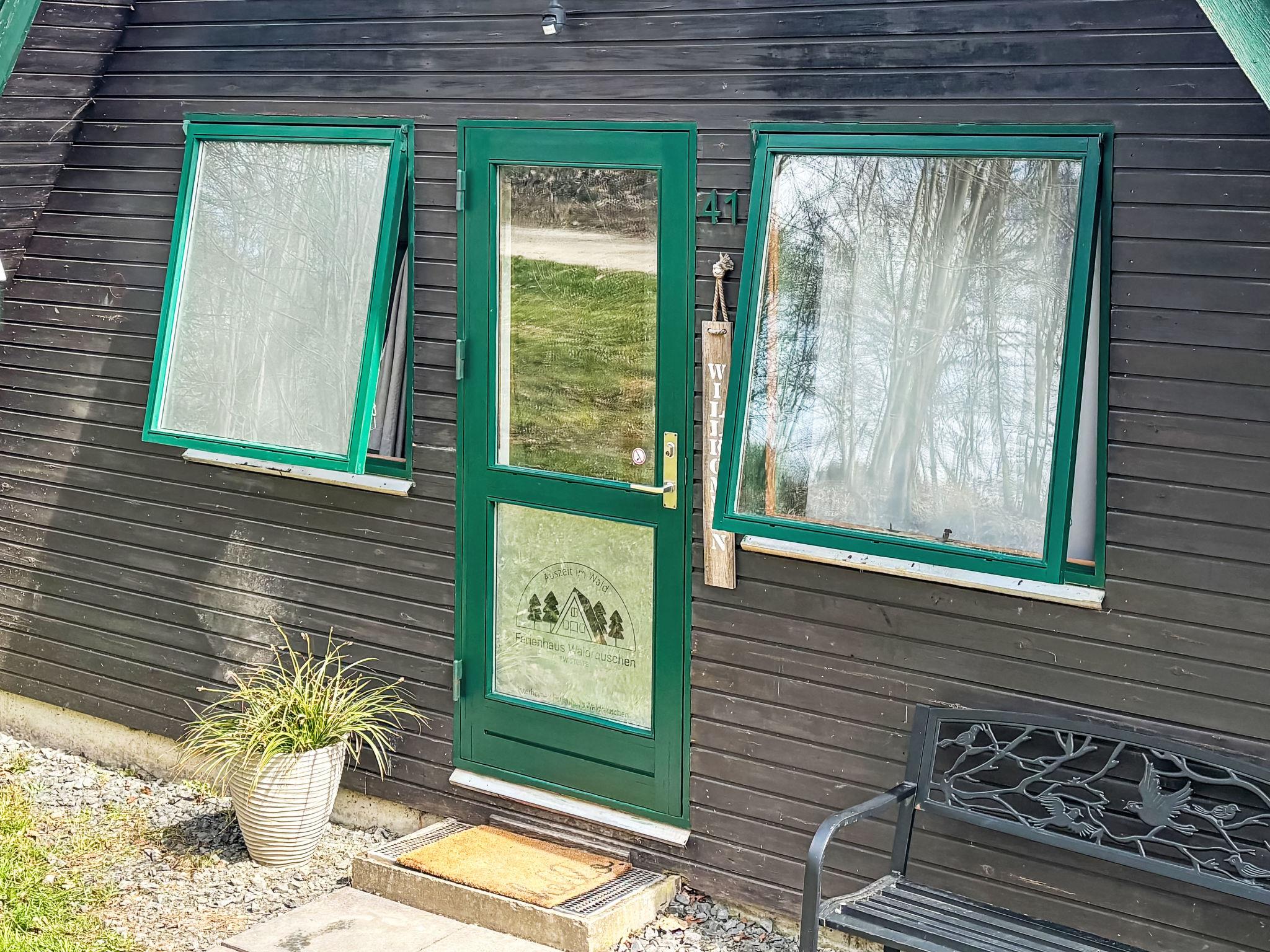 Ferienpark Twistesee 4 km from Bad Arolsen: Cosy timber house "Waldrauschen". 100 houses in the resort. In the district of Wetterburg, 400 m from the lake, in the woods. For shared use: property 33 ha, trees, meadow. Children's playground. Central parking spaces. E-charging station. Supermarket 4 km, restaurant 800 m, bus stop 4 km, railway station 4 km, sandy beach 300 m, outdoor swimming pool 4 km, indoor swimming pool 4 km. Minigolf, fishing possibilities 300 m. Please note: car-free holiday complex. Loading and unloading of baggage is possible at the holiday house.