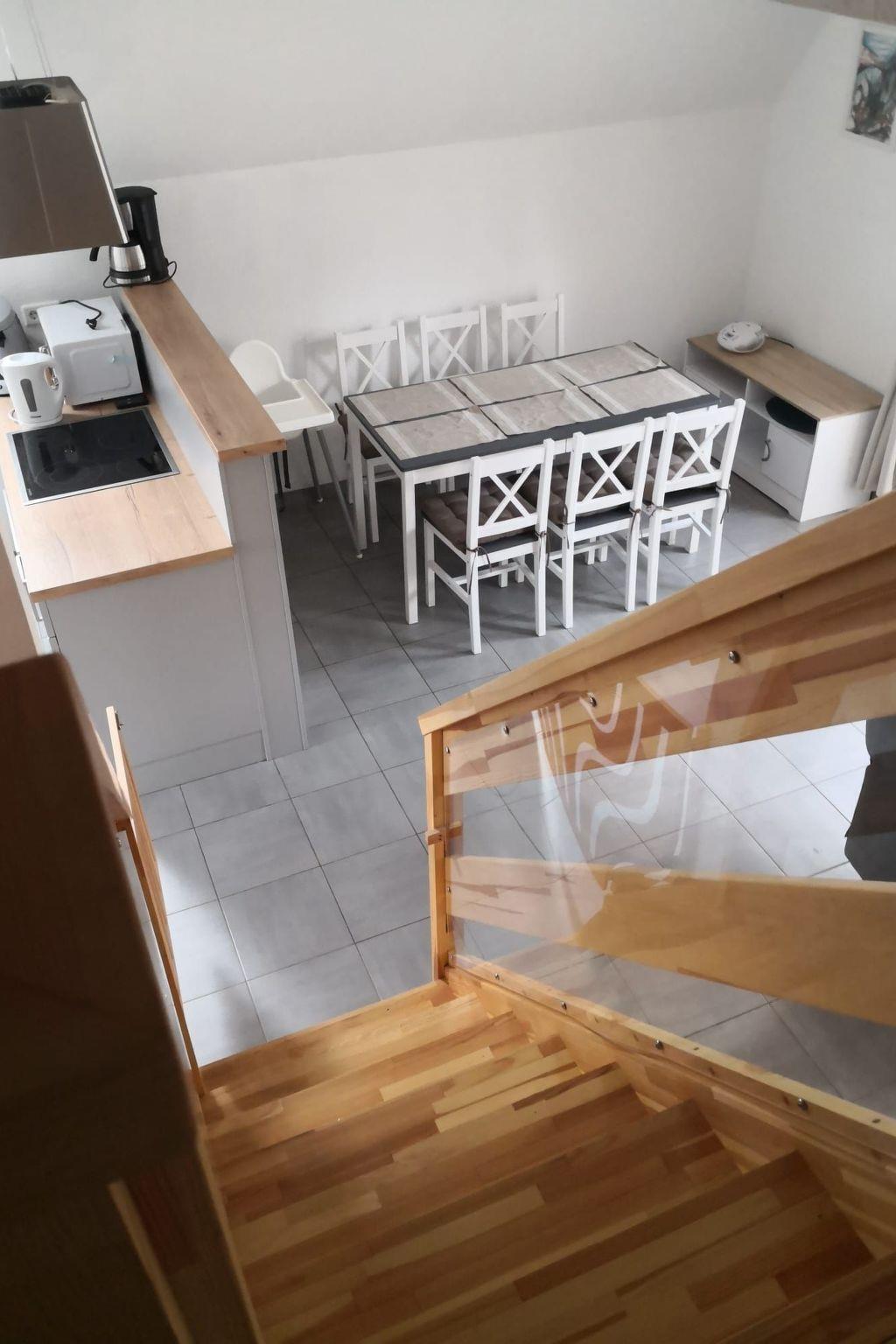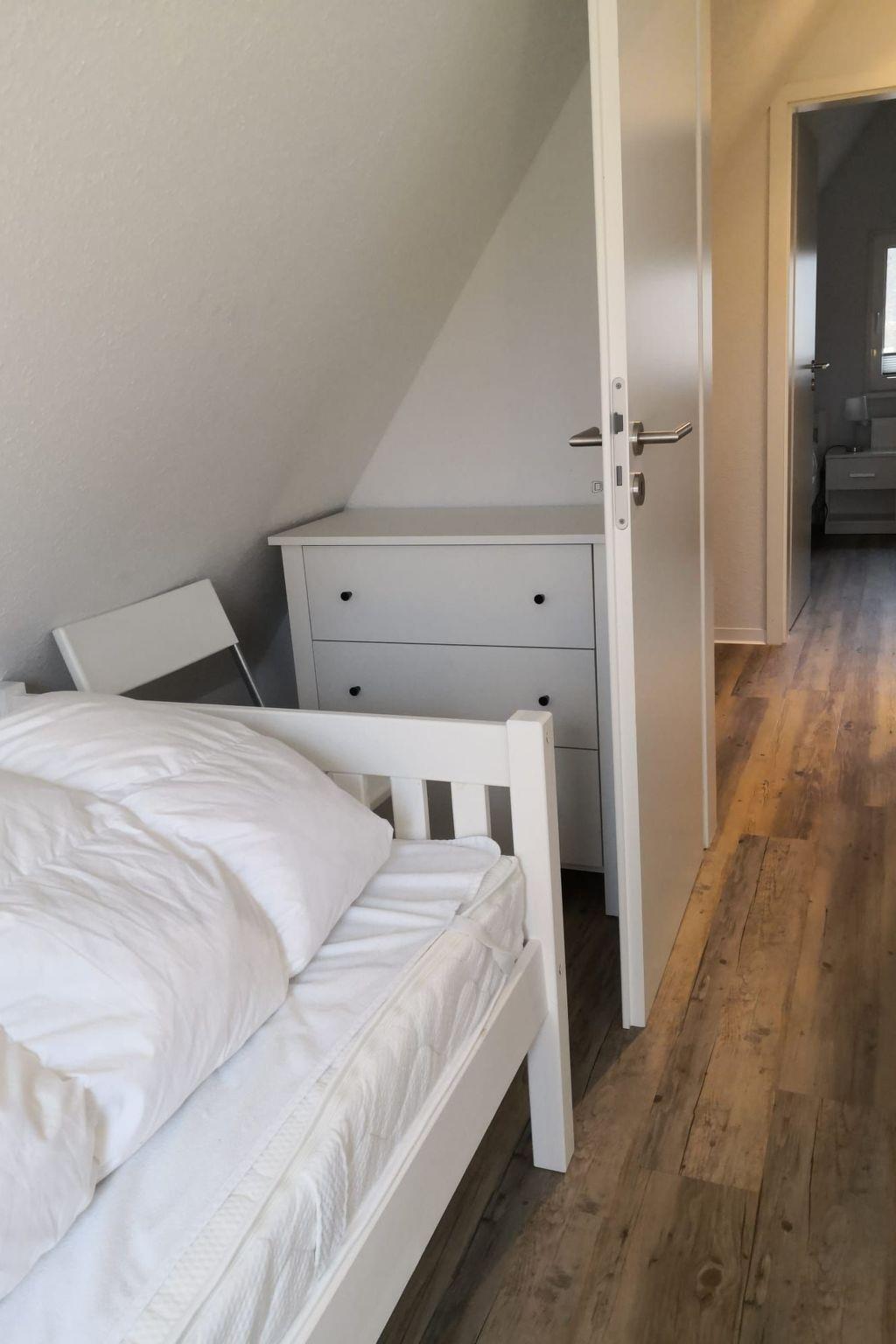 The holiday home can accommodate up to 6 people (maximum occupancy). There are paved paths around the house so that the terrace and the bicycle stand can be reached on dry ground. On the terrace there is a beach chair, a storage box for seat cushions, a weatherproof metal table, six weatherproof metal chairs, a gas barbecue and a lounger. The terrace is secured by an entrance door (small children, dogs). The stairs to the top floor are also secured, and the bedrooms on the top floor are each equipped with two single beds. The kitchen offers many extras: a freezer box, a dishwasher, a fridge with ice box, two coffee machines (including a Senseo with pods), a waffle iron (double), a water bubbler, kitchen scales, a toaster, a microwave, scales, an egg timer, crockery for 12 people, etc. There is a washing machine in the shower room, as well as an iron, ironing board and clothes horse. The sofa and the pull-out TV armchair are made of real leather and are therefore easy to clean. A white box made of imitation leather contains two woollen blankets and games (inside and outside) for adults and children. A smoke detector is available.
