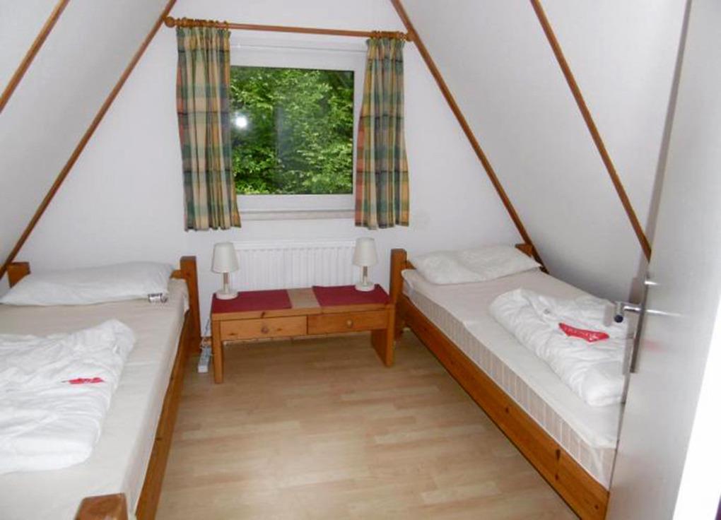 Im Obergeschoss befinden sich zwei weitere Zimmer mit je zwei Einzelbetten.