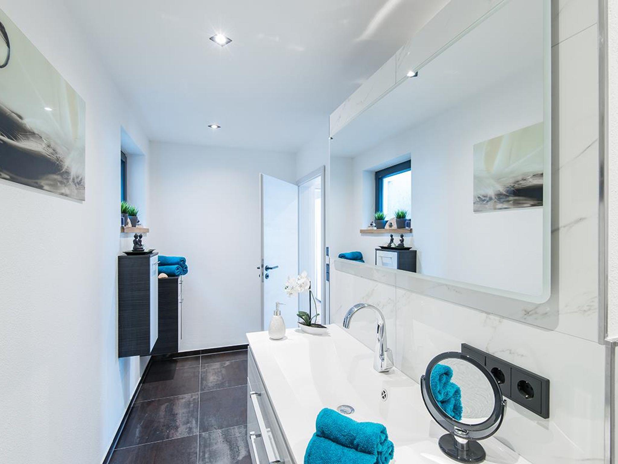 Es gibt zwei Schlafzimmer mit jeweils einem Doppelbett und einem Einbauschrank. Das große Badezimmer verfügt über eine begehbare Wellnessdusche, einem großen Waschtisch und einem WC.