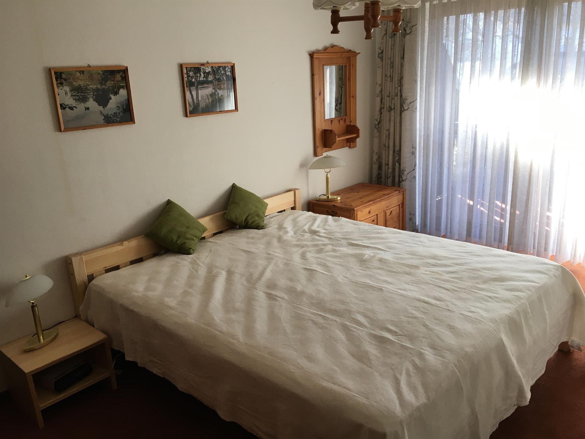 Sehr schöne und gemütliche Wohnung im 2 OG ( Aufzug) mit großem überdachtem Balkon mit komfortablen Liegestühlen. Die Wohnung verfügt über eine Küche, eine Essecke im Wohnzimmer, ein Schlafzimmer mit Doppelbett, ein Bad mit Dusche und WC. Ein Flachbild-TV und eine Musikanlage sorgen für Unterhaltung. Eine kleine Bibliothek mit Ausflugstipps und Kartenmaterial machen Lust auf Ausflüge in die wunderschöne Umgebung. Der Wohnung ist ein eigener Stellplatz zugeordnet.