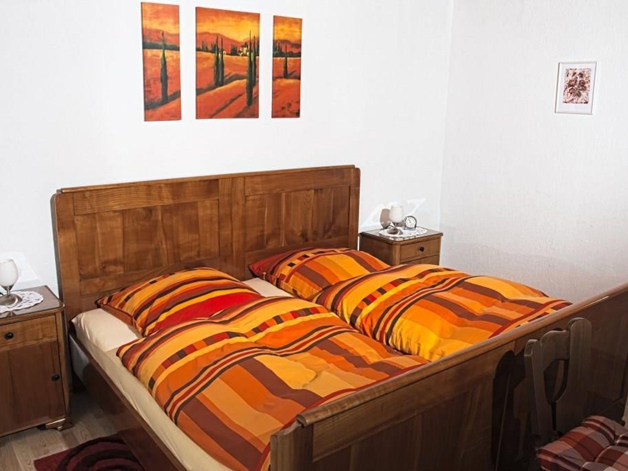 Unsere Ferienwohnung befindet sich im Erdgeschoss und bietet, mit ca. 45 qm, Platz für zwei bis drei Gäste. Sie besteht aus einem Doppelzimmer, einem kleinen Einzelzimmer, einer Wohnküche mit 2 Plattenherd, Couch, Eckbank, sowie Farbfernseher. Weiter gibt es einen geräumigen Flur und ein Badezimmer mit WC und ebenerdiger Dusche. Wir stellen Bettwäsche und Handtücher zur Verfügung. Ruhige Lage inmitten der Altstadt. Einkaufsmöglichkeiten in unmittelbarer Nähe.