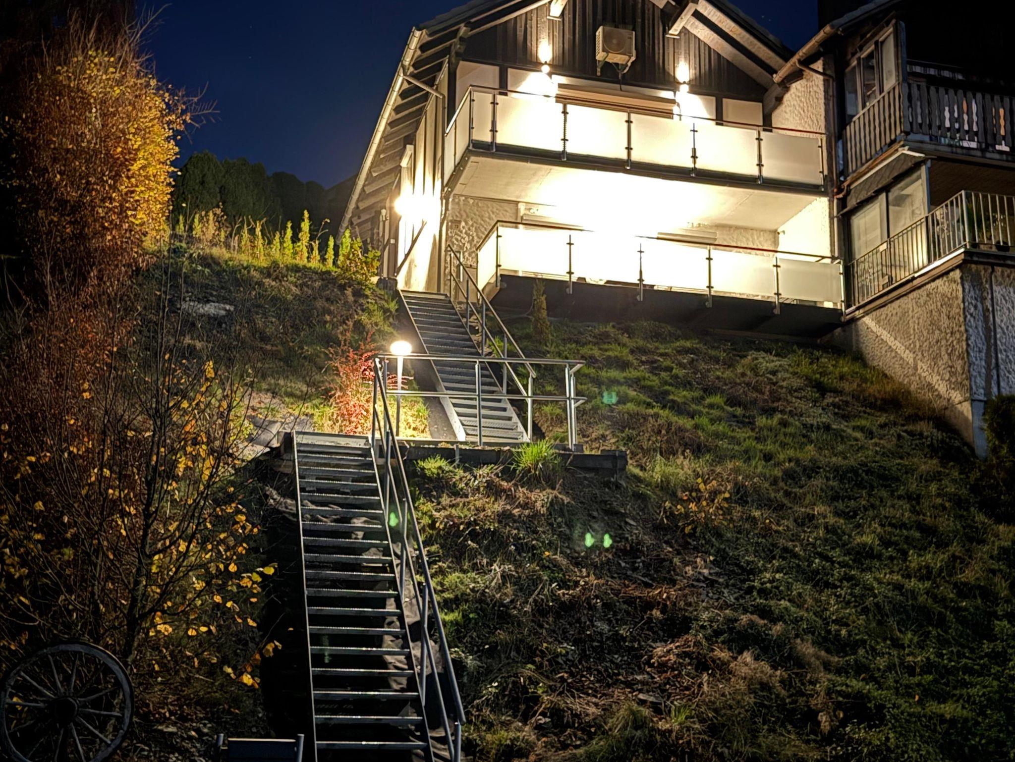 Das Ferienhaus erstreckt sich über 2 Etagen, hat zwei Bäder und zwei Schlafzimmer. Zusätzlich erwarten Sie eine Grillterrasse, eine weitere Wiesenterrasse und – als Highlight – ein herrlicher Blick über das Tal.
